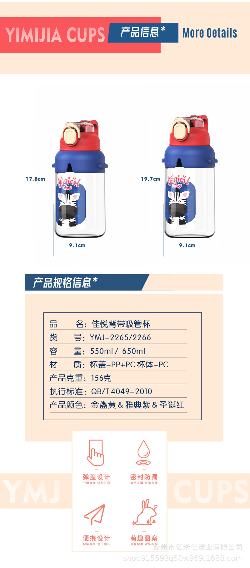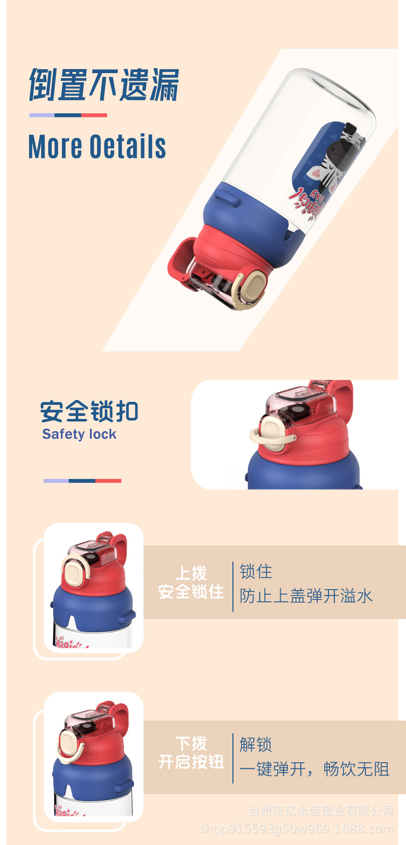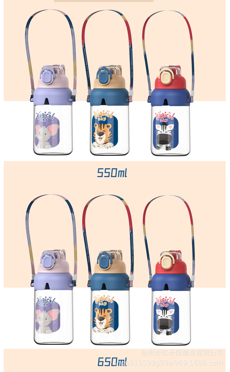 样品星兔创意卡通水杯儿童弹跳吸管杯可爱运动户外背带学生塑料杯