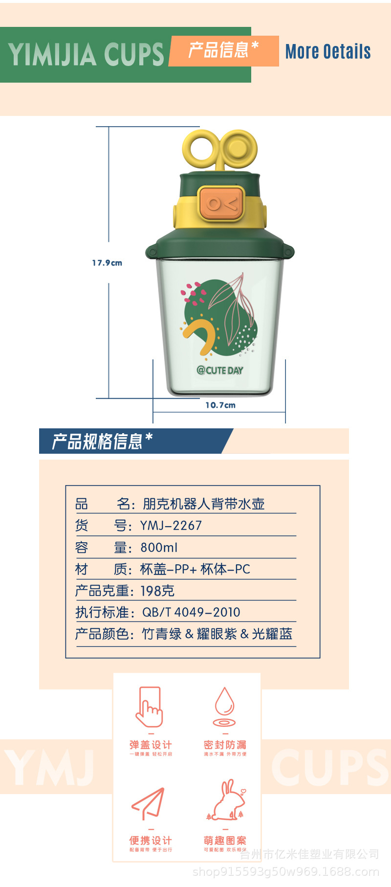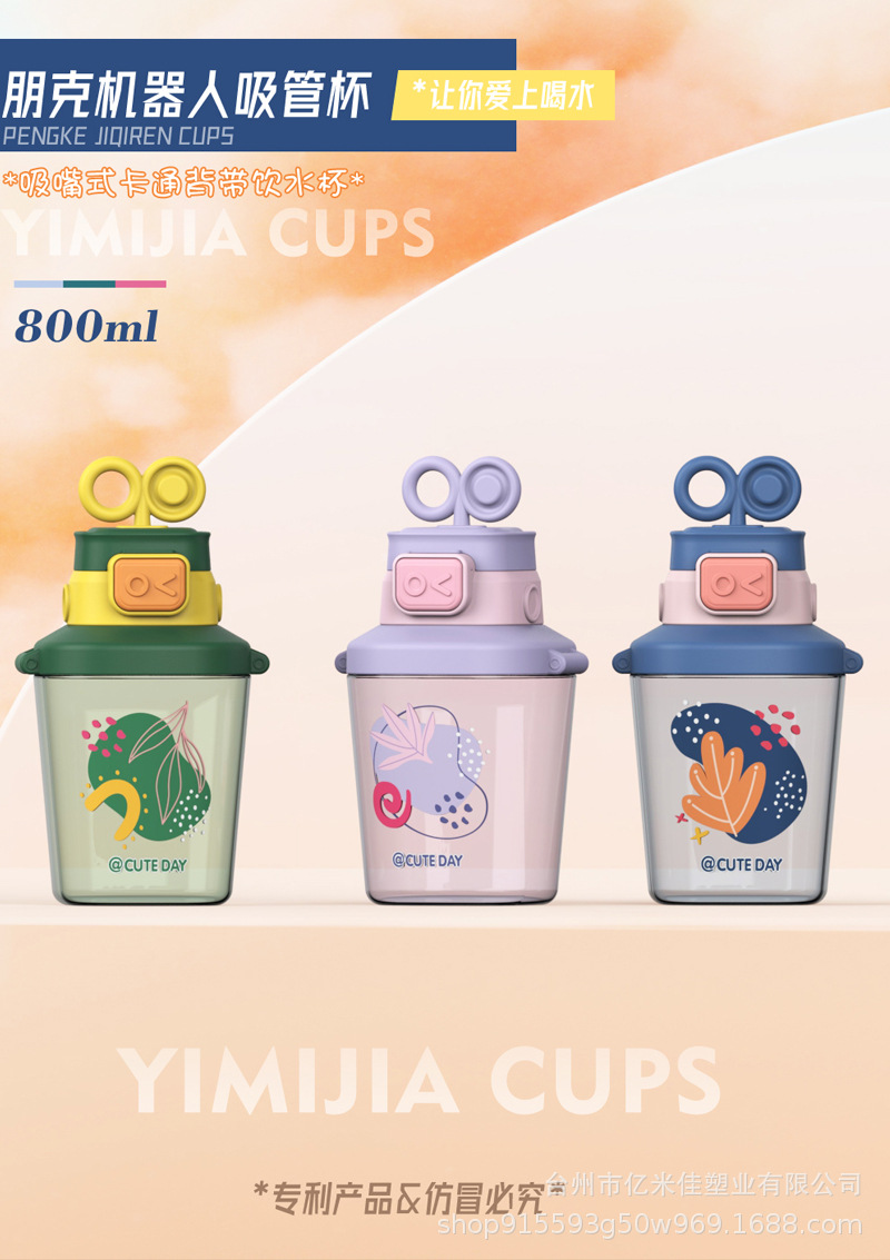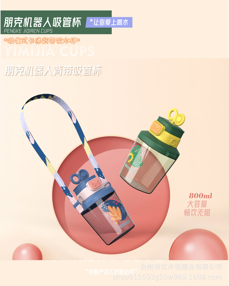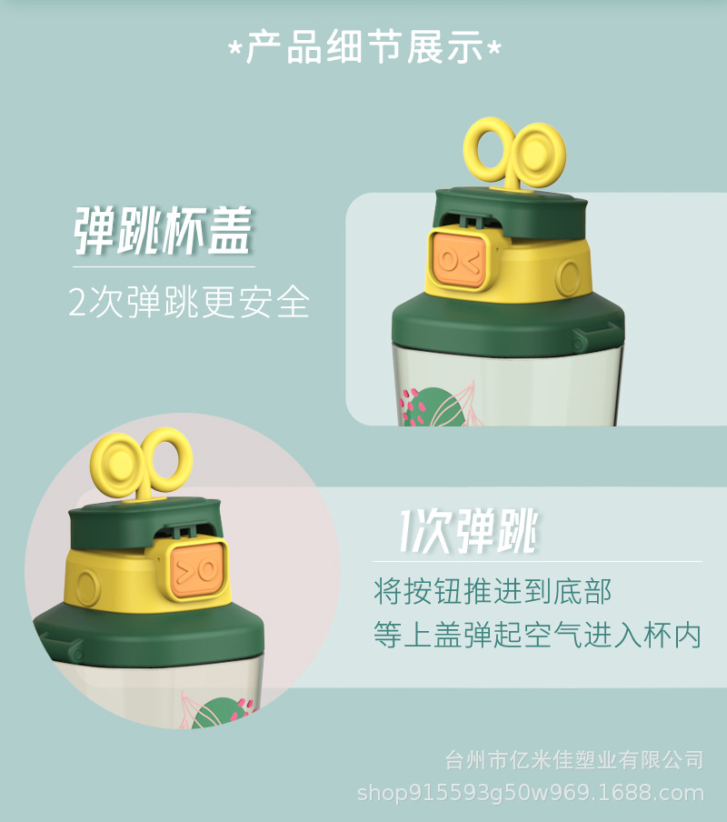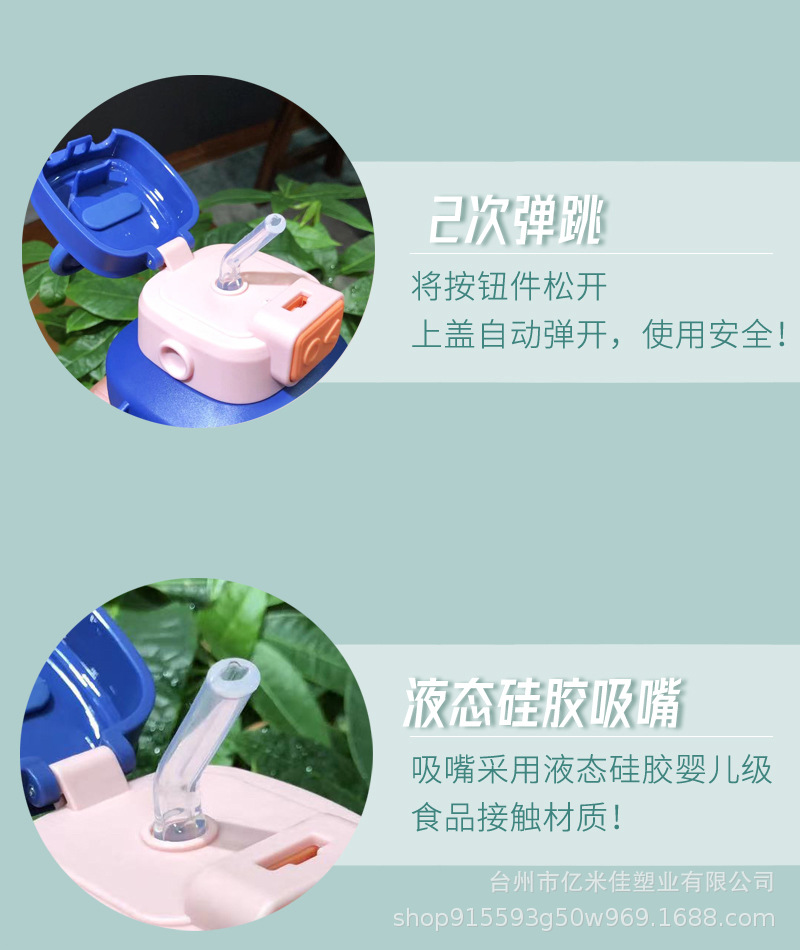 样品星兔创意卡通水杯儿童弹跳吸管杯可爱运动户外背带学生塑料杯