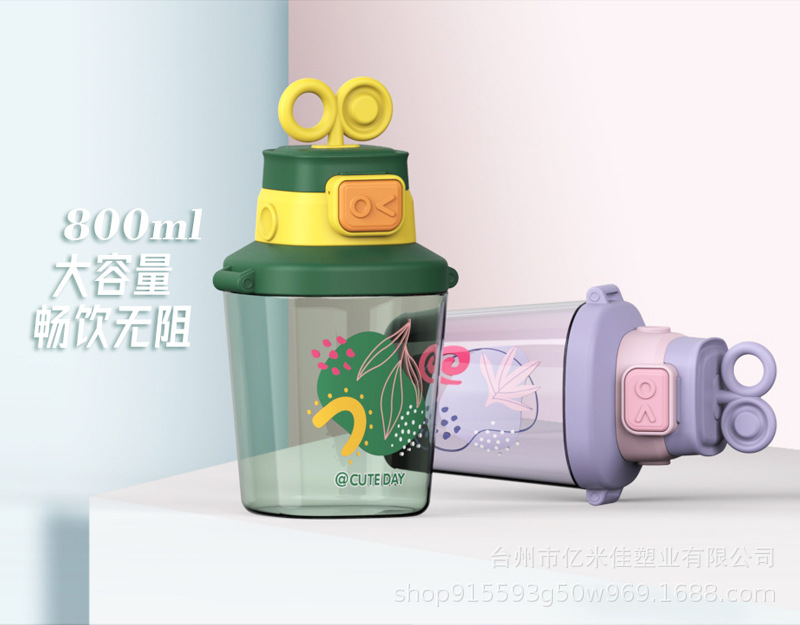 儿童吸管水杯夏天大容量可爱杯子女生高颜值搅拌杯耐高温塑料水壶