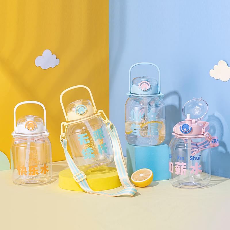 运动大容量水杯男士健身塑料防摔便携学生水壶瓶夏季吸管杯子新款