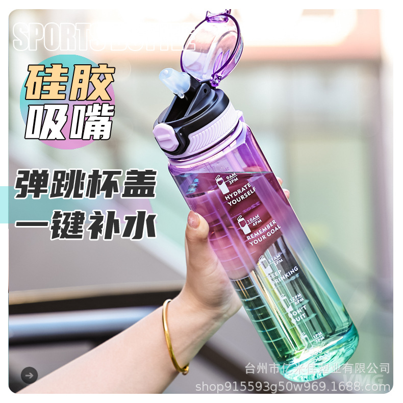 大容量运动水杯男女健身水壶夏天便携户外带吸嘴塑料学生杯子防摔
