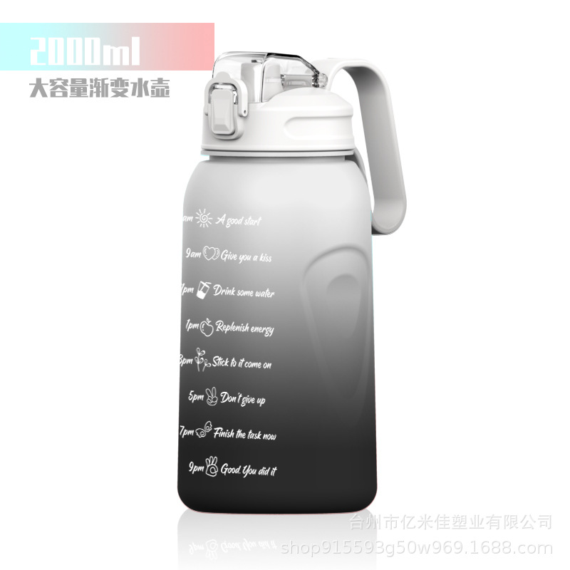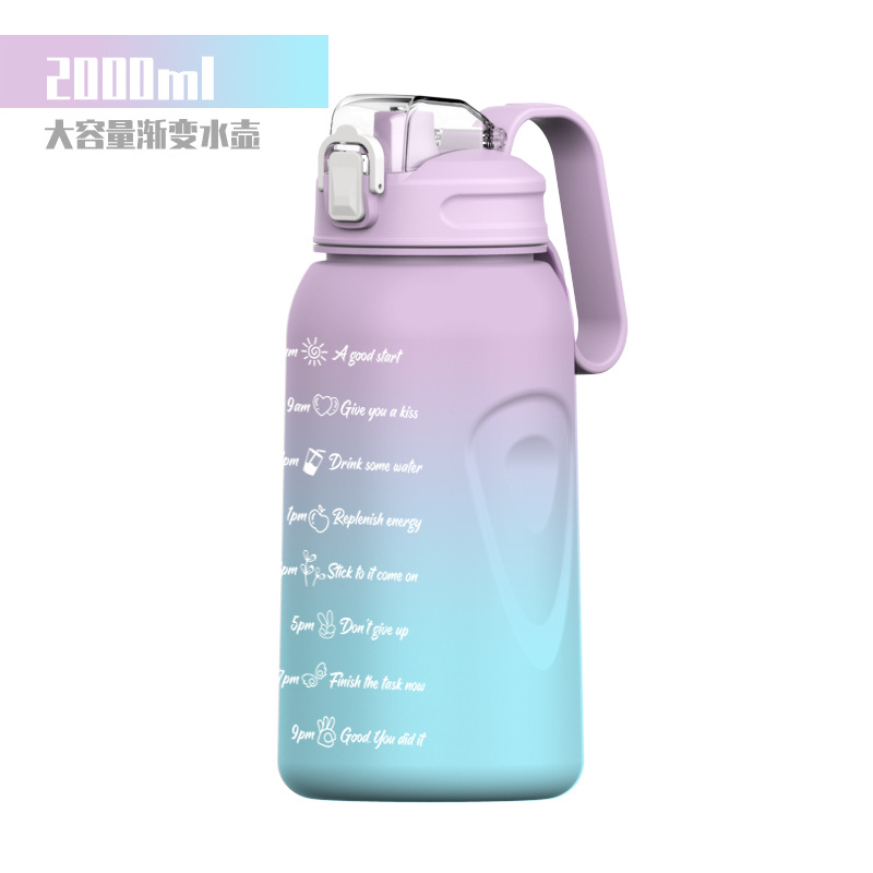 超大容量水杯女耐高温运动水壶2L带刻度网红高颜值渐变吸管塑料杯