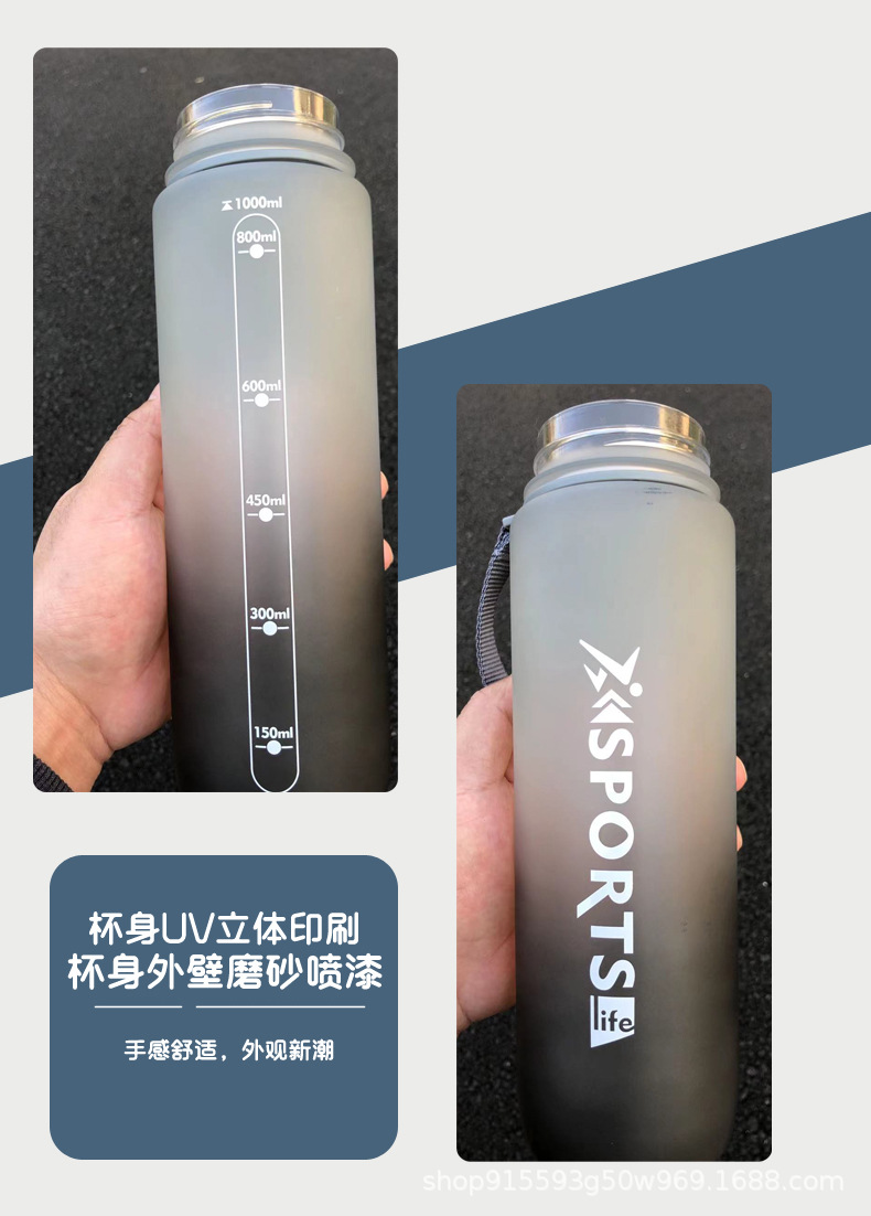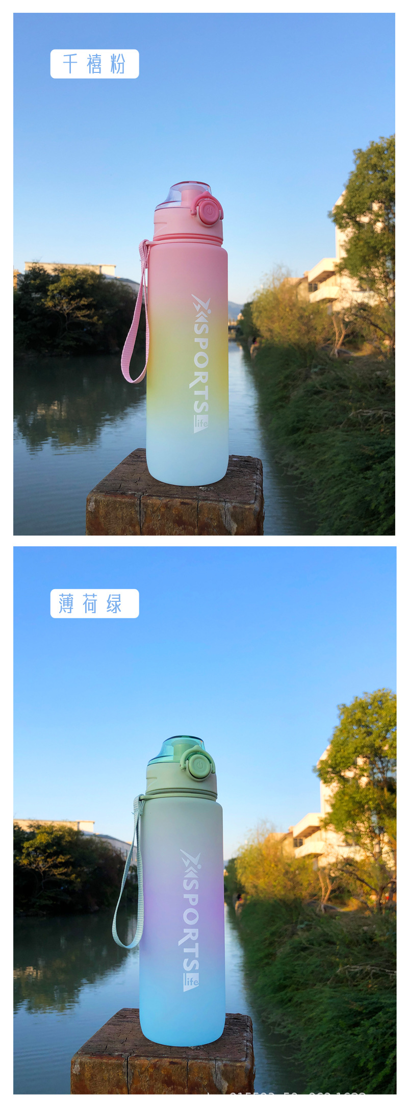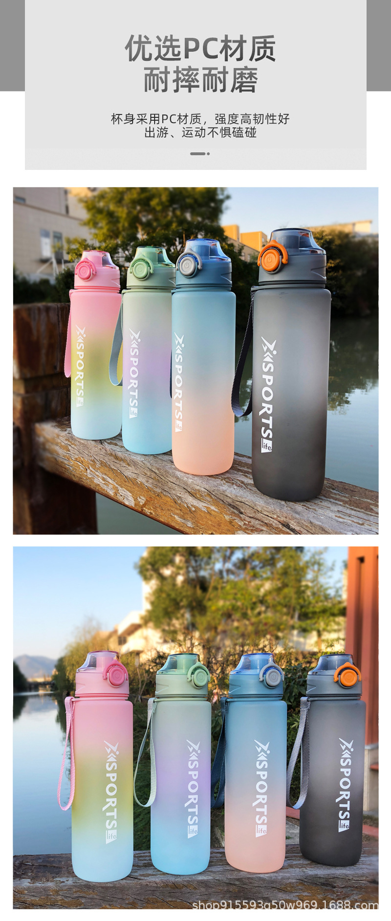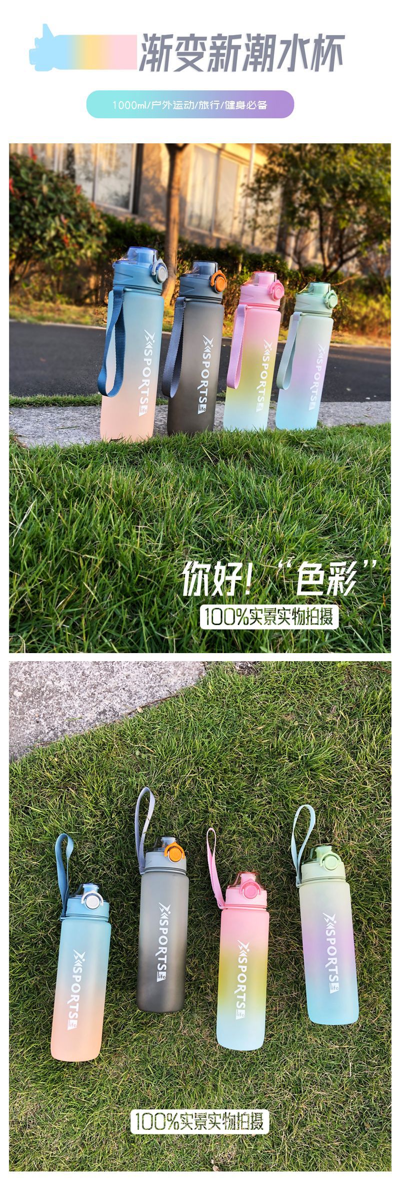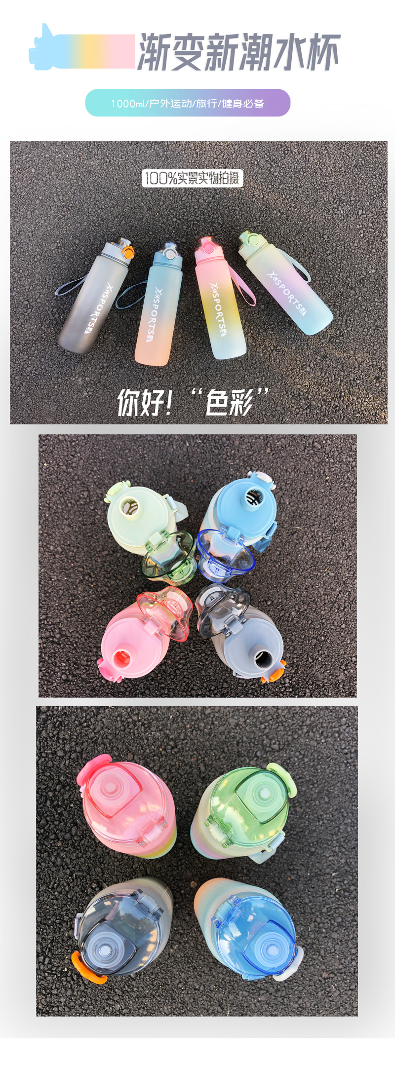 直饮渐变色塑料杯1L户外大容量运动水壶便捷式太空杯男女学生简约