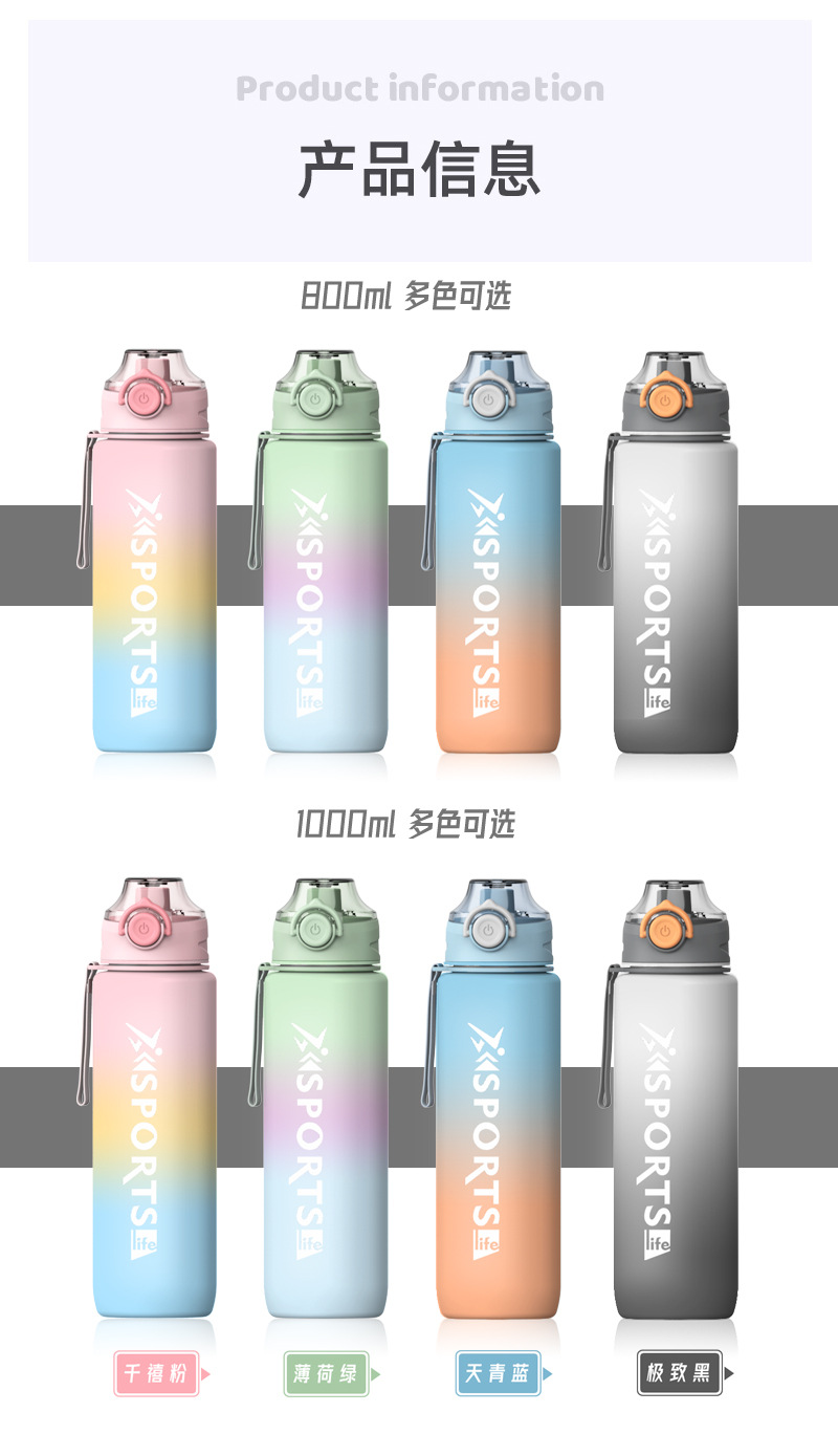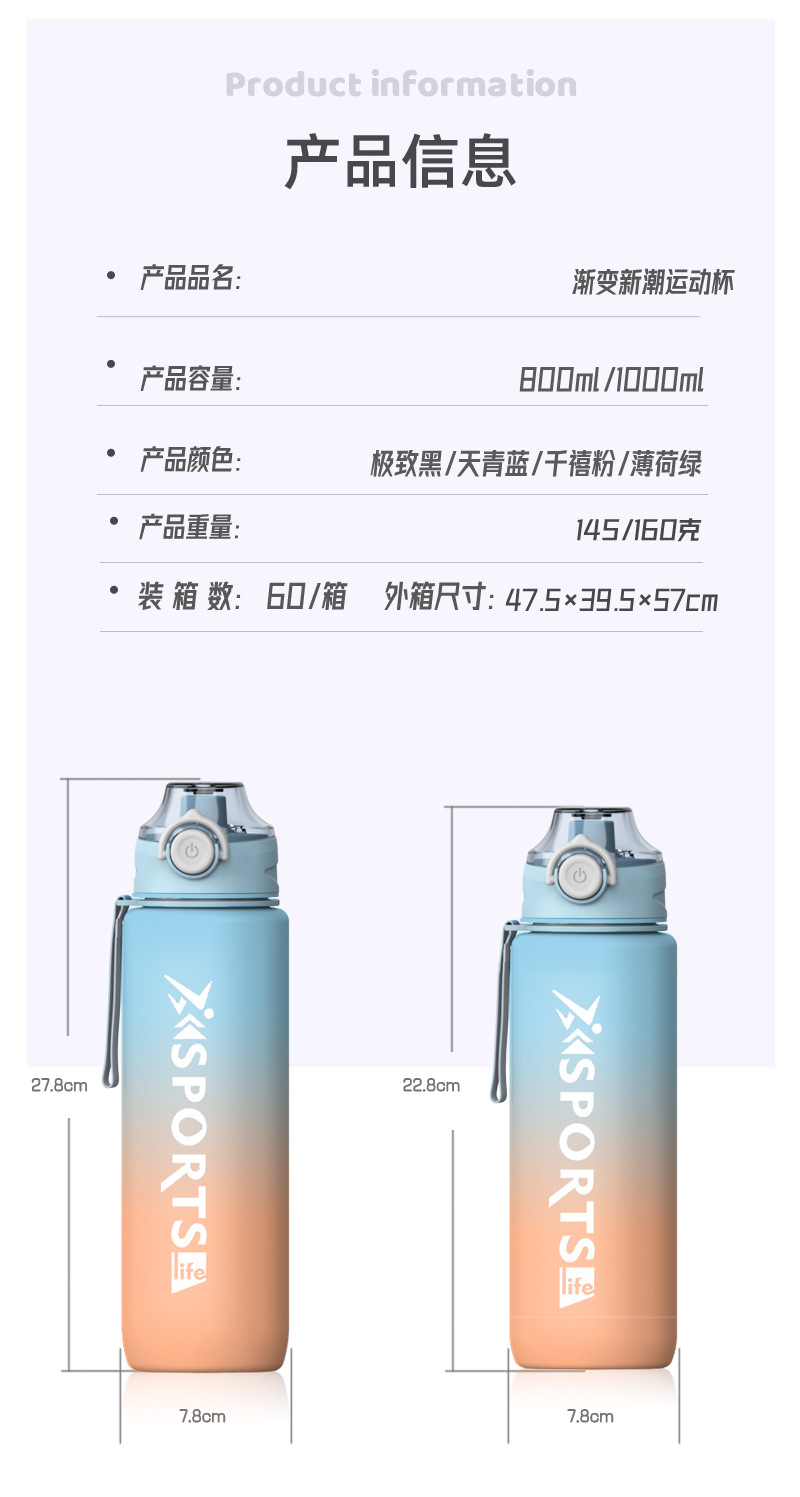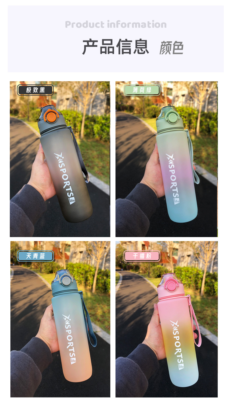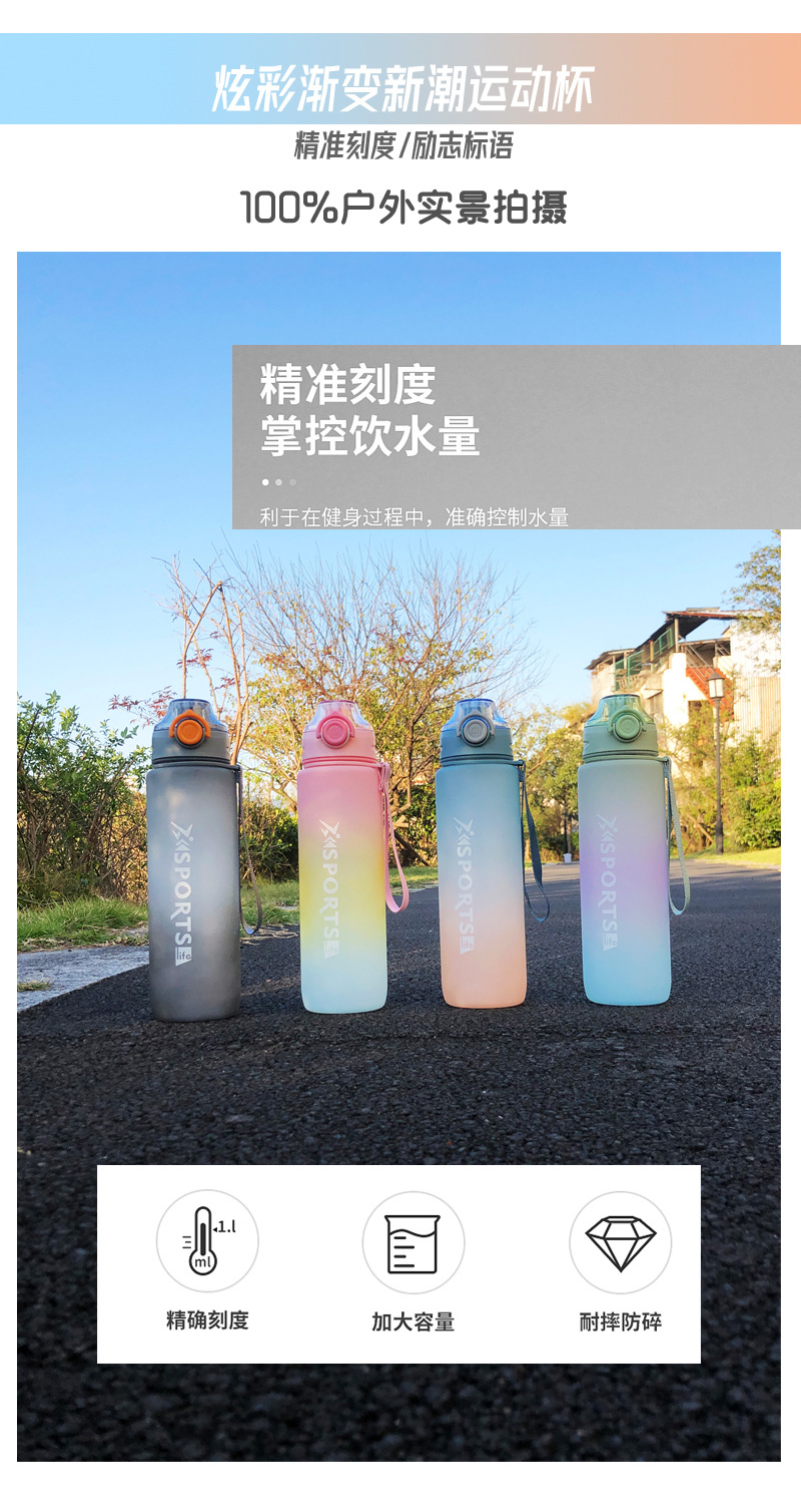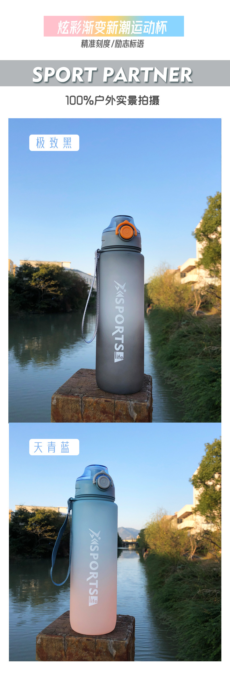 直饮渐变色塑料杯1L户外大容量运动水壶便捷式太空杯男女学生简约