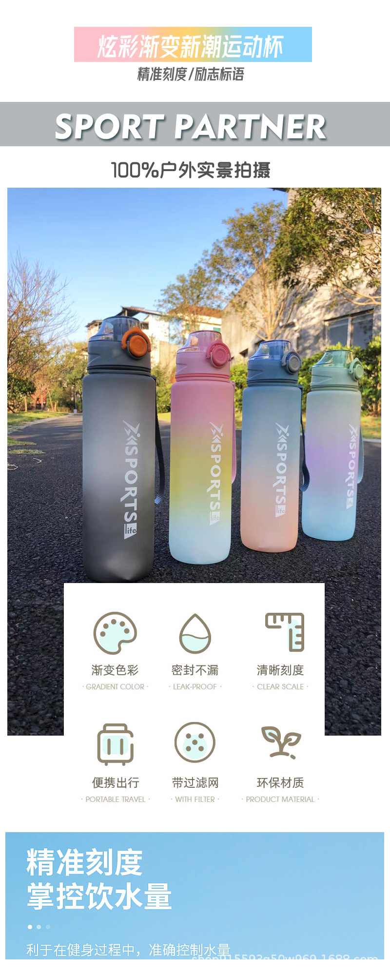 简约太空杯户外健身大容量渐变色跨境东南亚运动水壶提绳学生成人