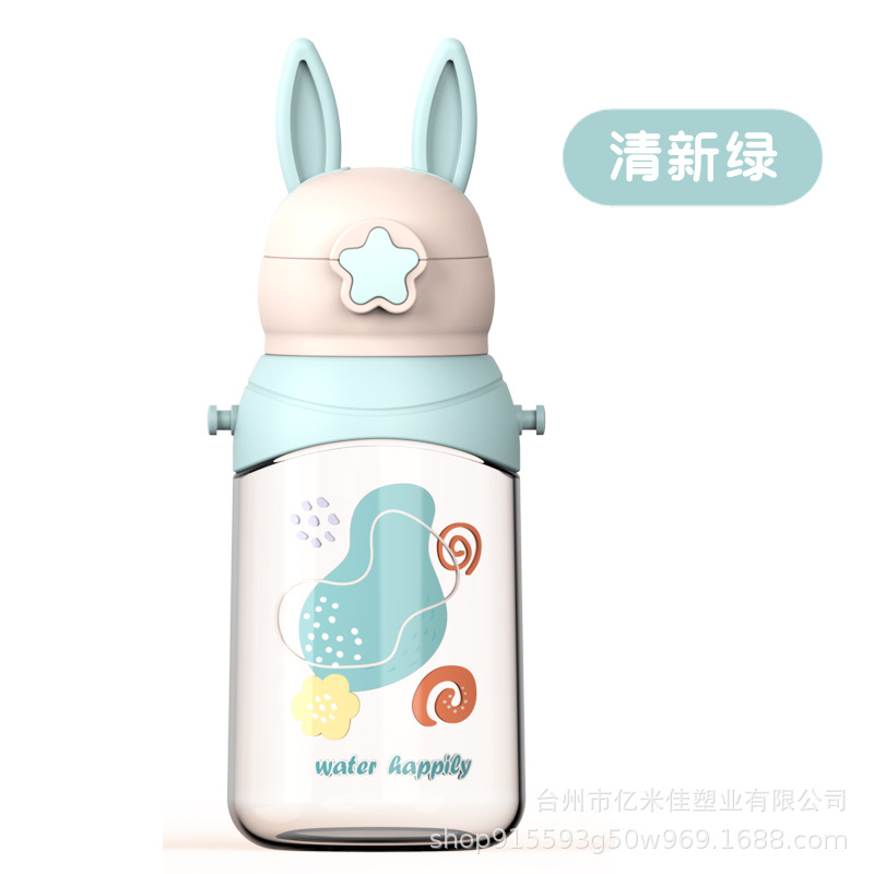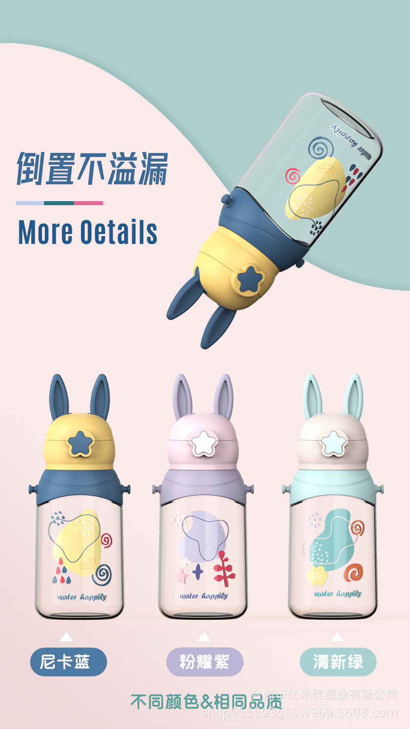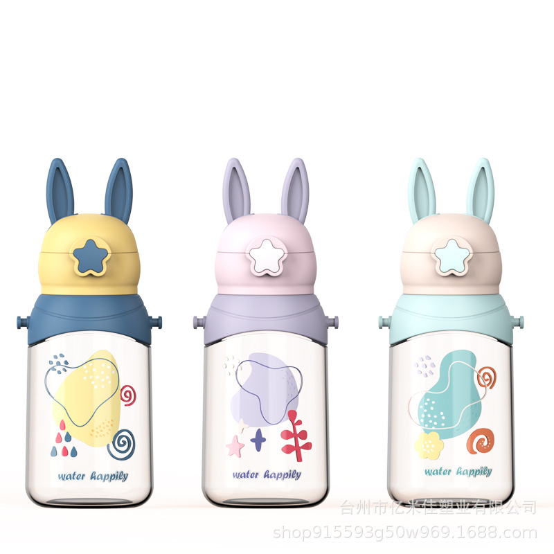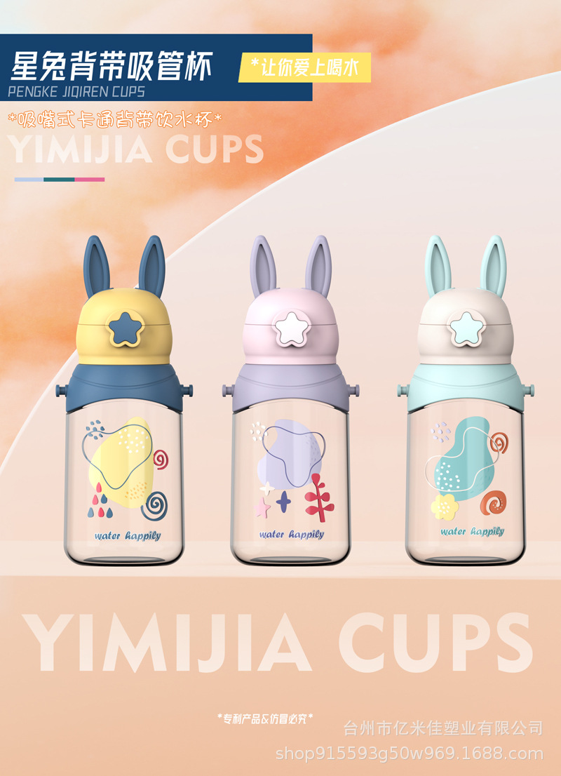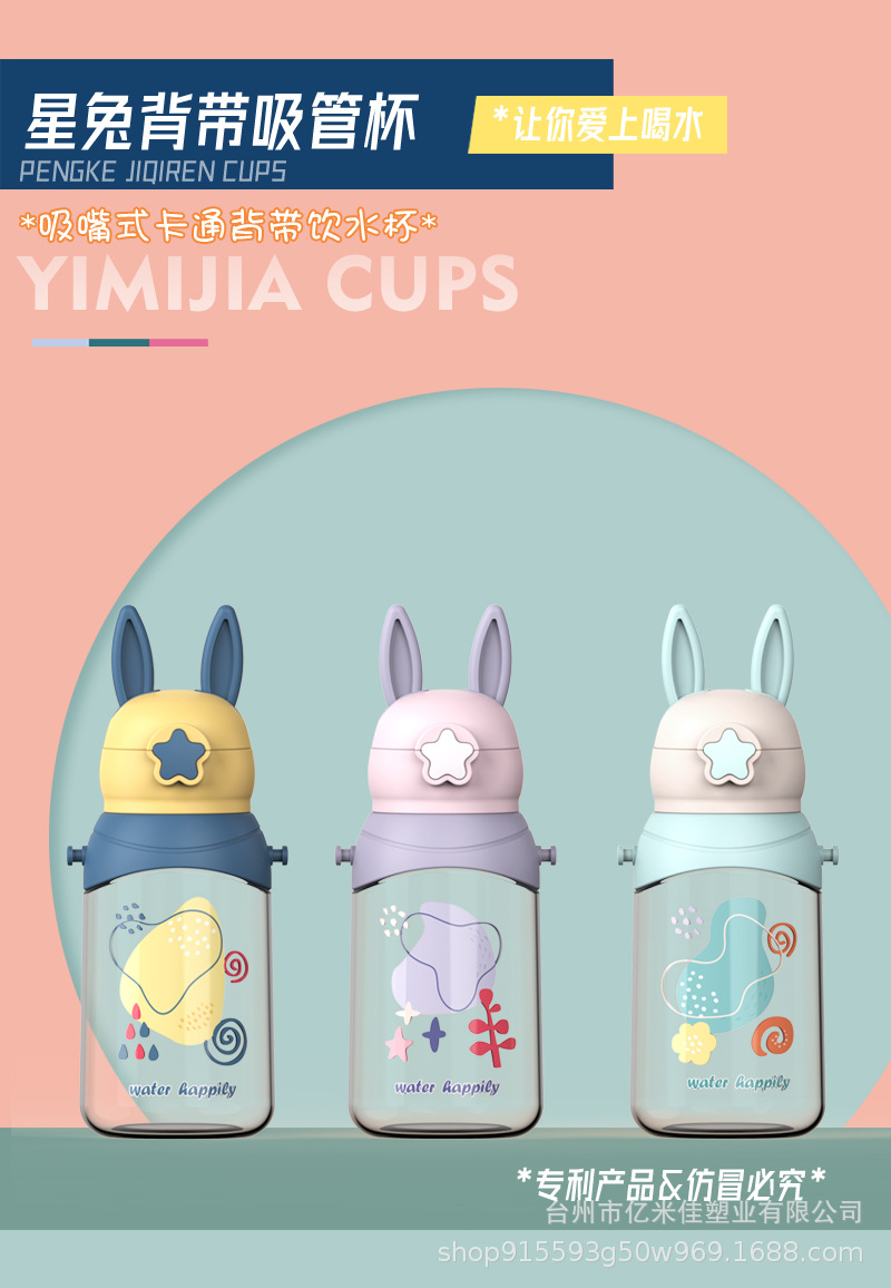 样品星兔创意卡通水杯儿童弹跳吸管杯可爱运动户外背带学生塑料杯