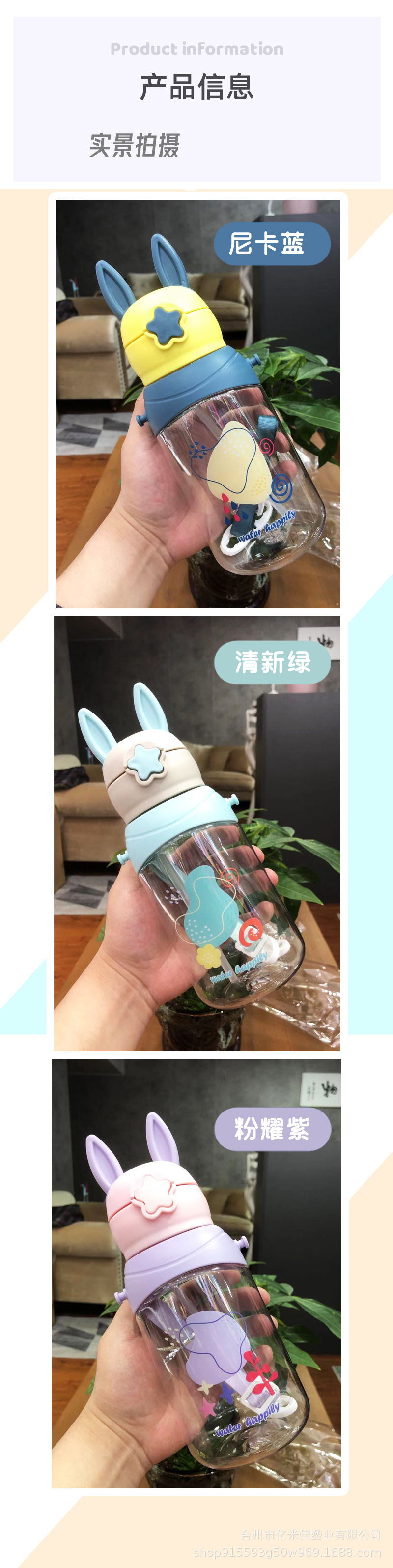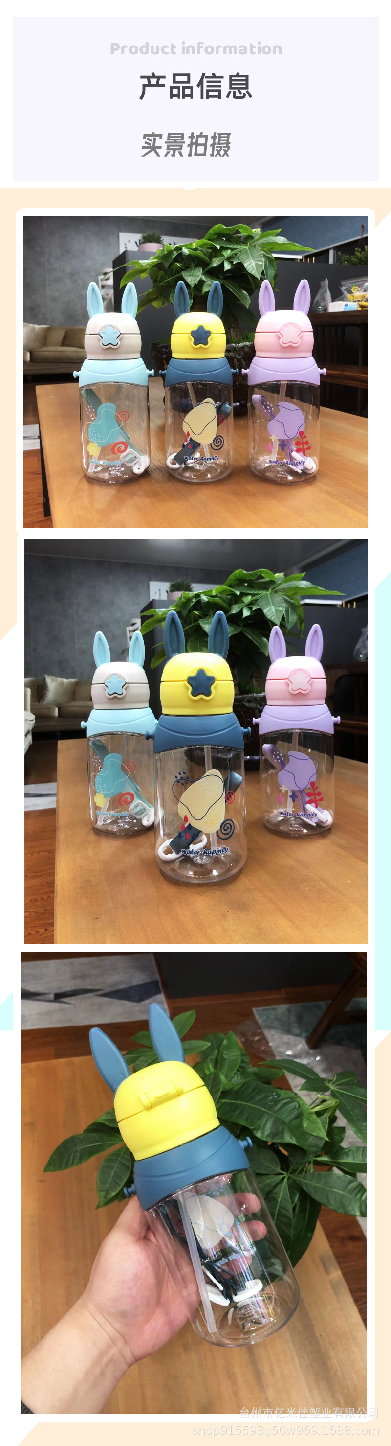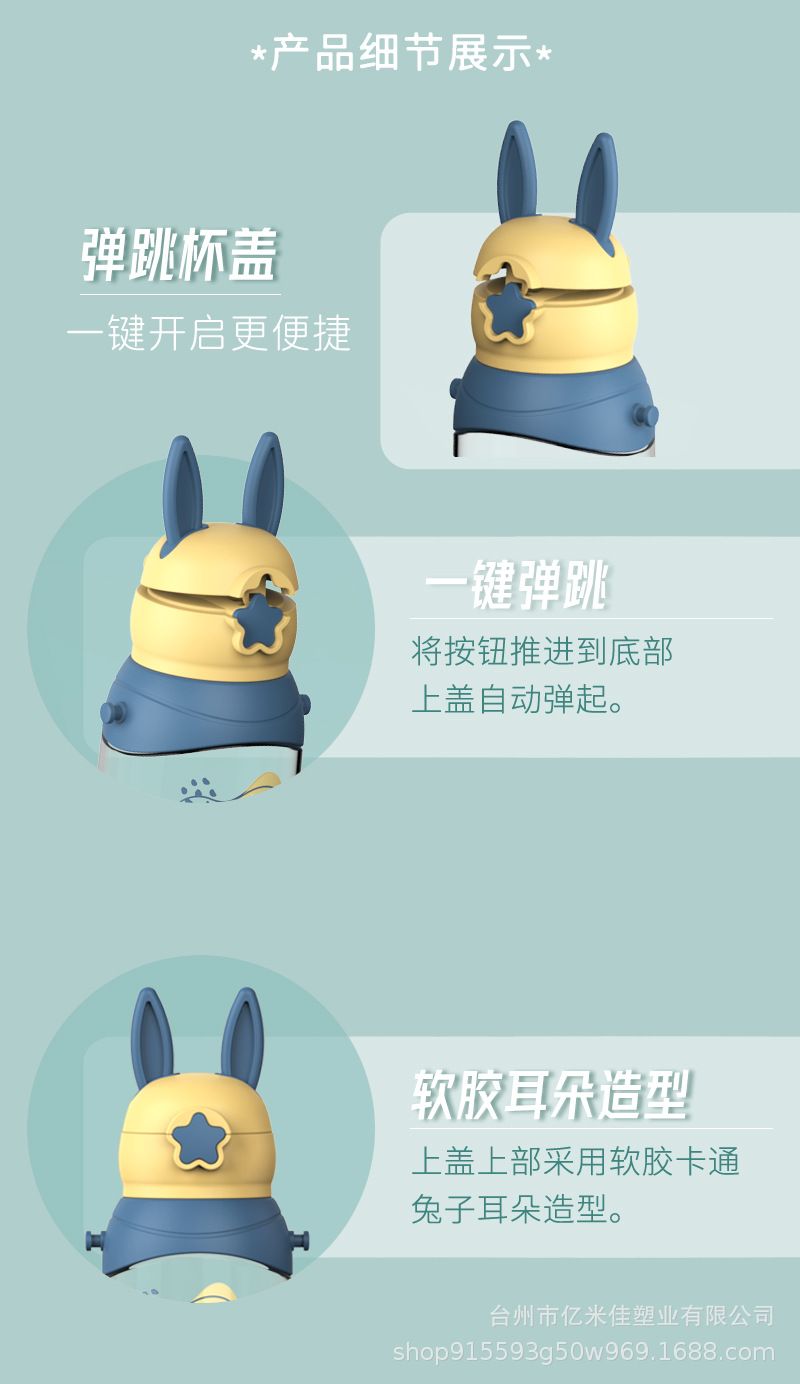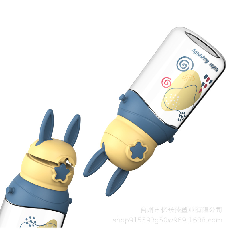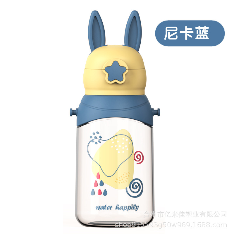 样品星兔创意卡通水杯儿童弹跳吸管杯可爱运动户外背带学生塑料杯