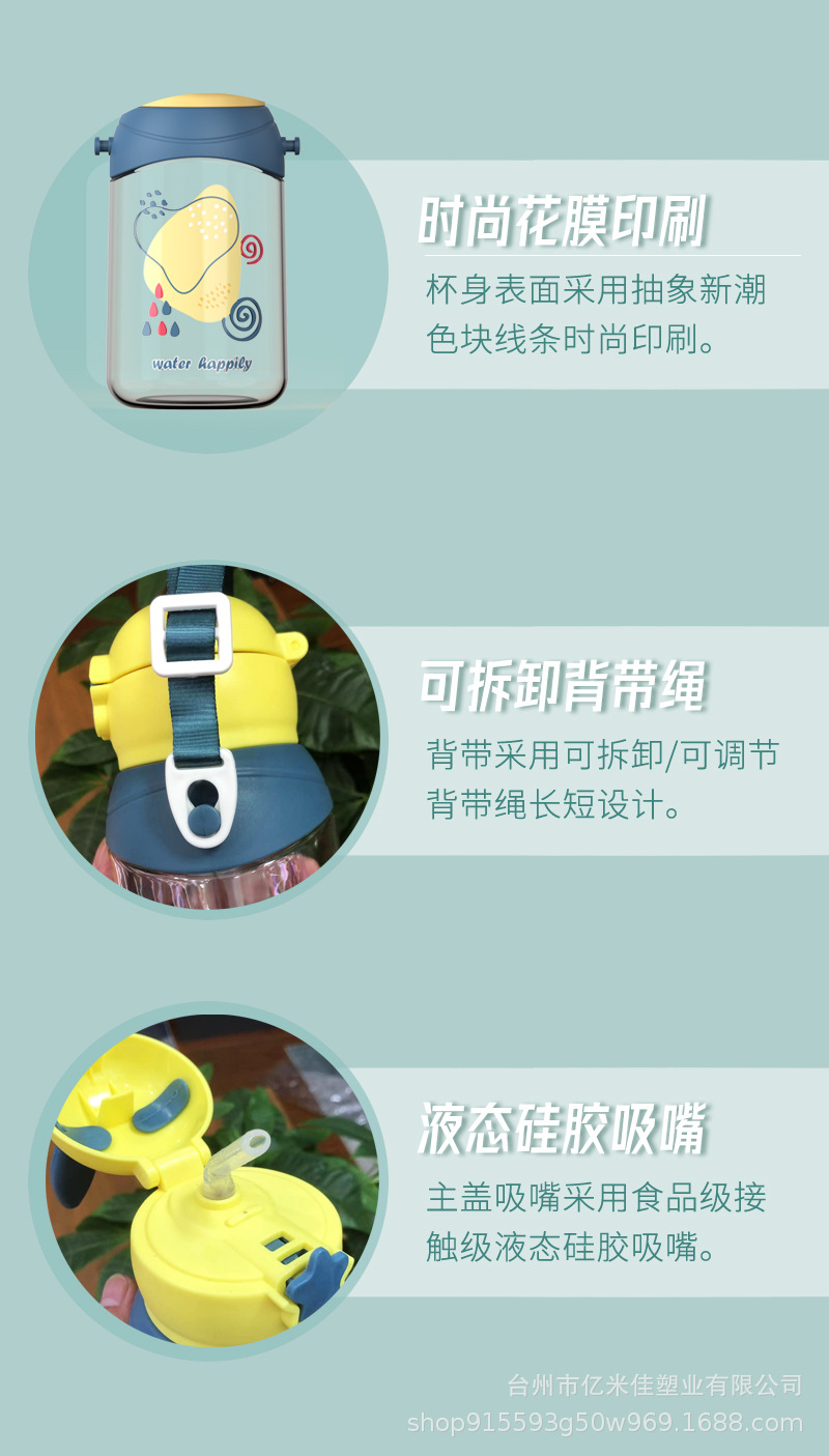 2022新卡通塑料水杯简约男女学生通用吸管杯可爱儿童塑料背带水壶