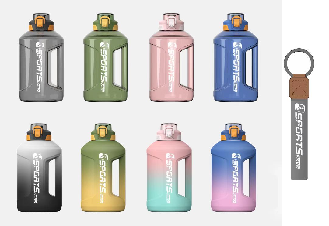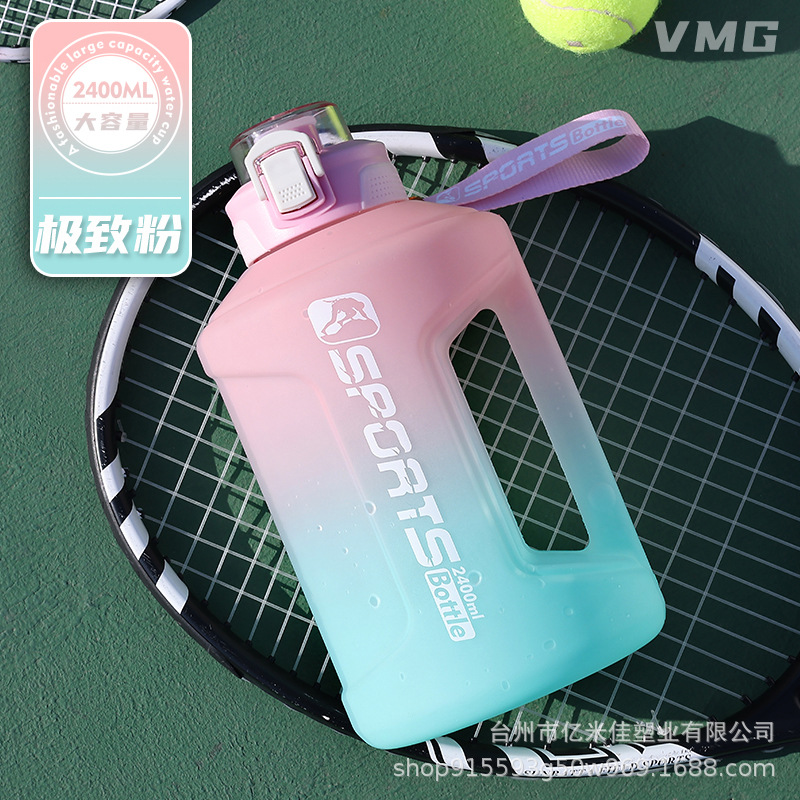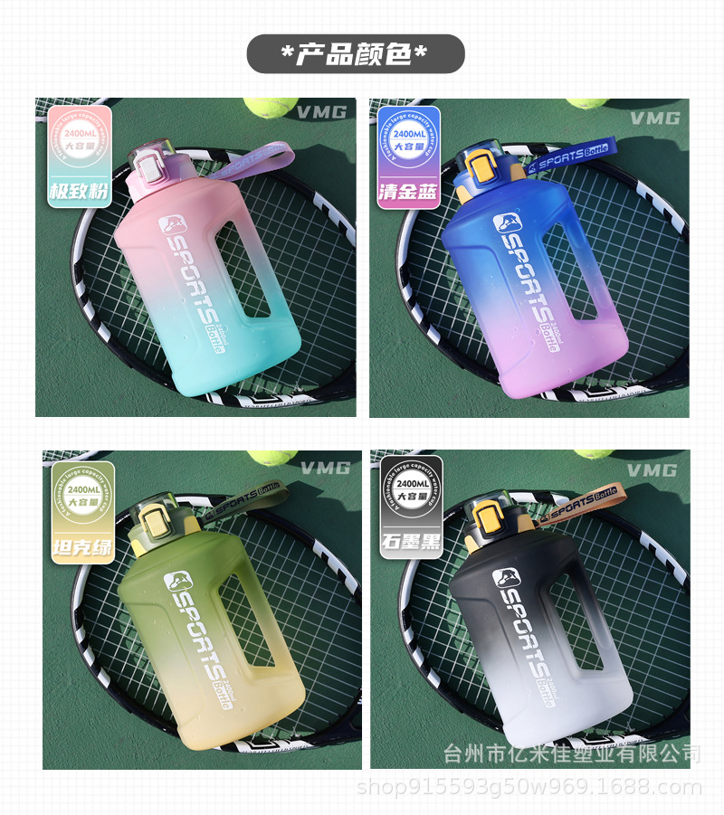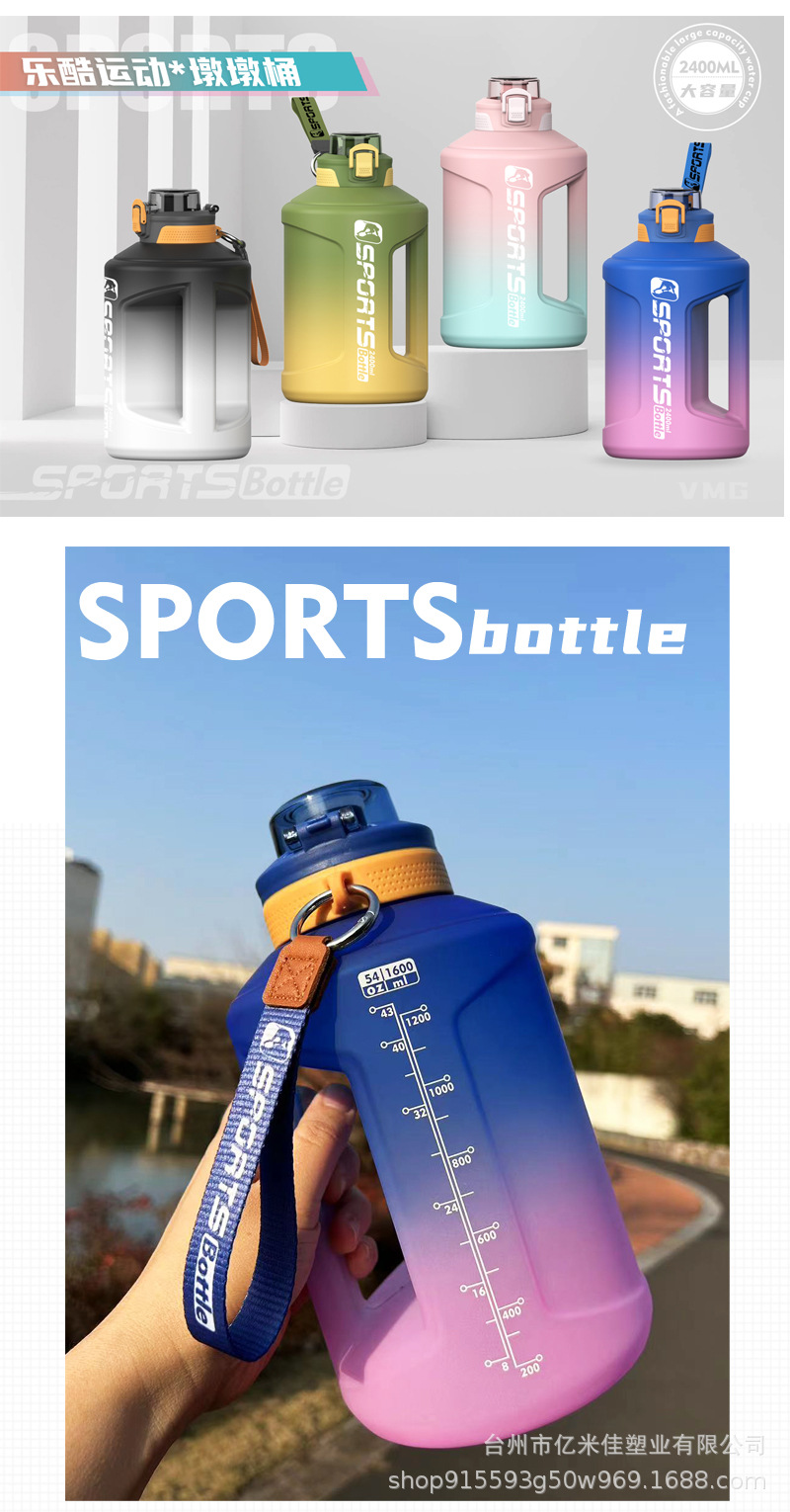 运动水杯大容量带刻度健身渐变色水壶磨砂便携防摔吸嘴塑料杯跨境
