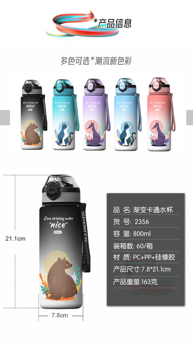 样品星兔创意卡通水杯儿童弹跳吸管杯可爱运动户外背带学生塑料杯