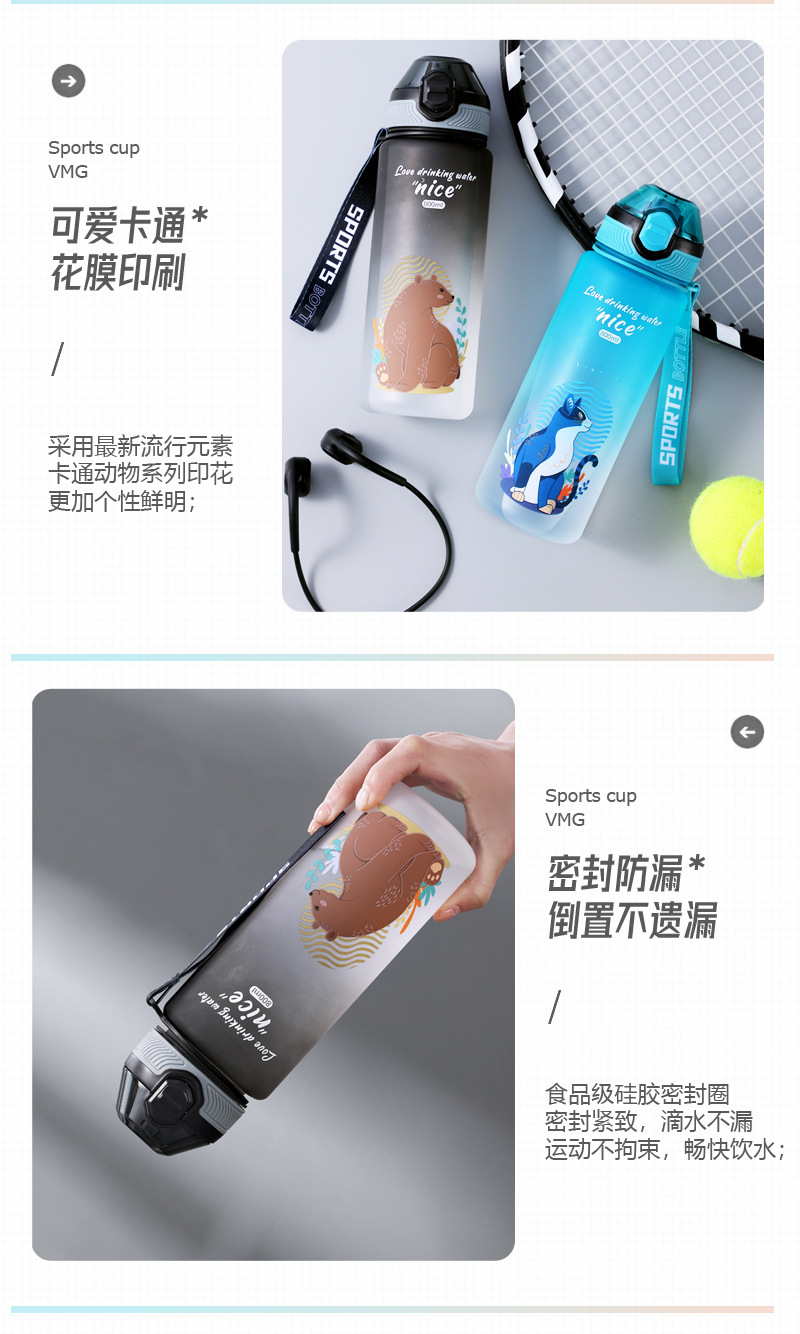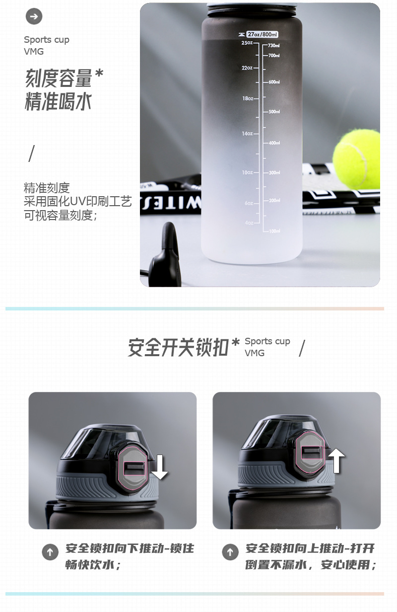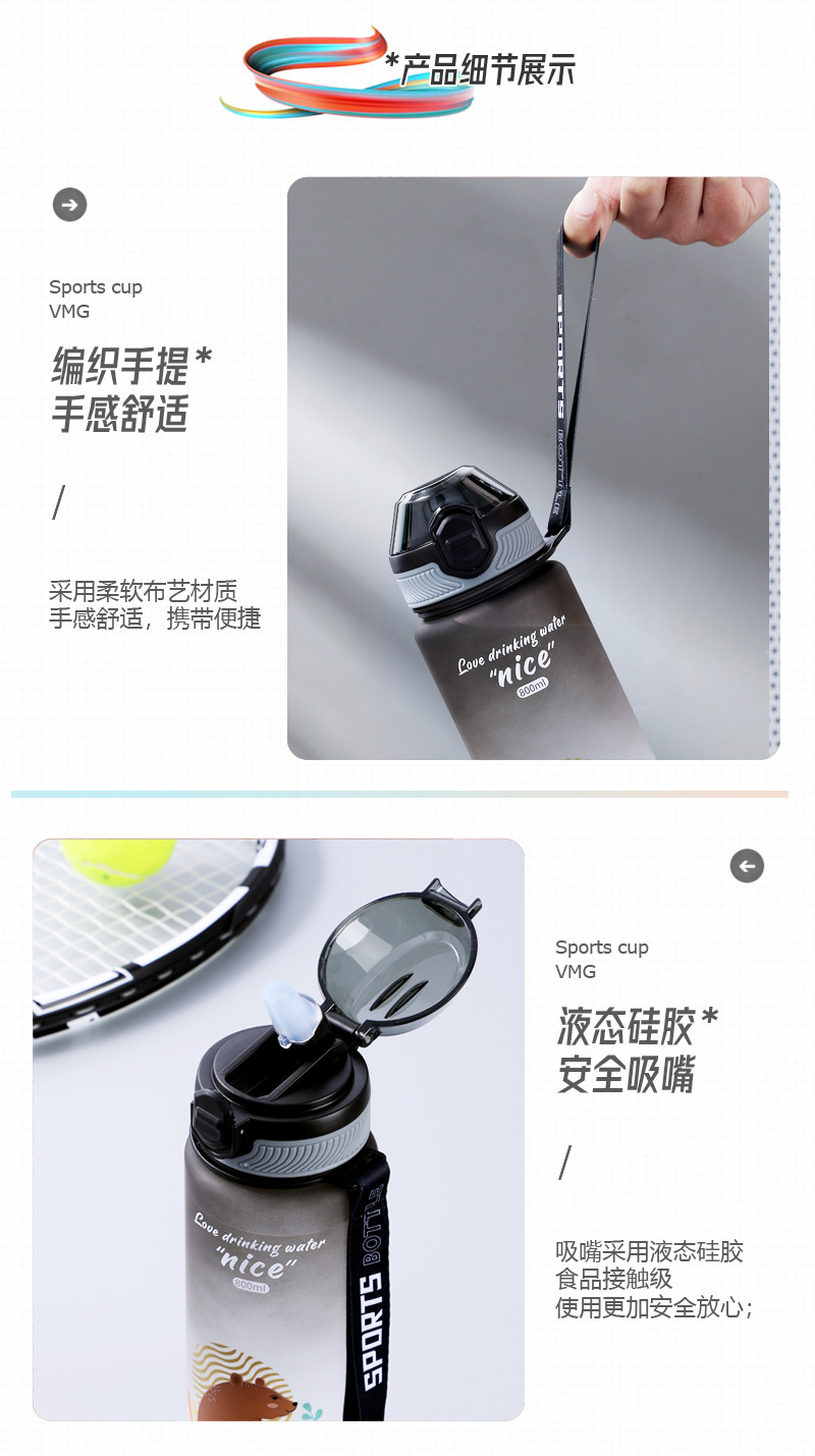 大容量运动水杯男1000ML水壶便携健身水杯女夏季塑料防摔太空杯子