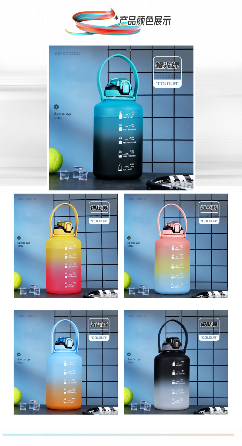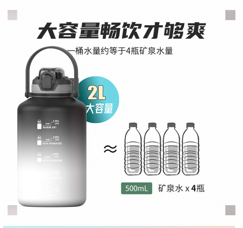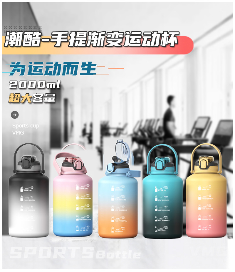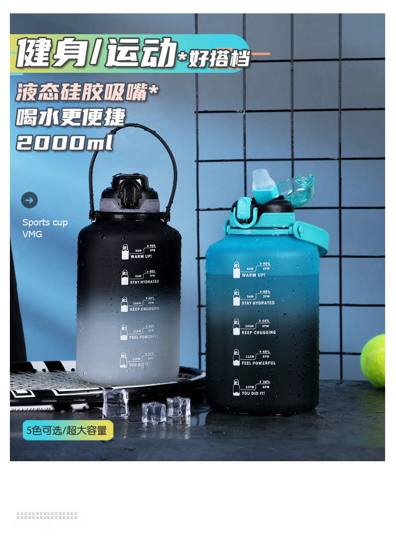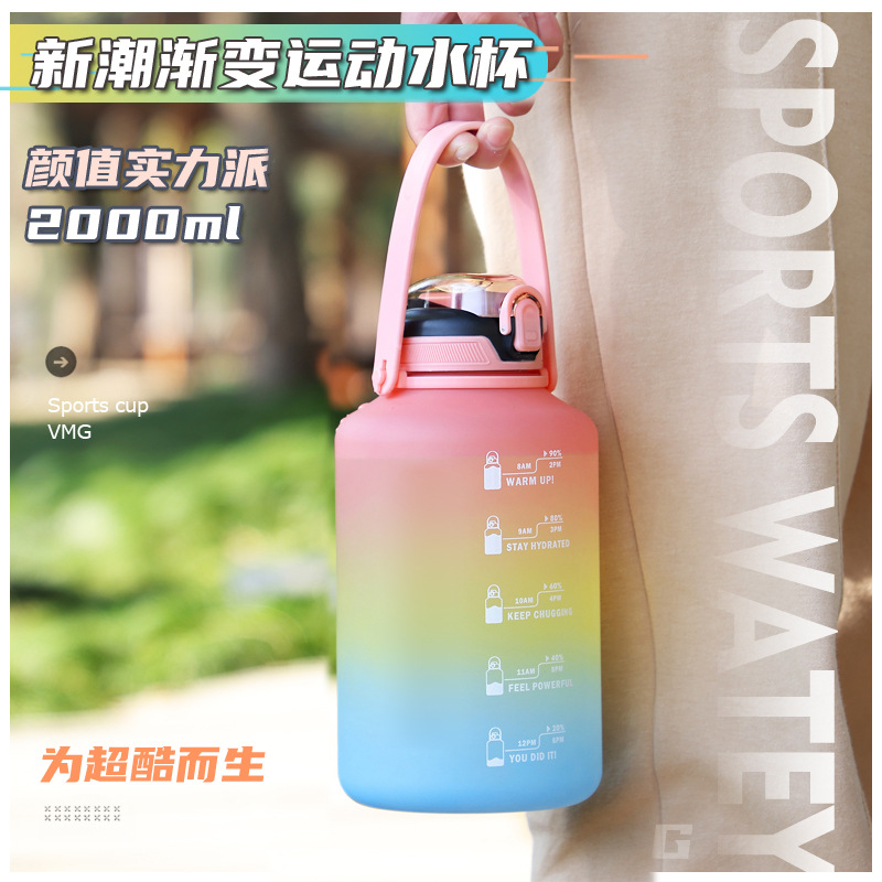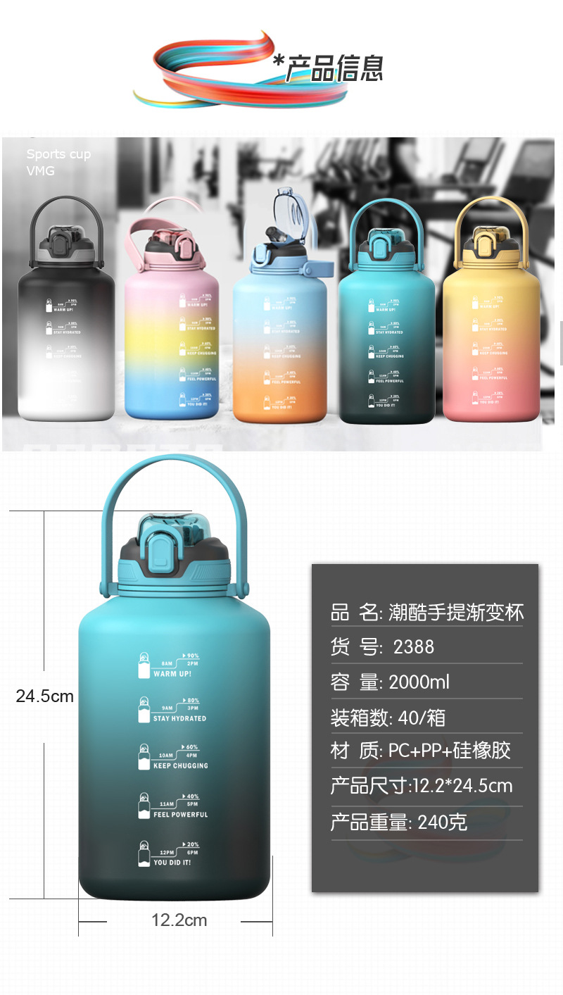 现货渐变色健身房户外运动水壶2L大容量水杯吸管杯塑料杯小额批发