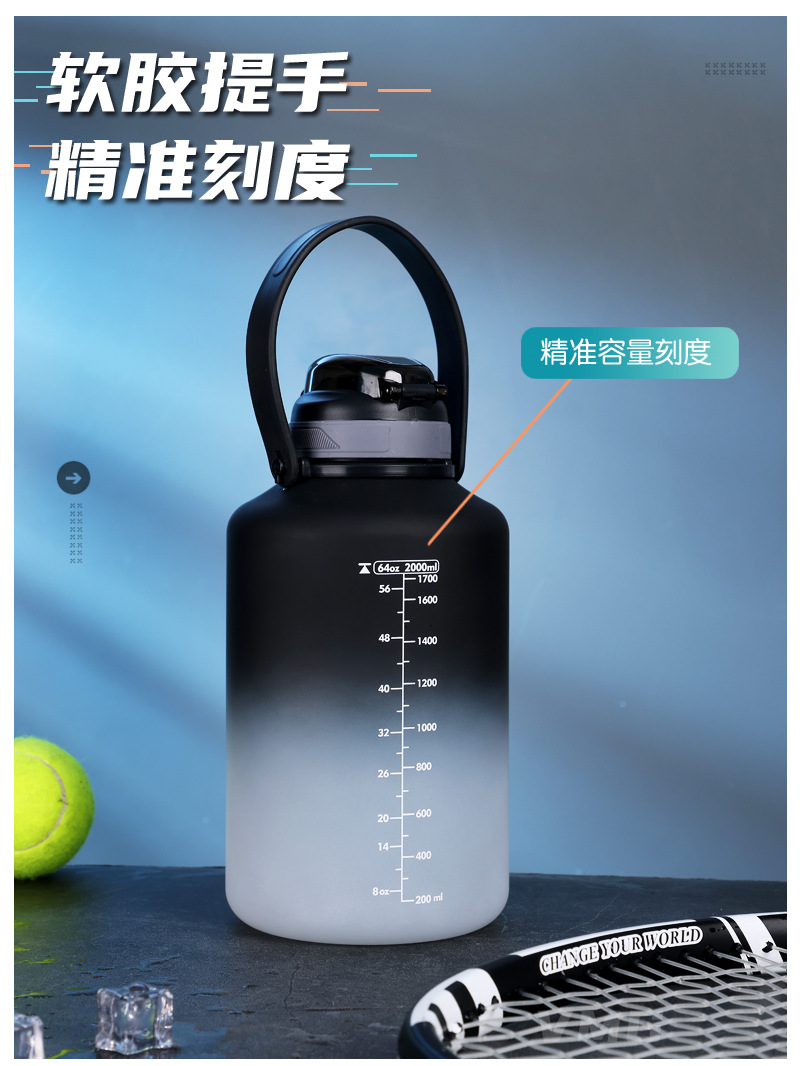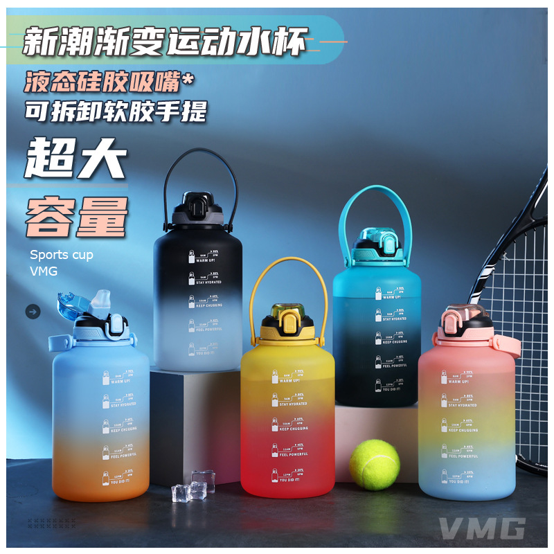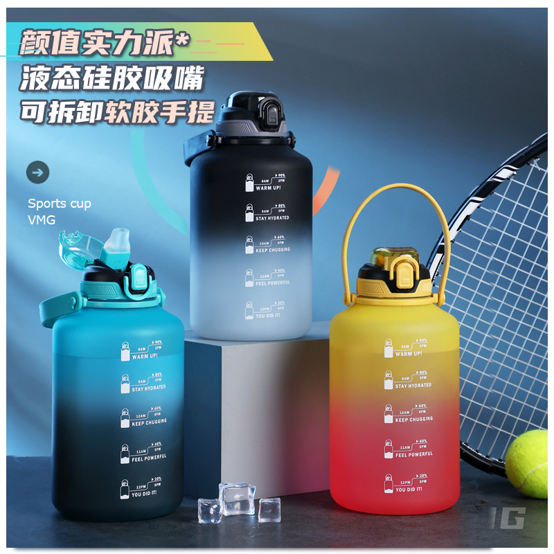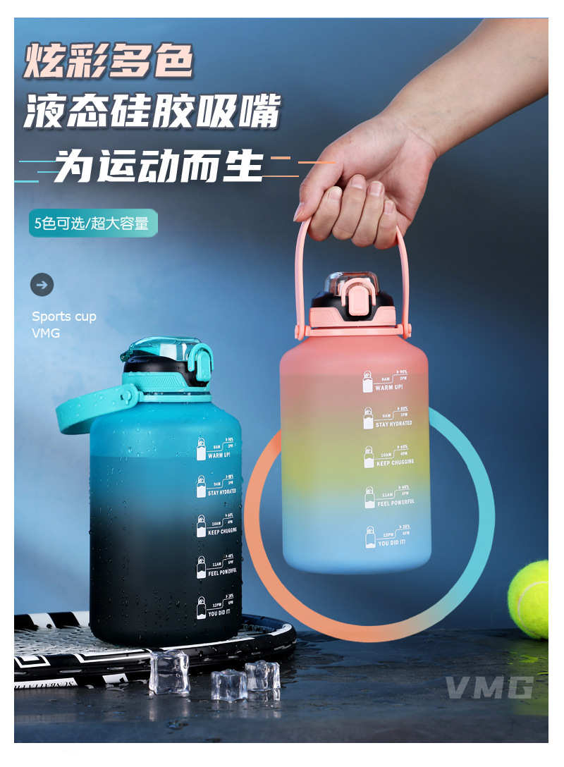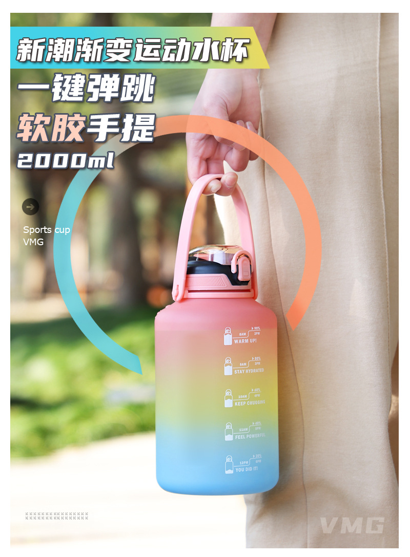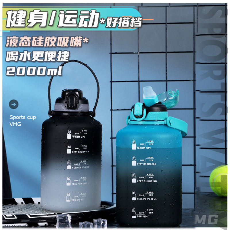 现货渐变色健身房户外运动水壶2L大容量水杯吸管杯塑料杯小额批发