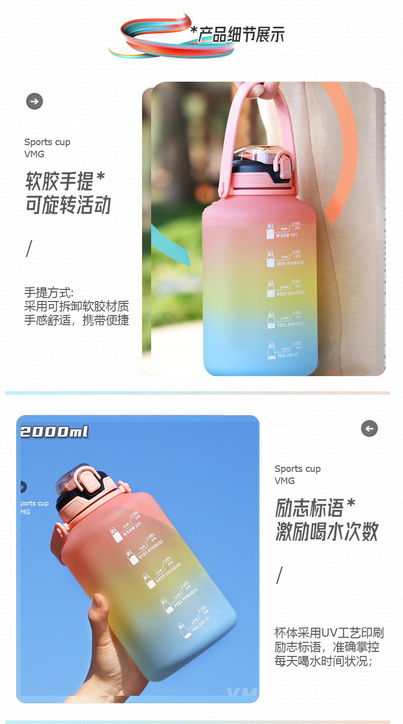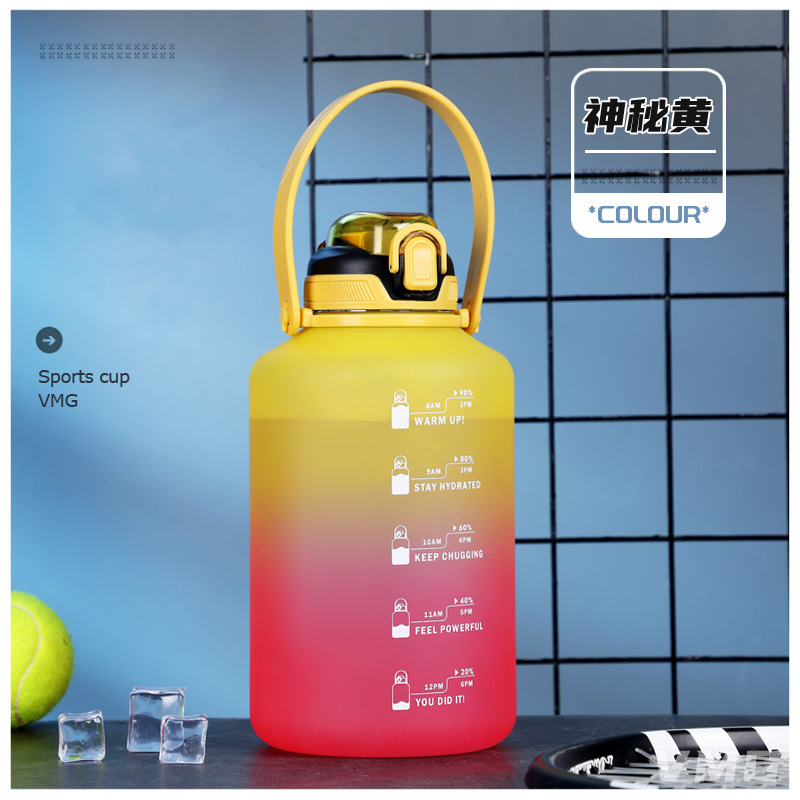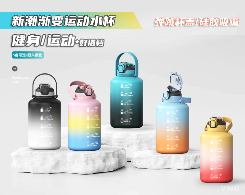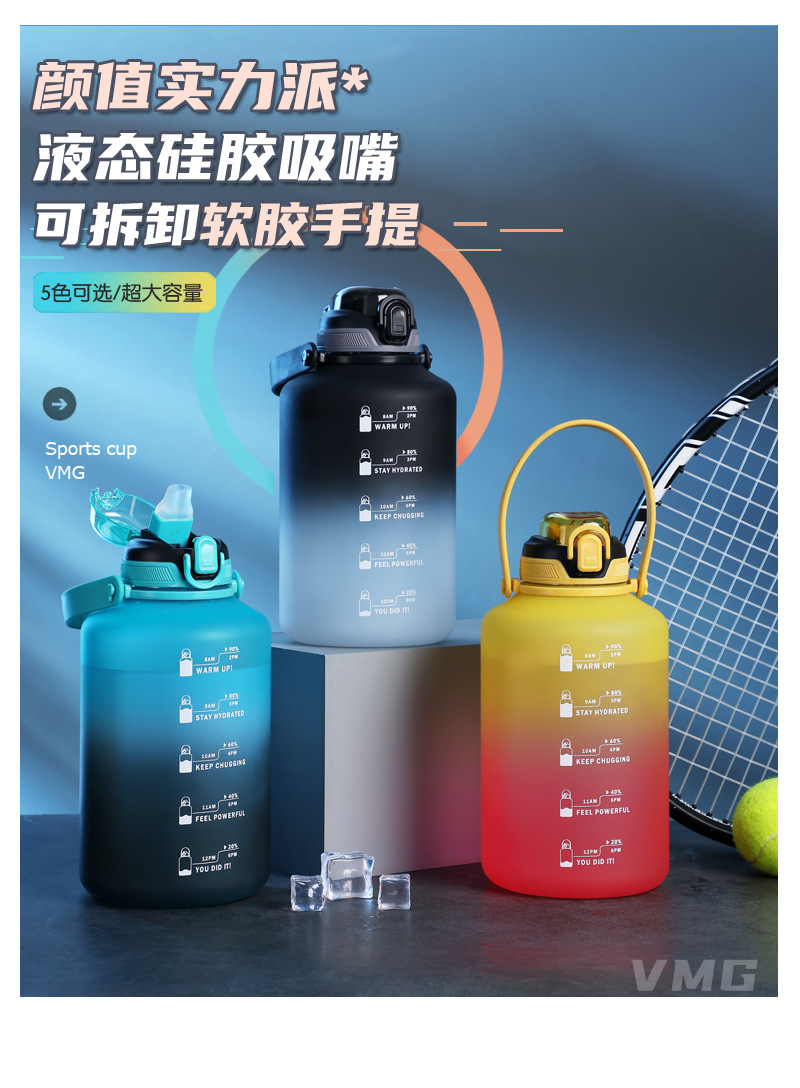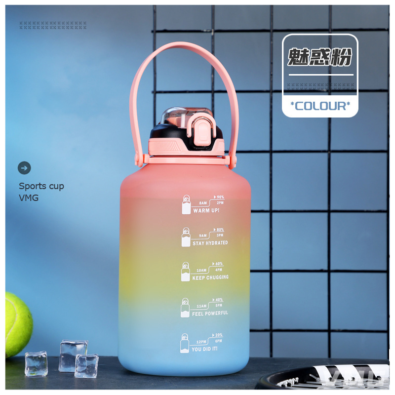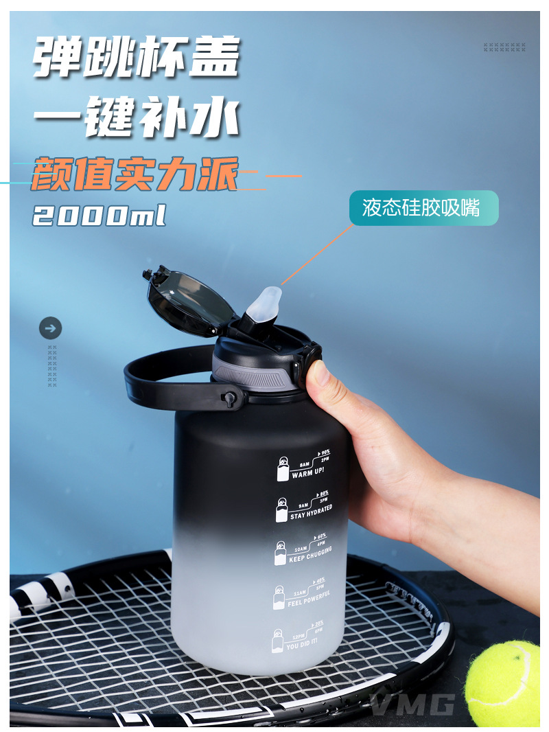 现货渐变色健身房户外运动水壶2L大容量水杯吸管杯塑料杯小额批发