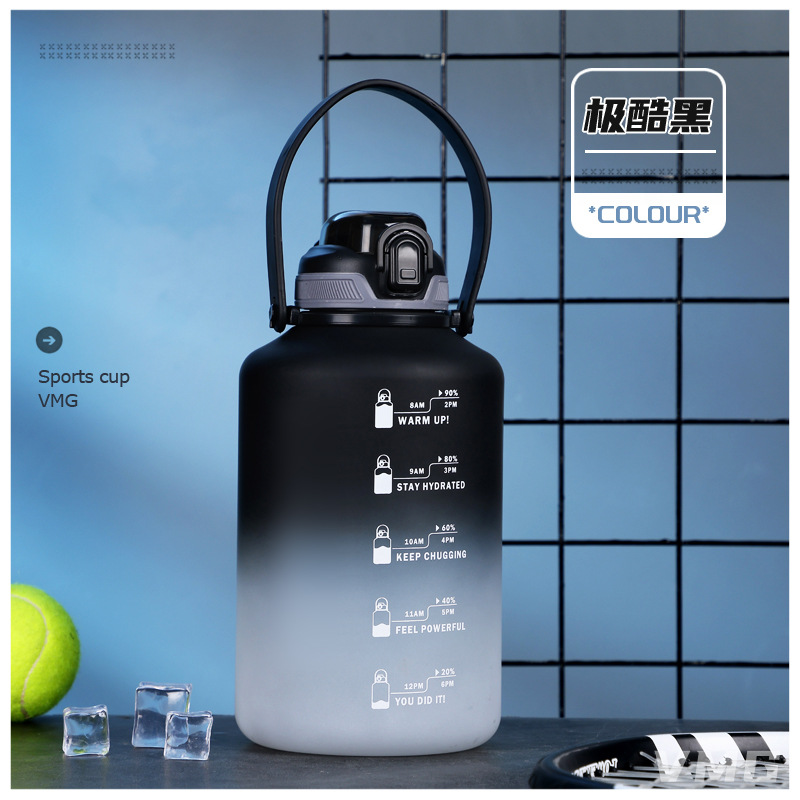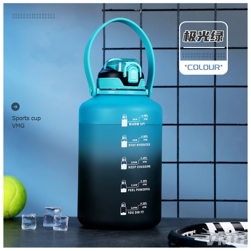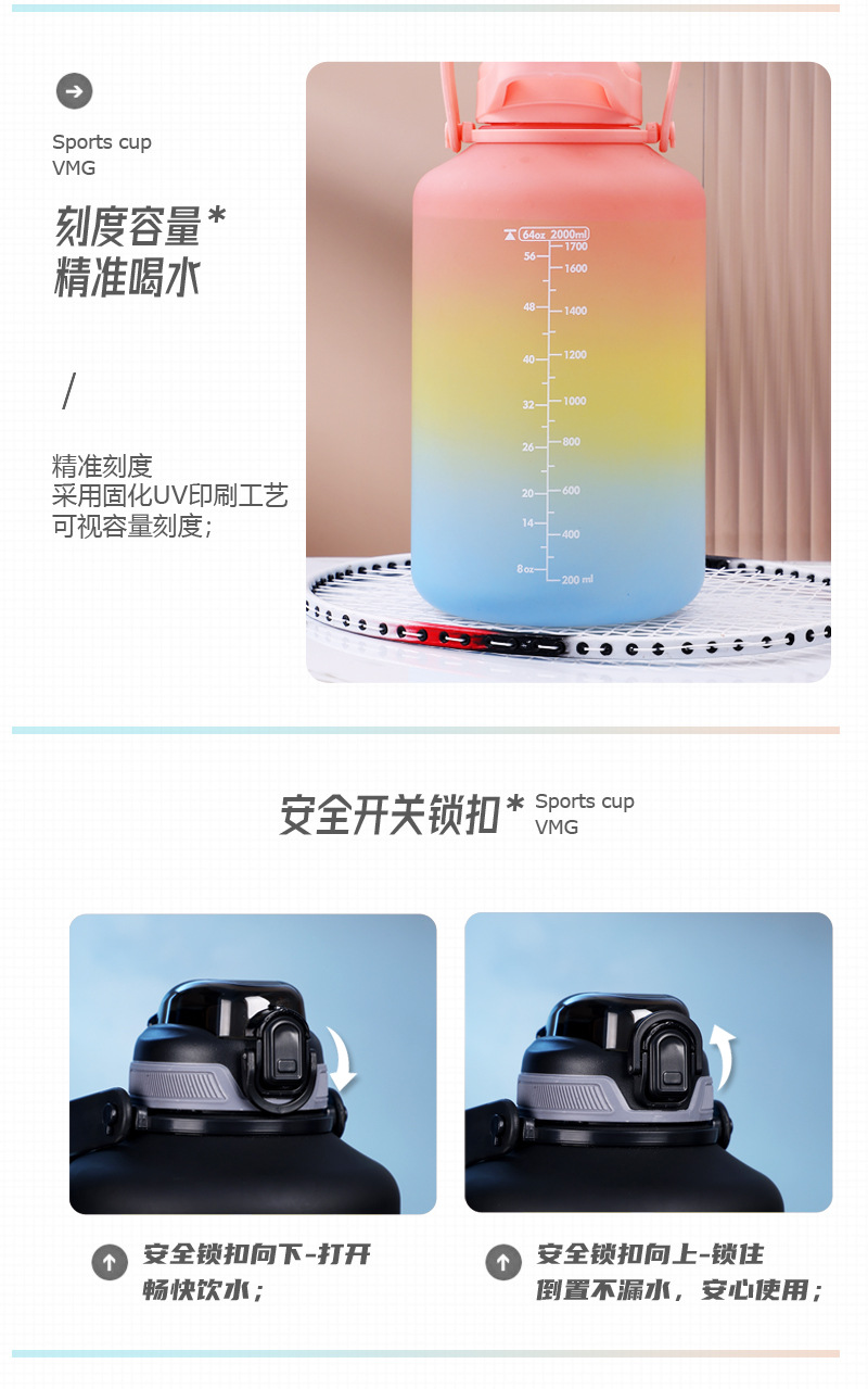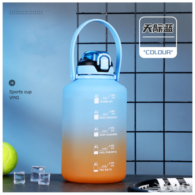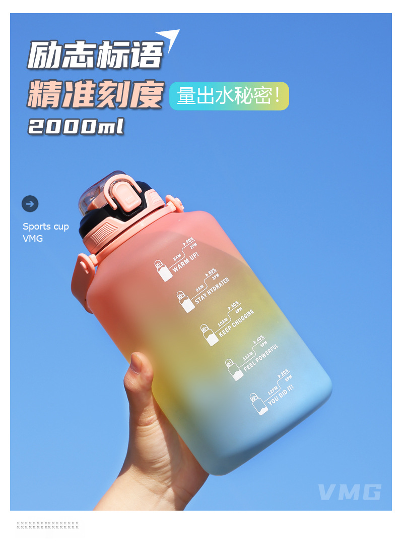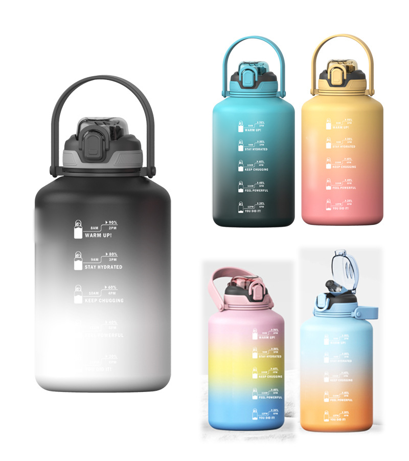 现货渐变色健身房户外运动水壶2L大容量水杯吸管杯塑料杯小额批发