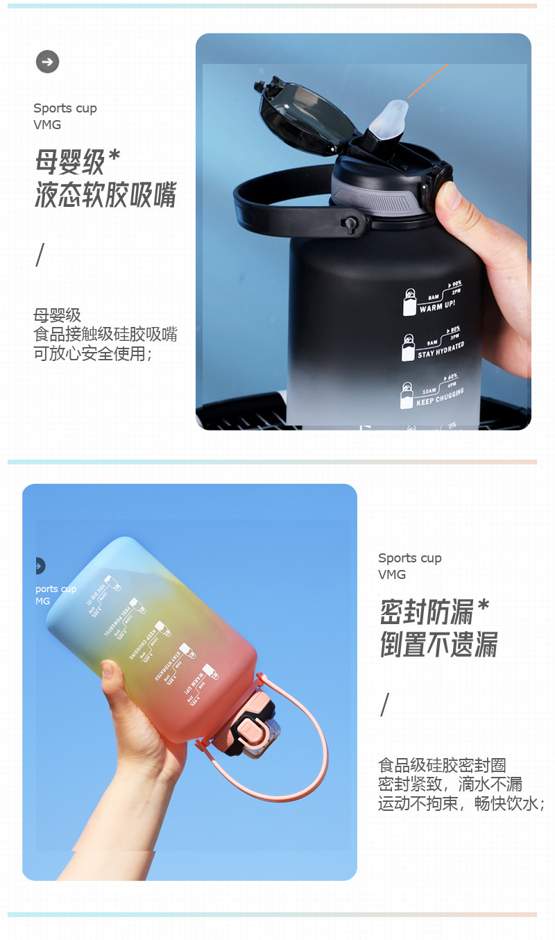 大容量运动水杯男女健身水壶夏天便携户外带吸嘴塑料学生杯子防摔