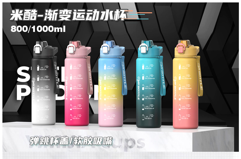 大容量运动水杯男女健身水壶夏天便携户外带吸嘴塑料学生杯子防摔