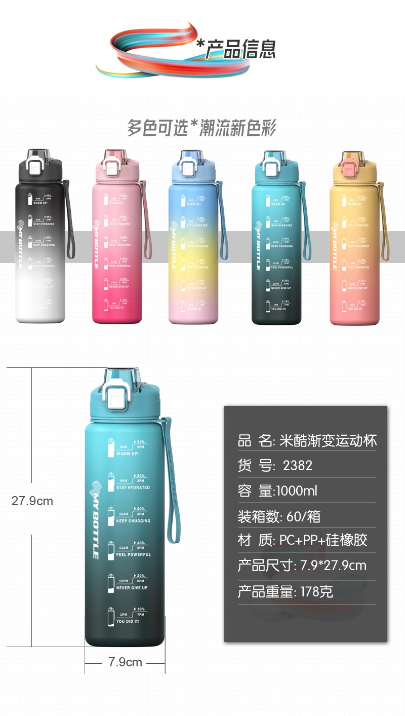 水杯大容量运动水壶男女生健身户外太空杯耐高温塑料杯子水瓶2382