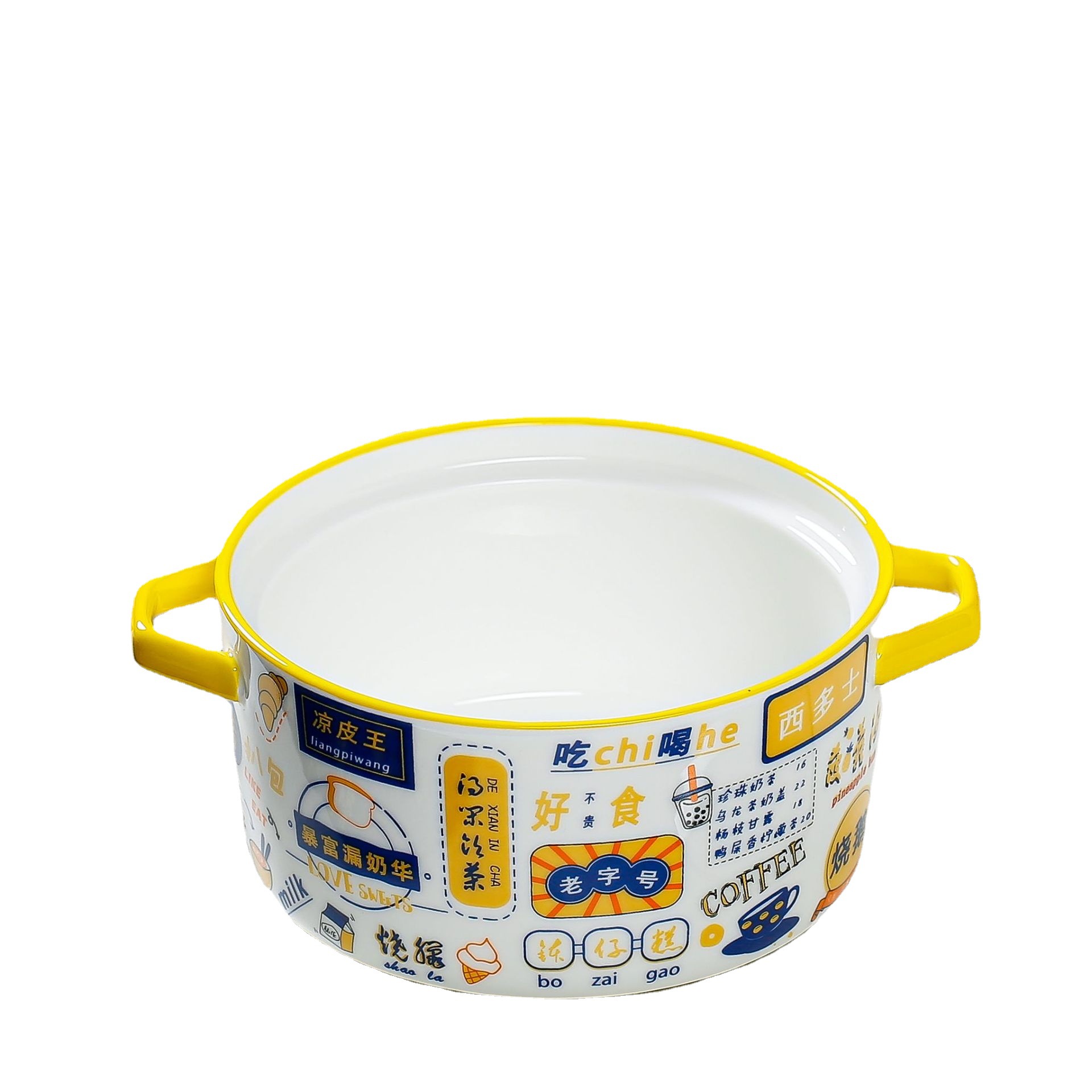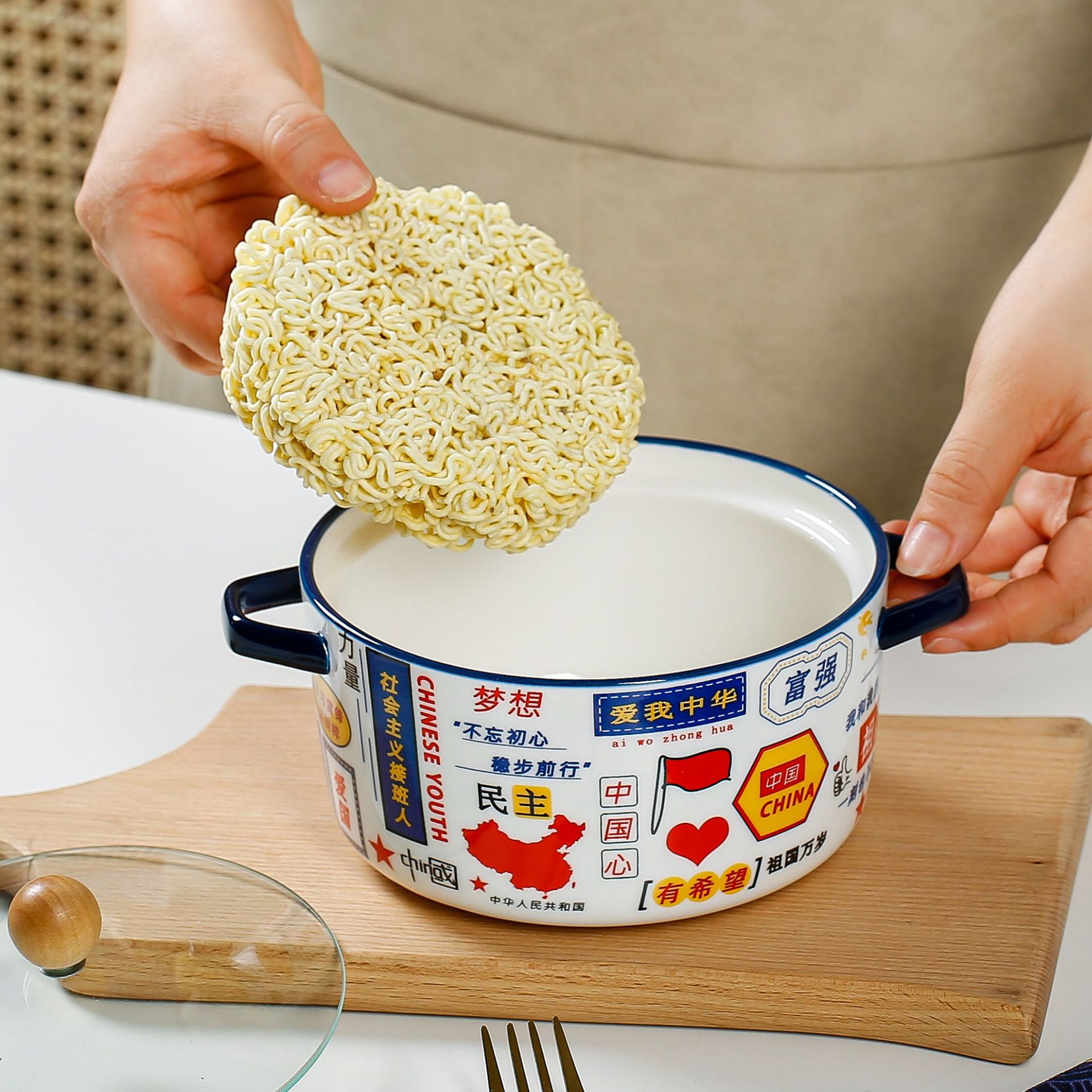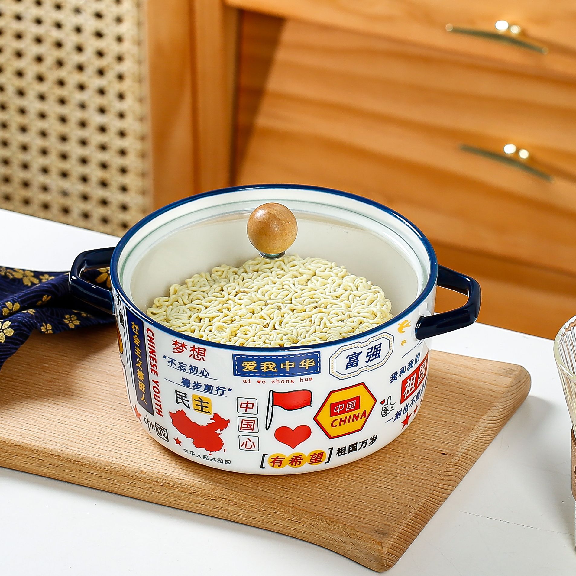 北欧创意陶瓷泡面碗带盖 家用保鲜碗 双耳汤碗可爱餐具微波炉瓷碗