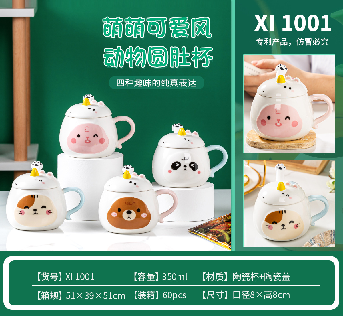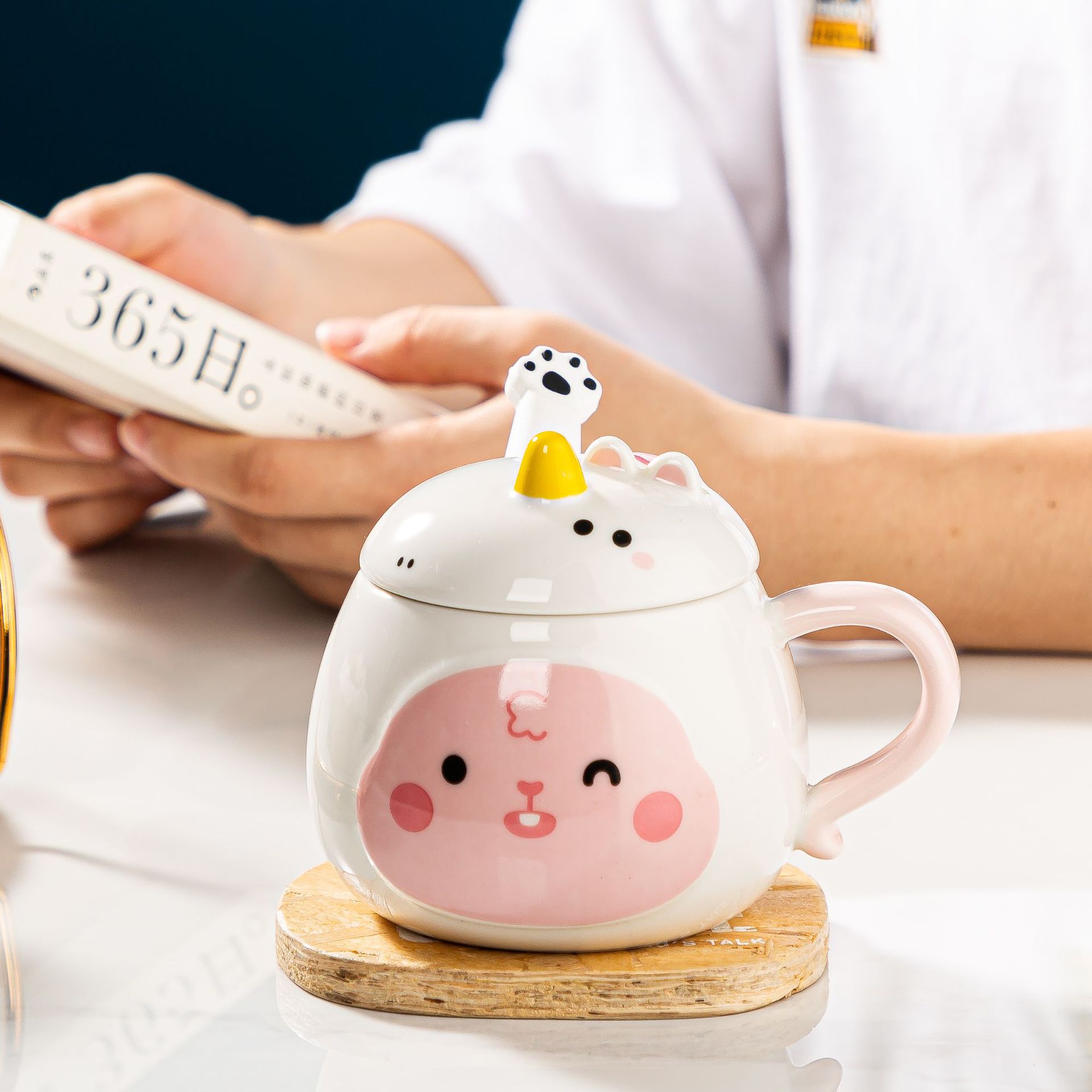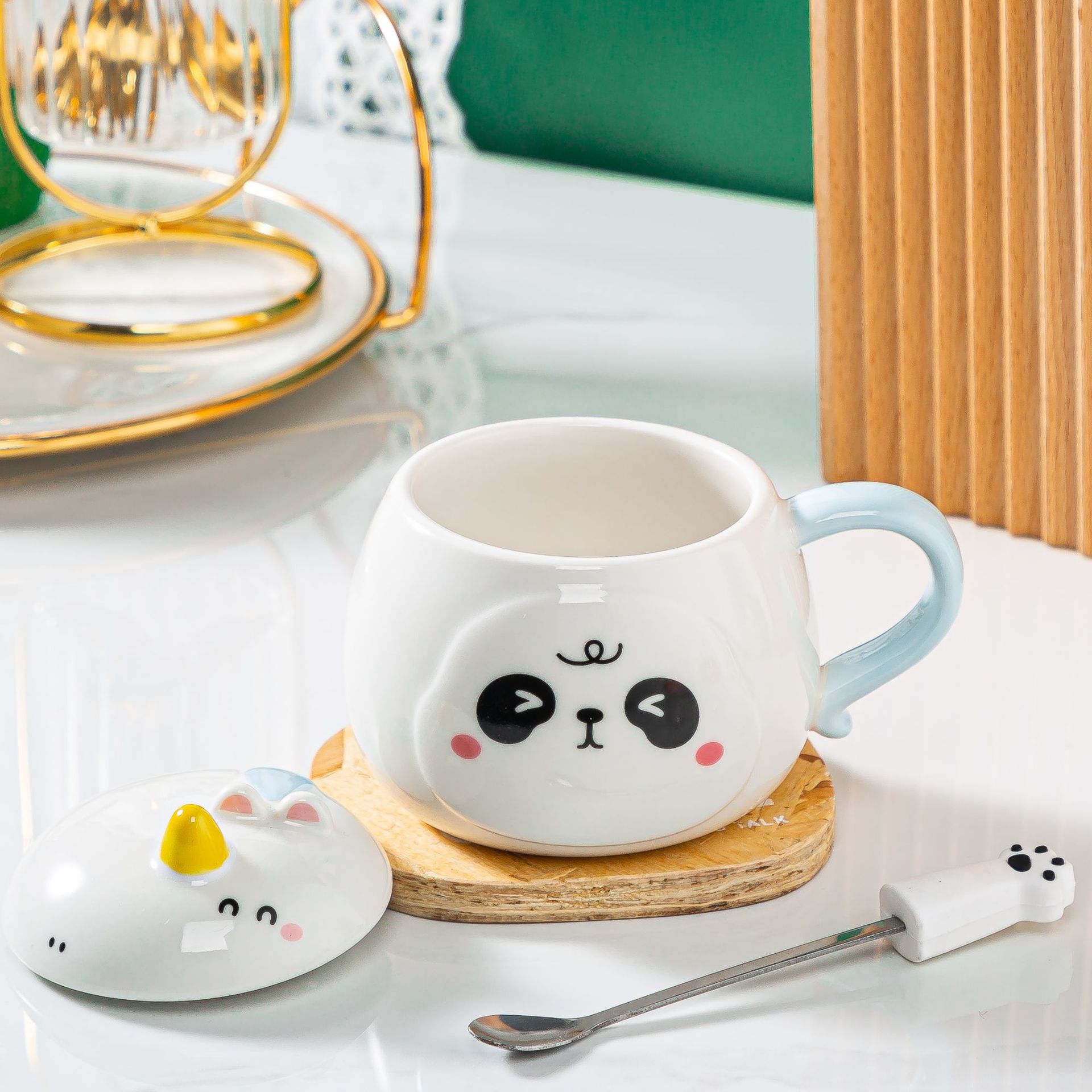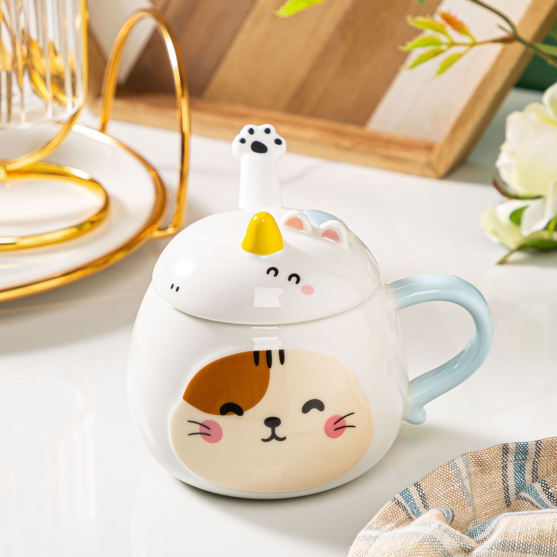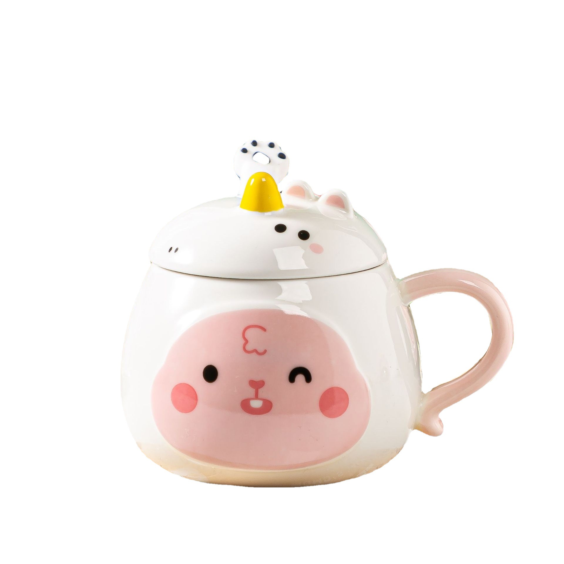 带盖卡通立体浮雕大象陶瓷杯办公家用马克杯咖啡杯高颜值水杯严选