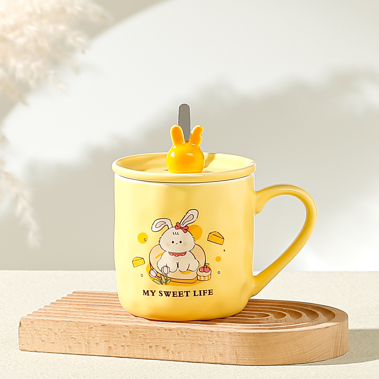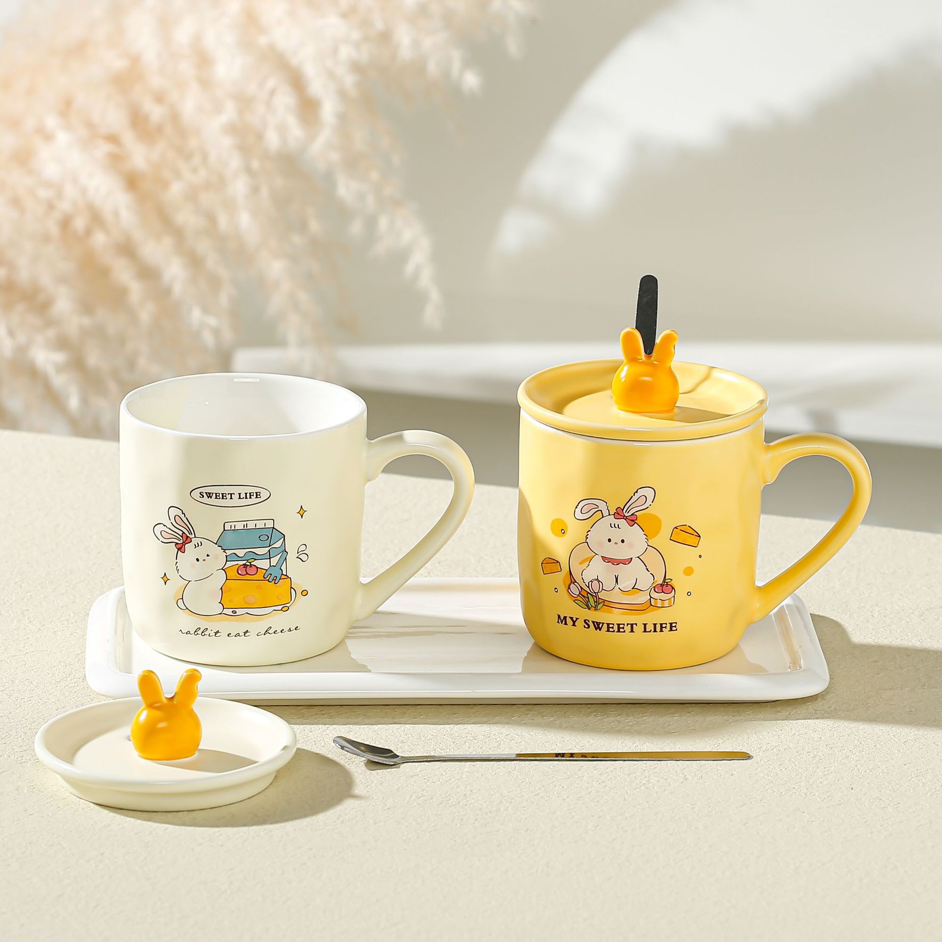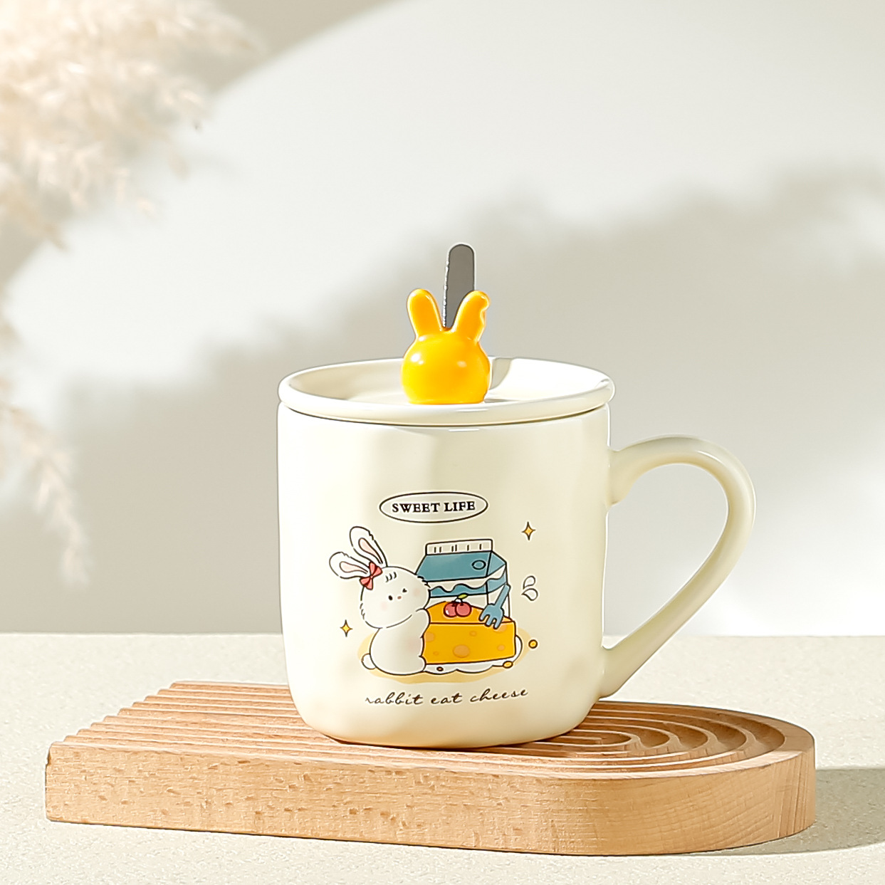 可爱卡通马克杯ins创意陶瓷杯带盖不锈钢吸管家用伴手礼水杯礼品