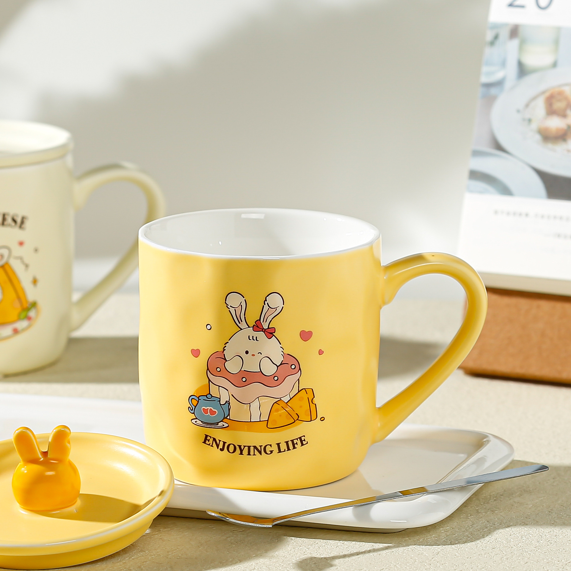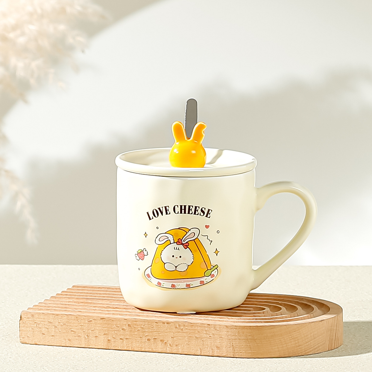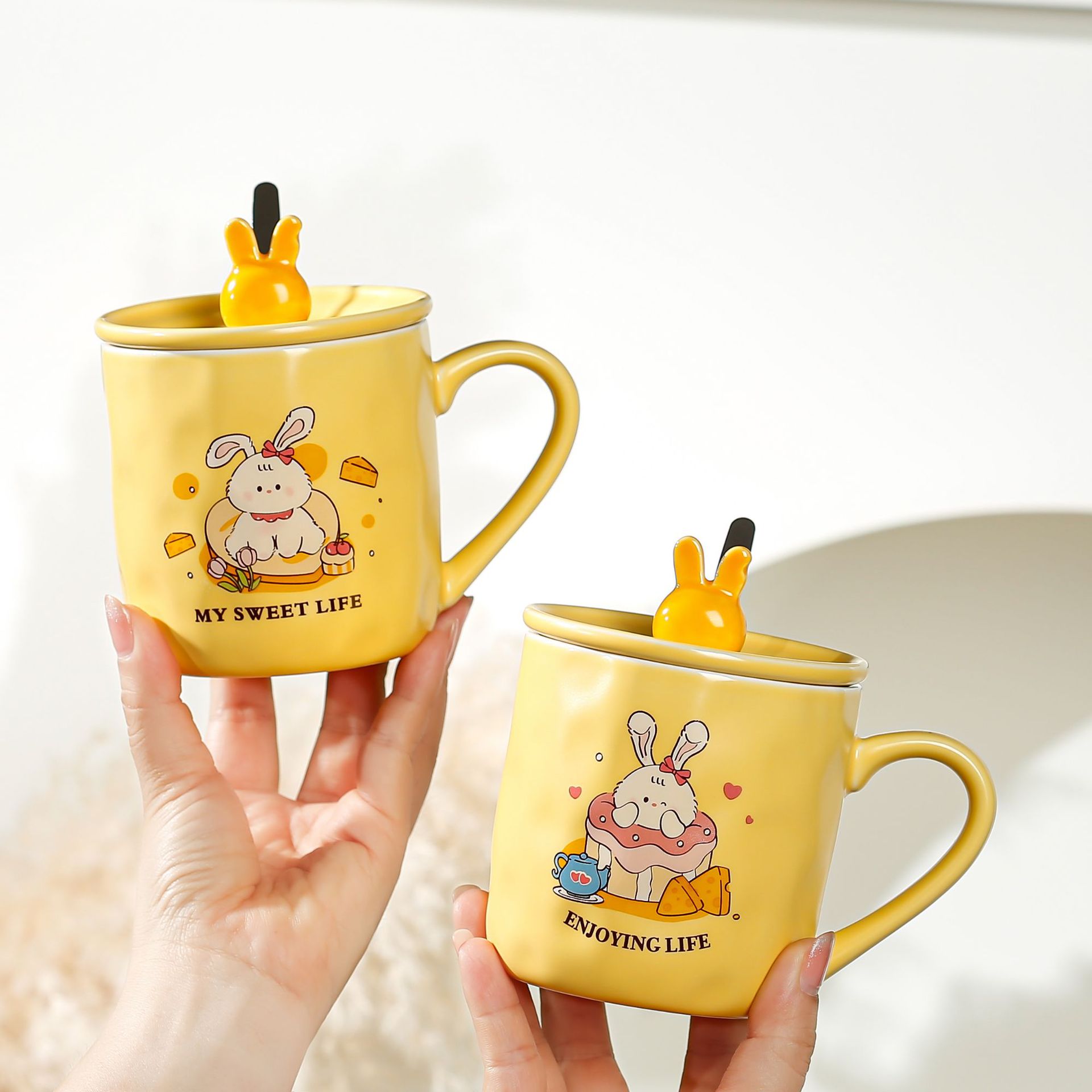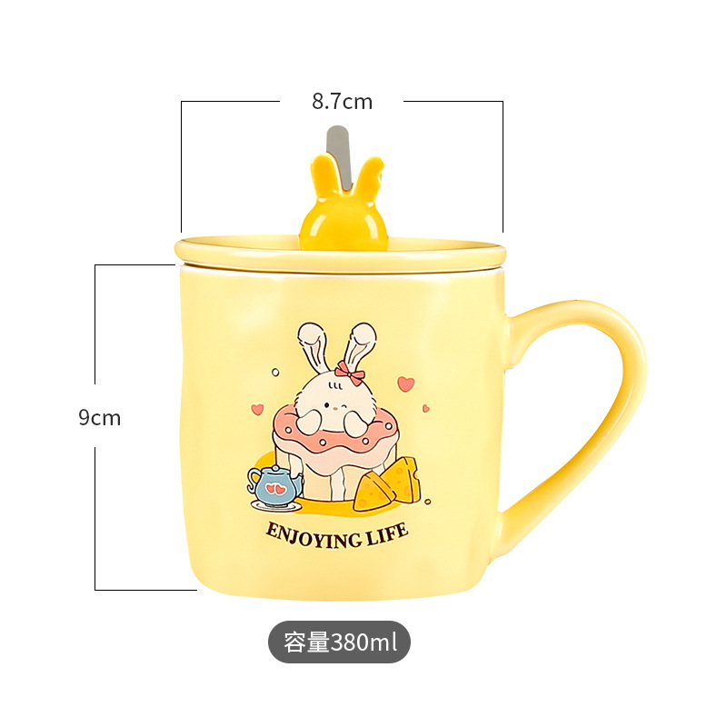 卡通草莓呆萌兔子陶瓷杯带盖马克杯咖啡杯学生儿童水杯创意小礼品