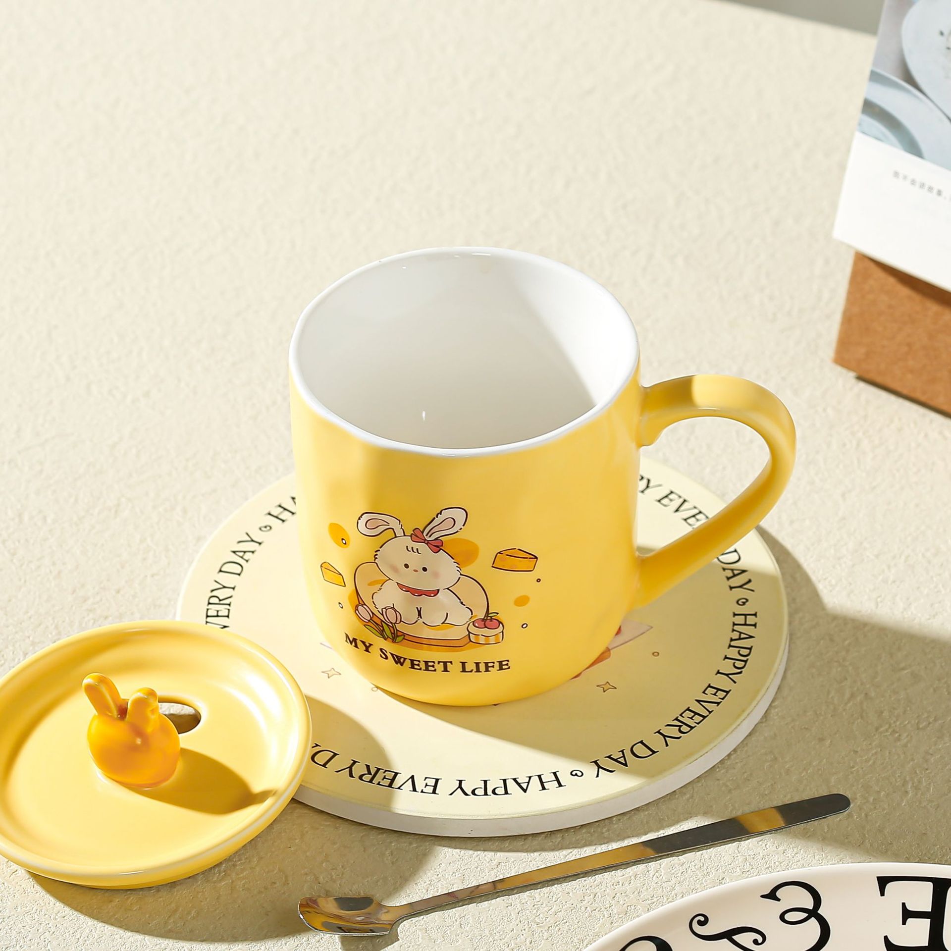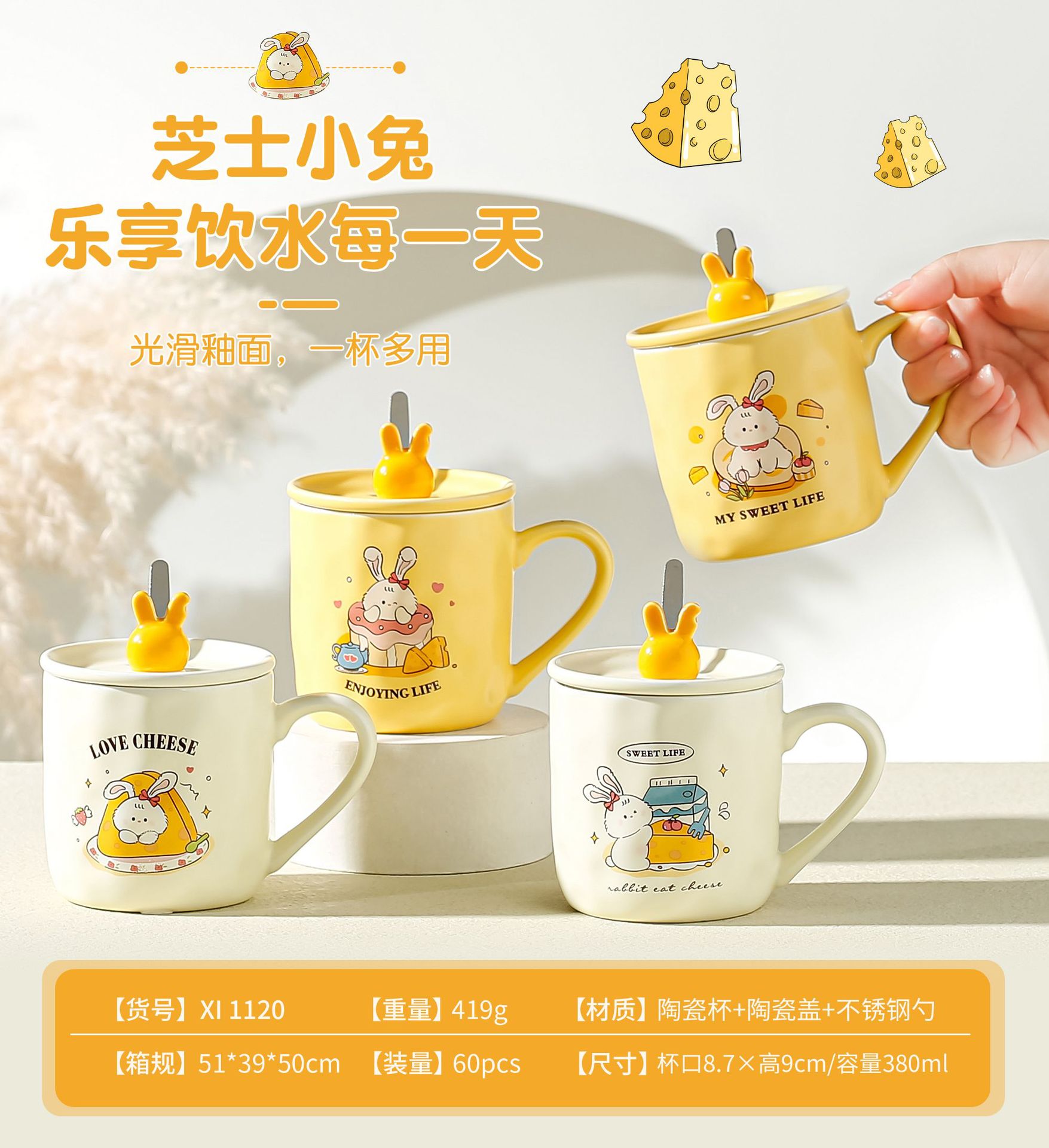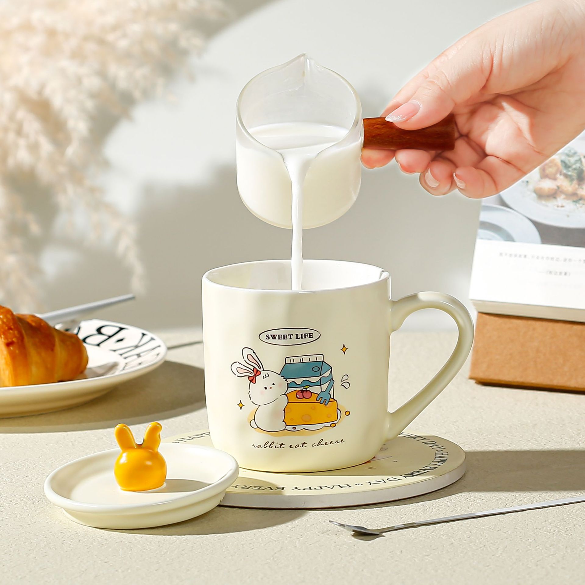 卡通草莓呆萌兔子陶瓷杯带盖马克杯咖啡杯学生儿童水杯创意小礼品