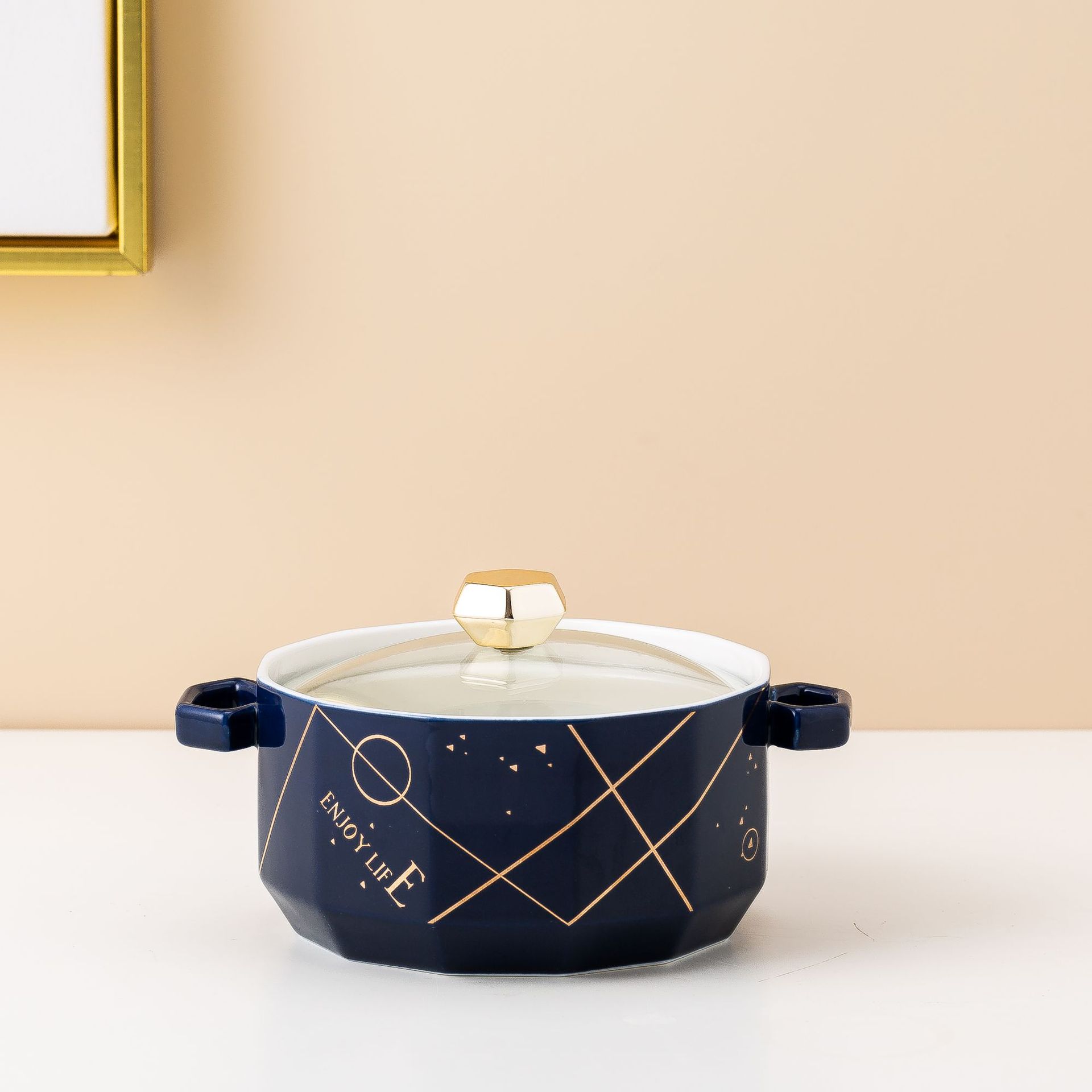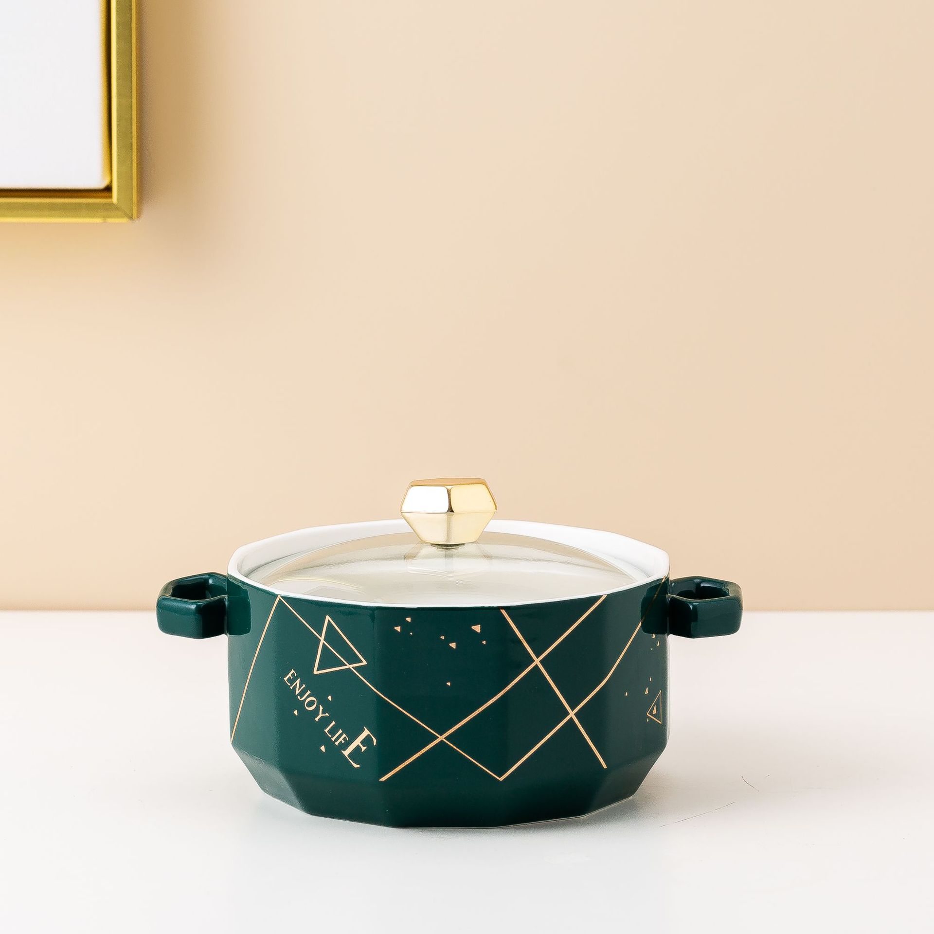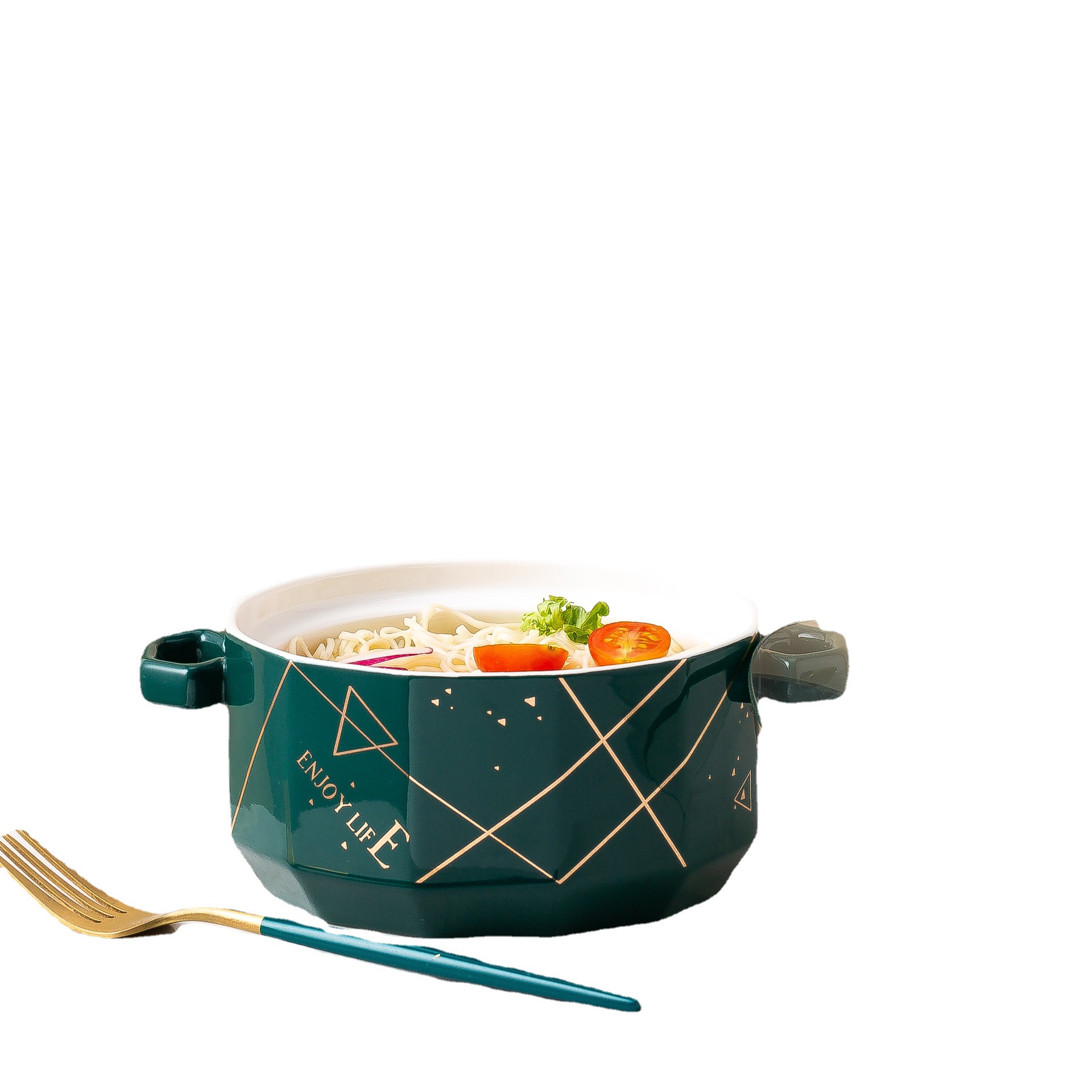 北欧创意陶瓷泡面碗带盖 家用保鲜碗 双耳汤碗可爱餐具微波炉瓷碗
