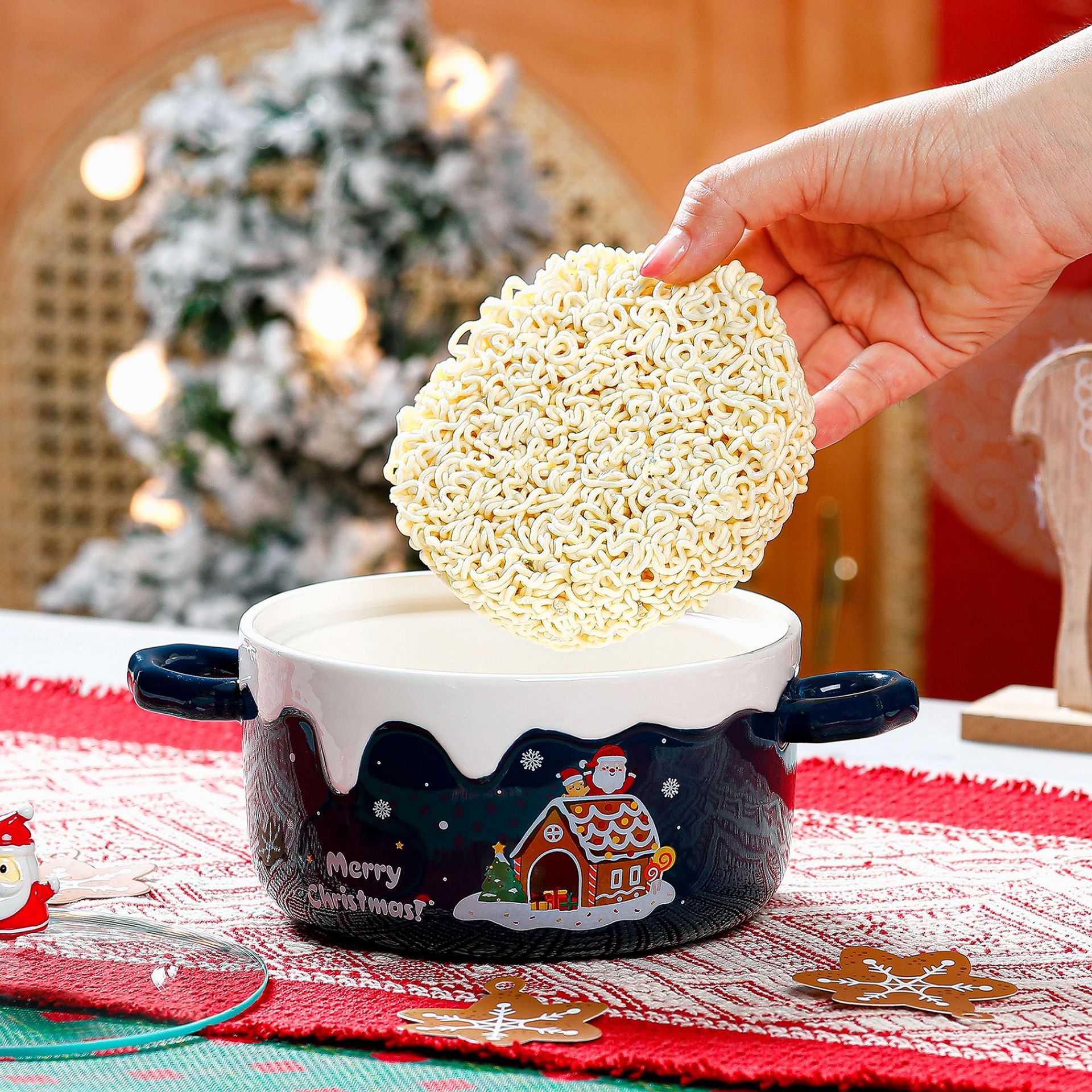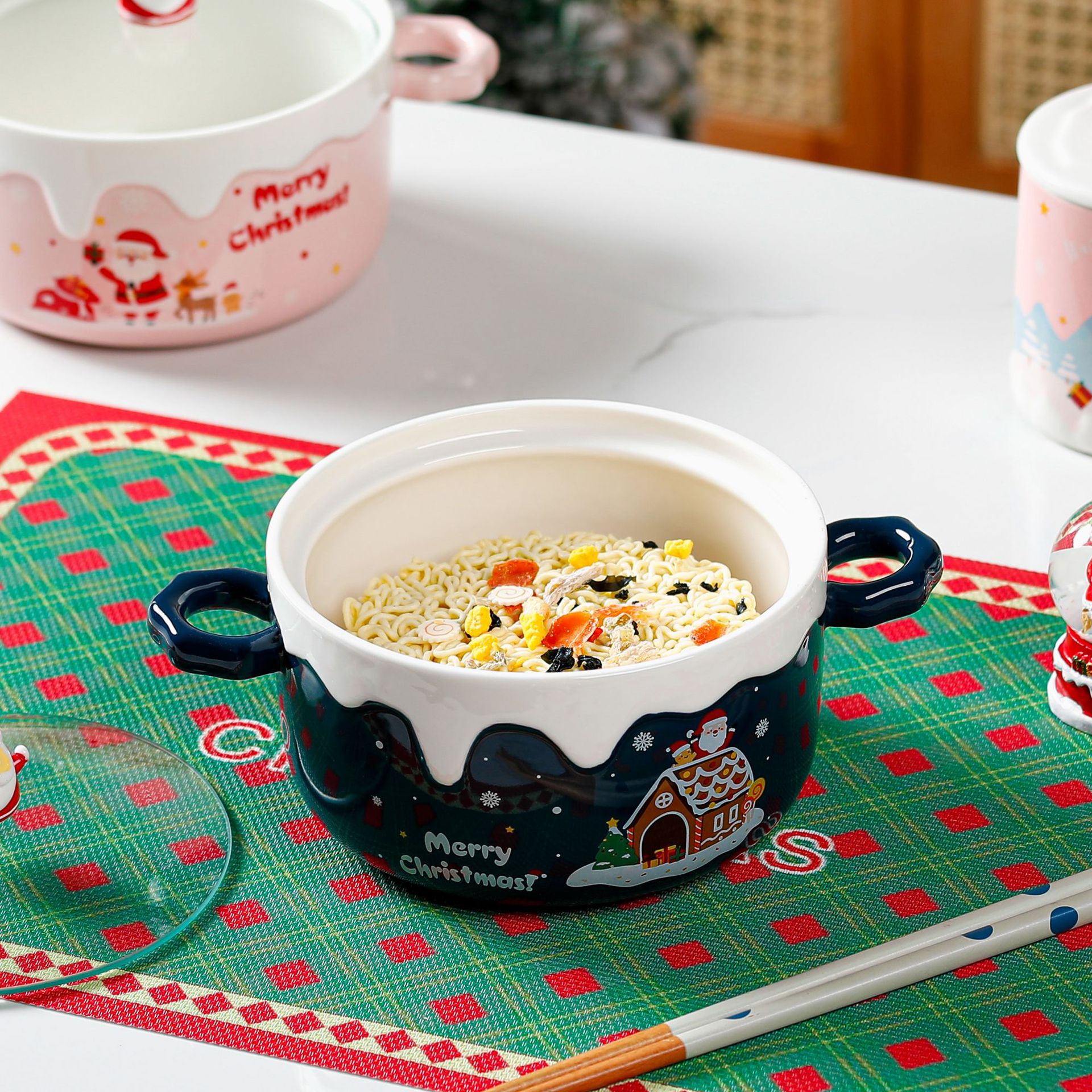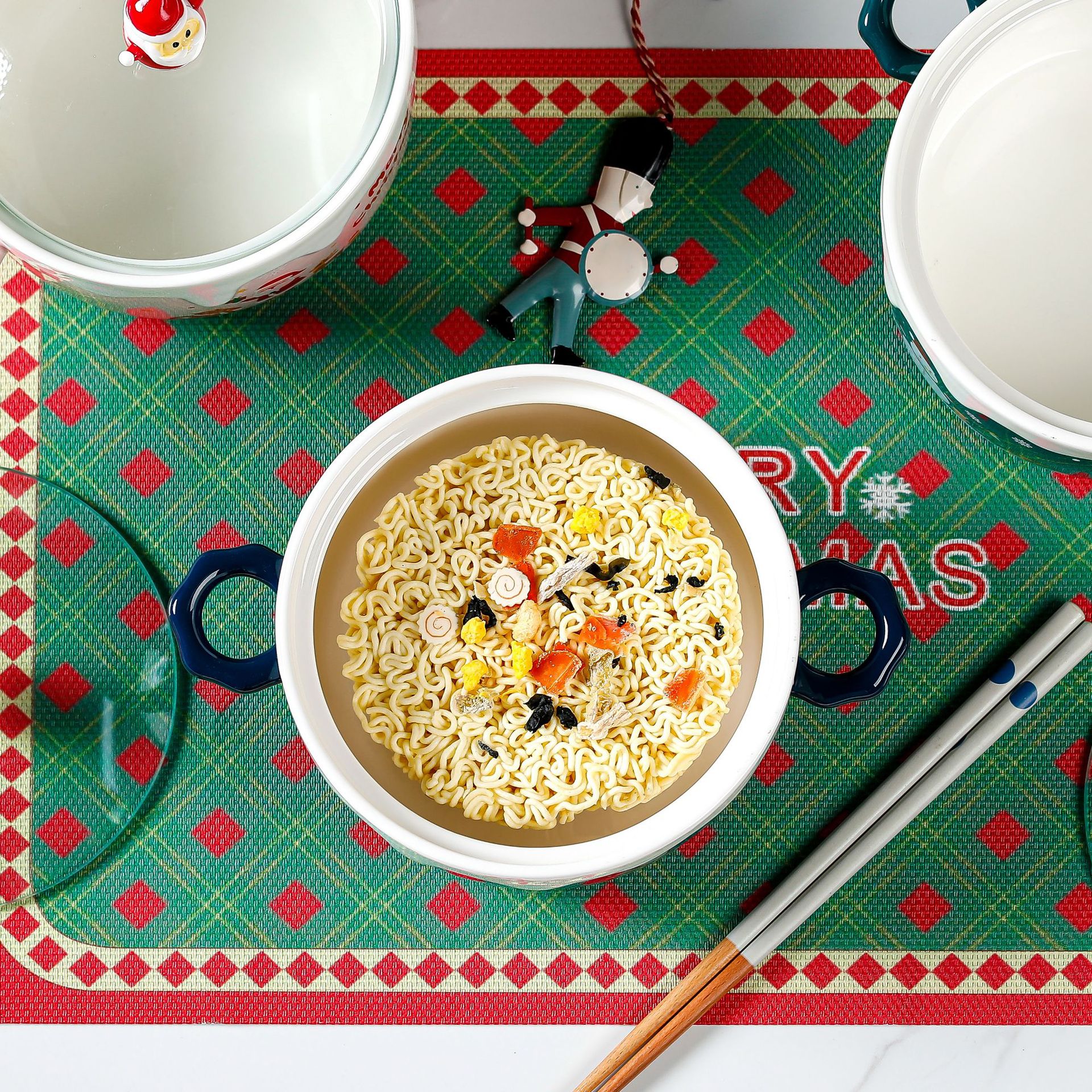 北欧创意陶瓷泡面碗带盖 家用保鲜碗 双耳汤碗可爱餐具微波炉瓷碗