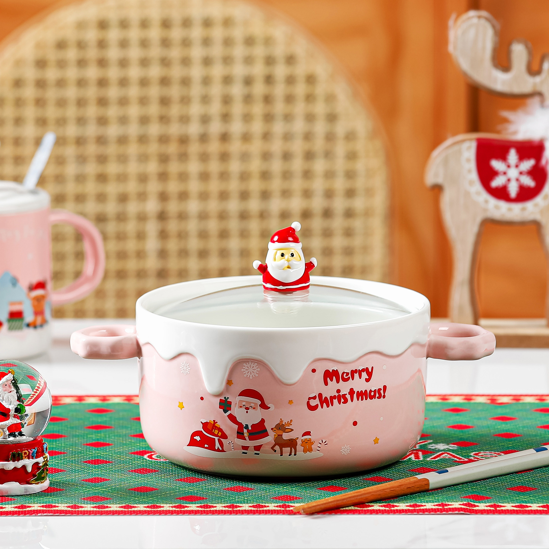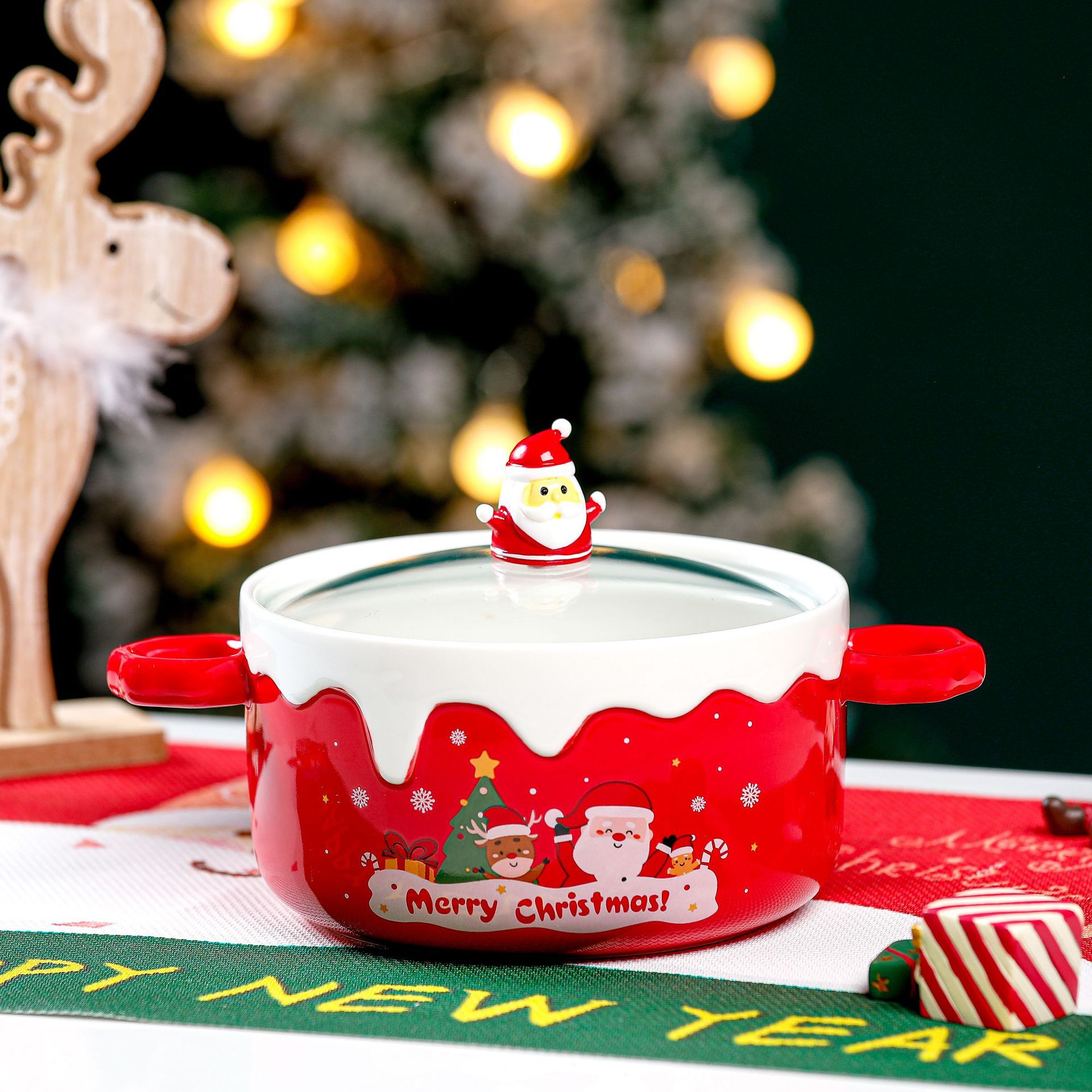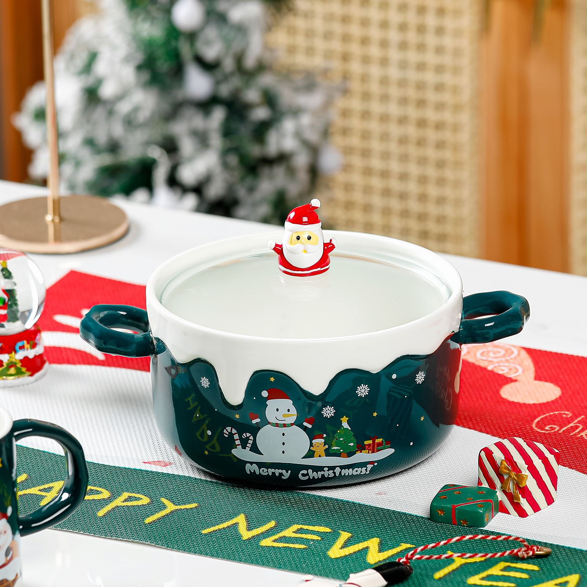 北欧创意陶瓷泡面碗带盖 家用保鲜碗 双耳汤碗可爱餐具微波炉瓷碗