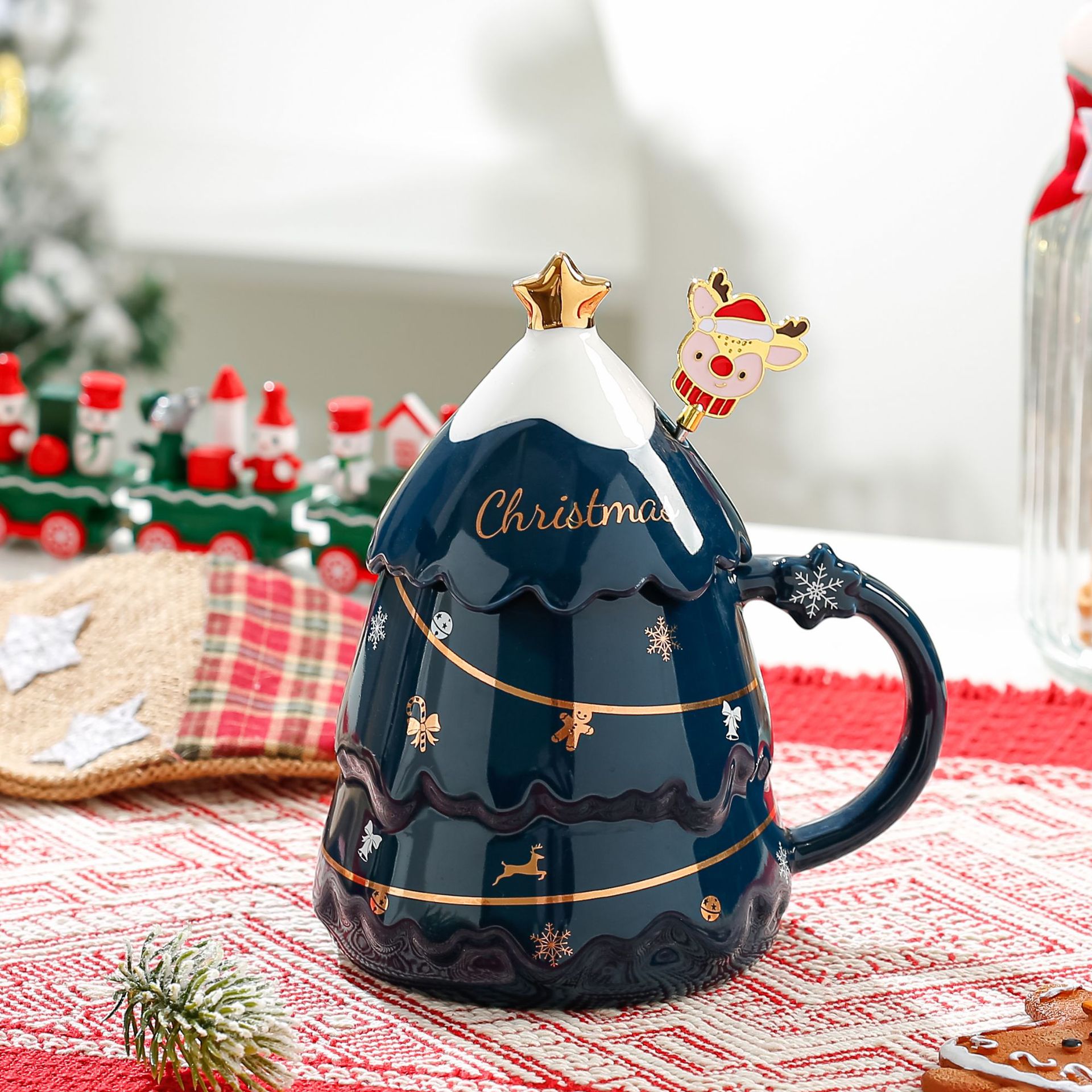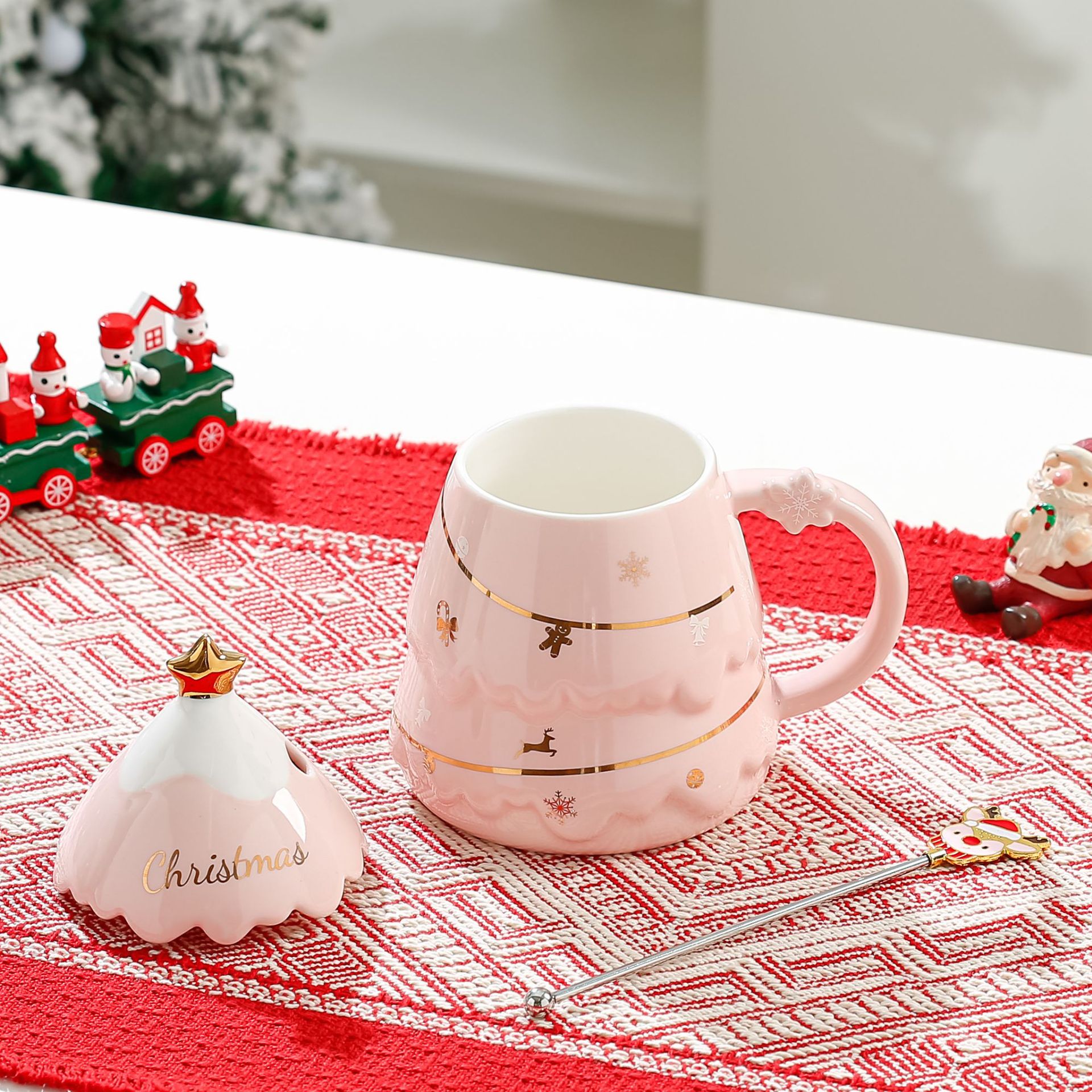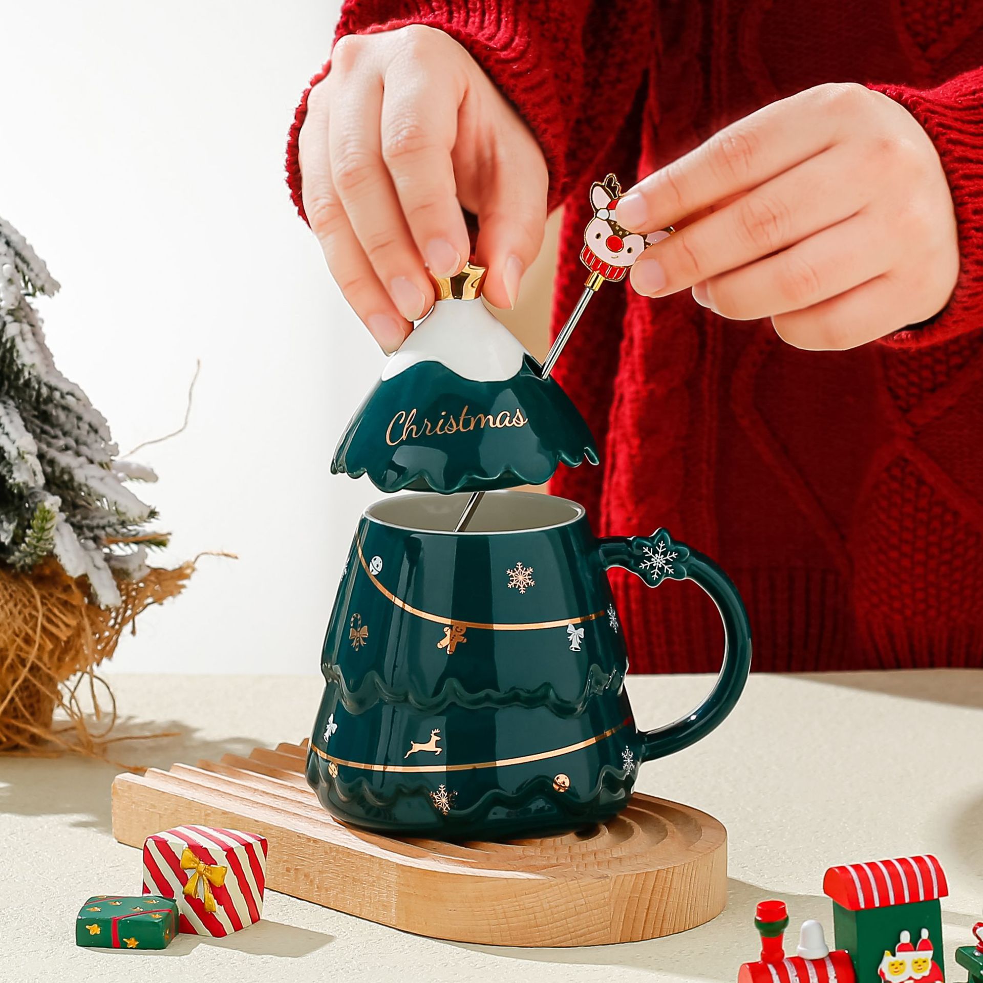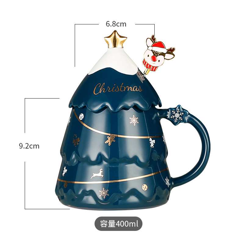 创意圣诞杯高颜值卡通陶瓷杯送礼实用礼品马克杯带盖勺礼物礼盒装