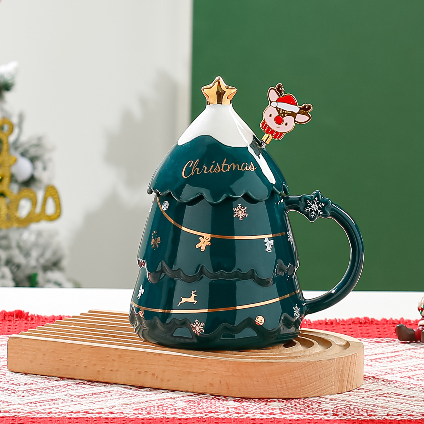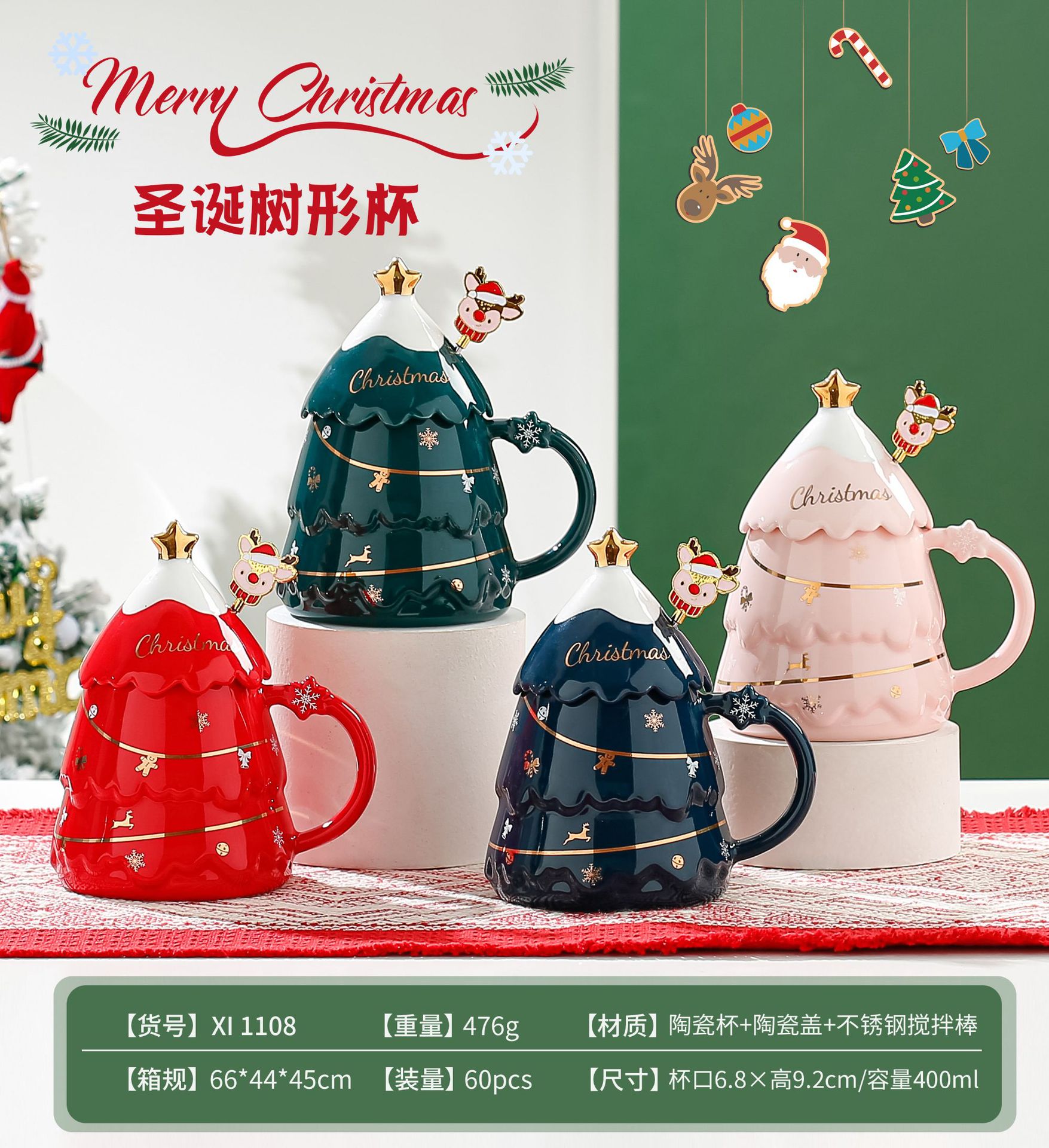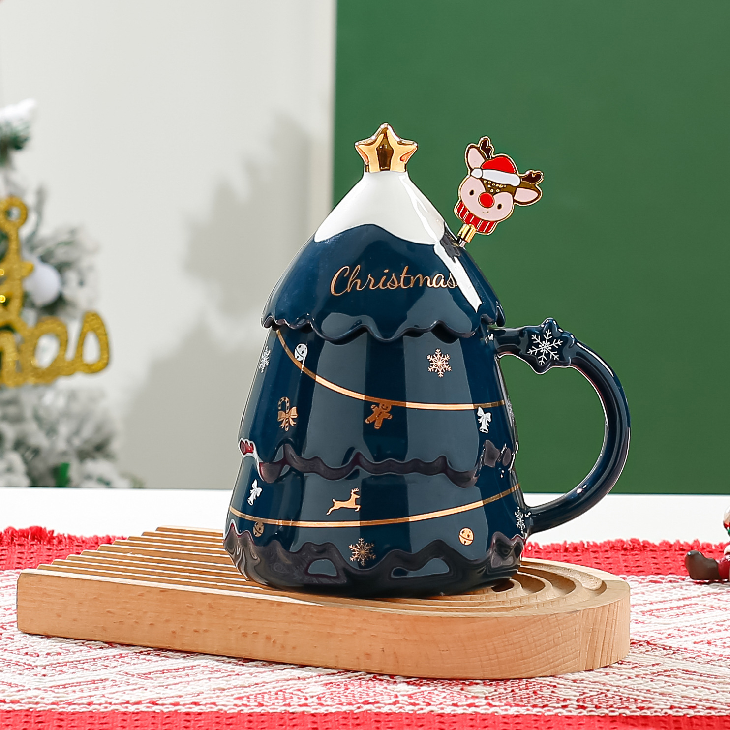 创意圣诞杯高颜值卡通陶瓷杯送礼实用礼品马克杯带盖勺礼物礼盒装