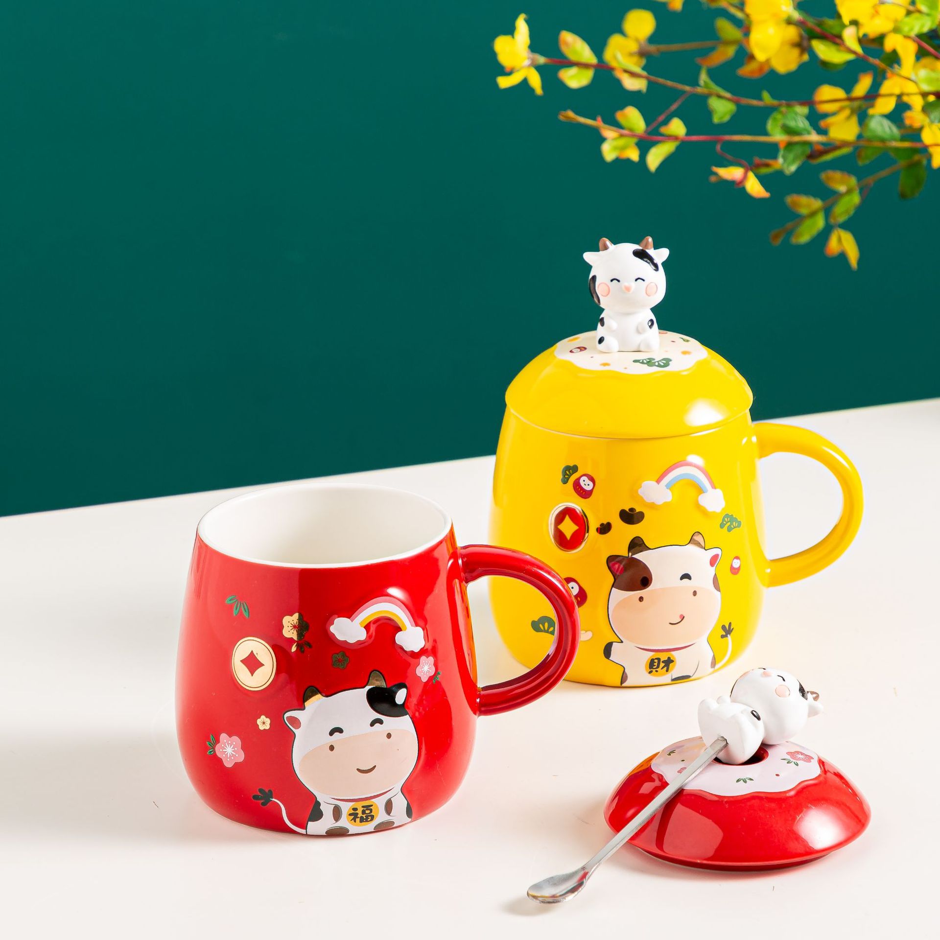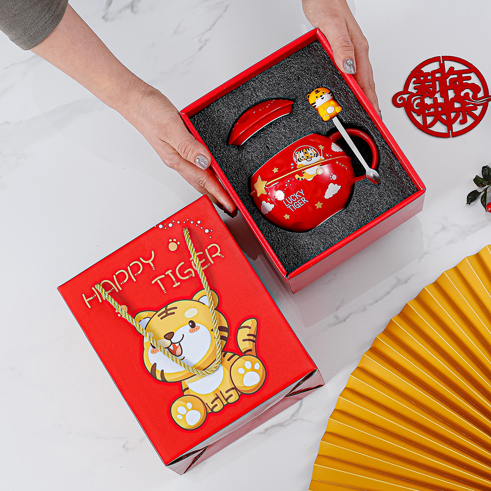 虎年吉祥杯子 新款创意卡通杯 礼品礼盒套装陶瓷杯 热销马克杯
