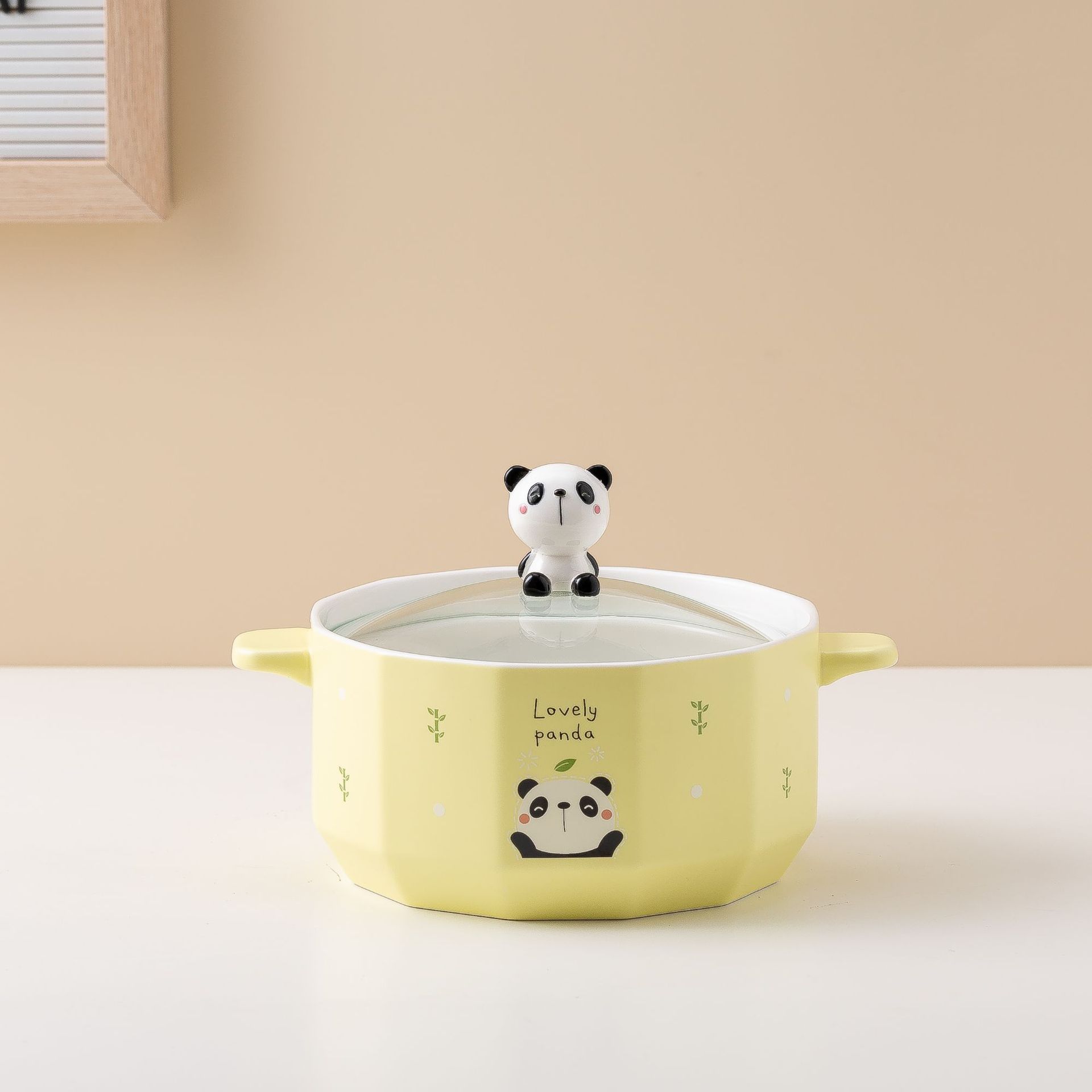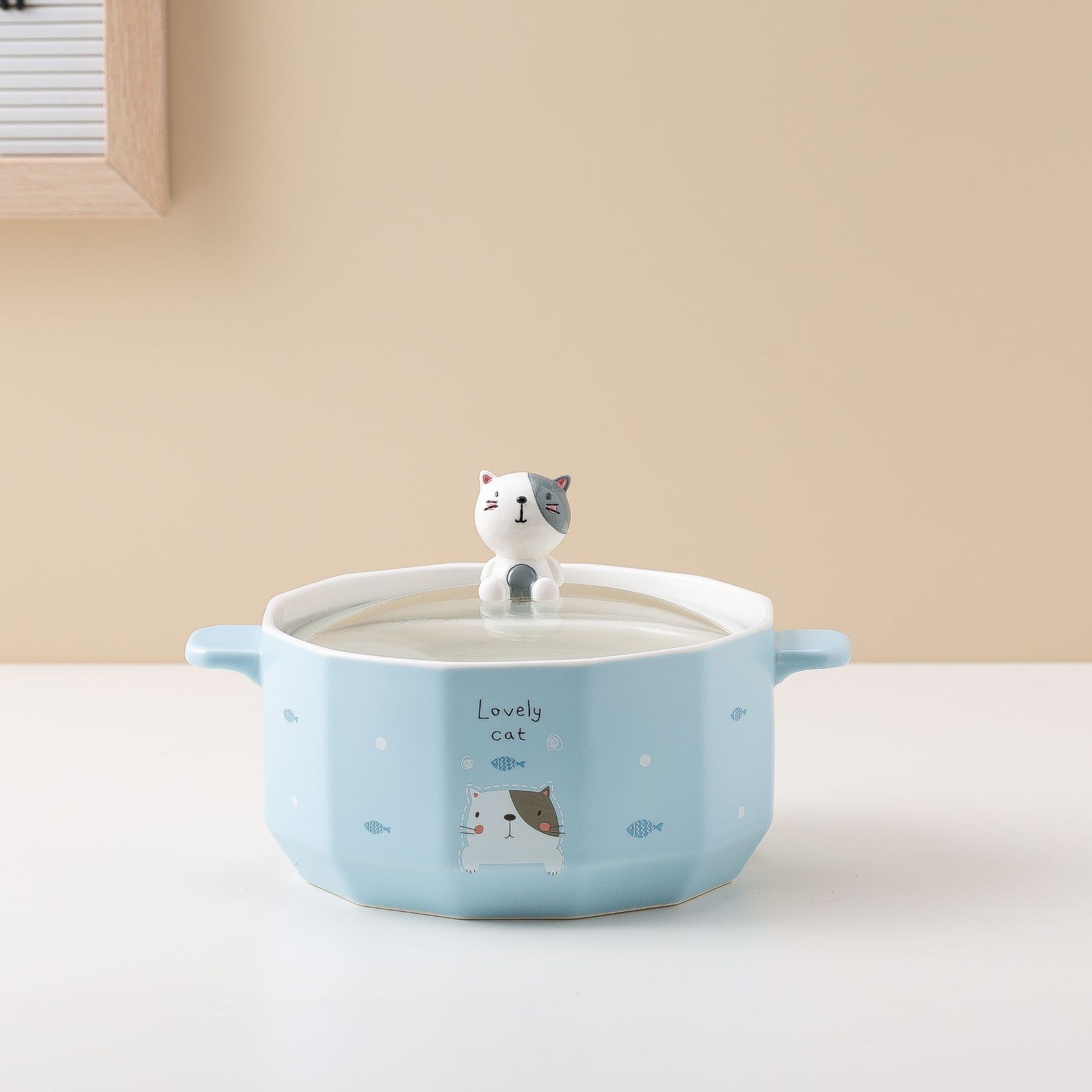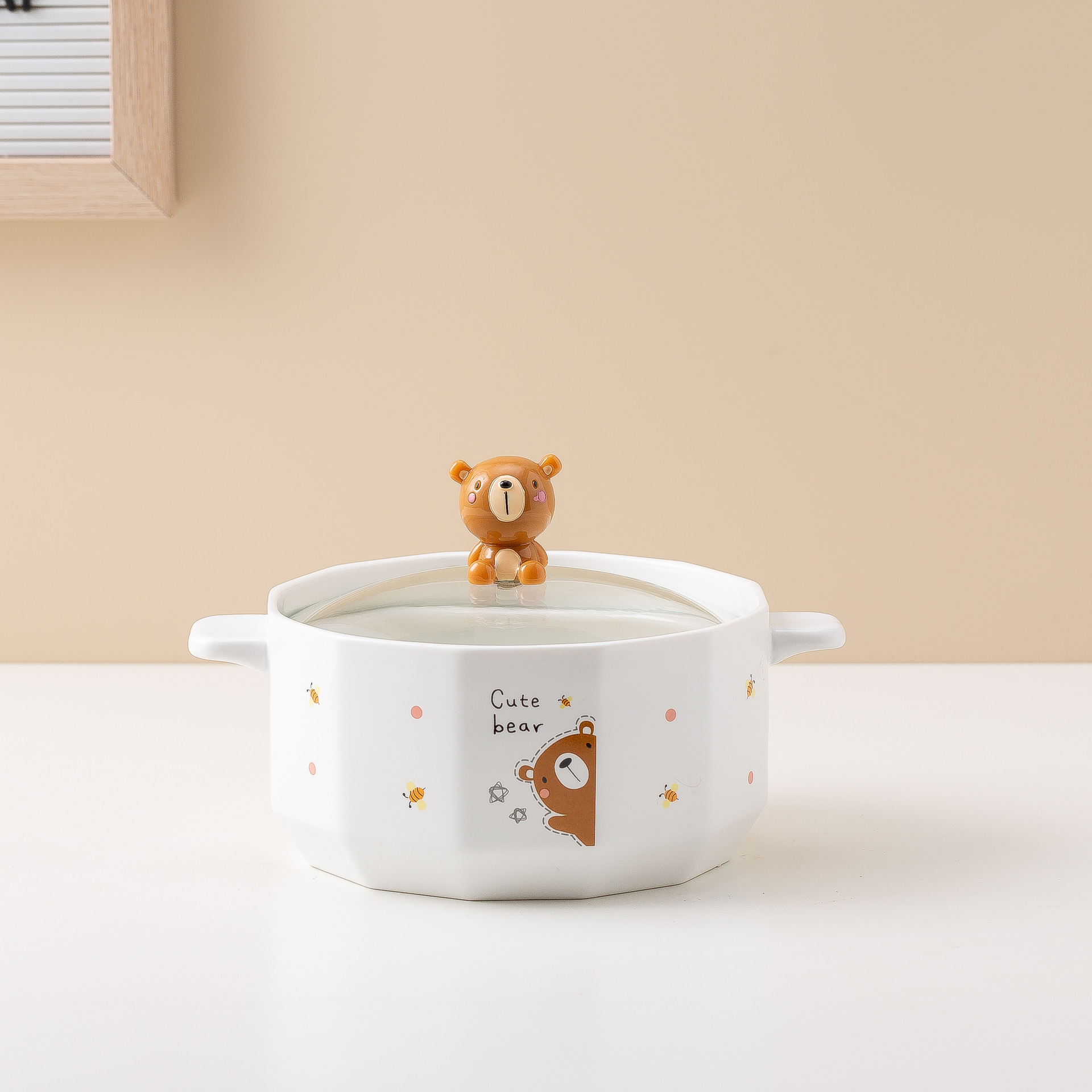 北欧创意陶瓷泡面碗带盖 家用保鲜碗 双耳汤碗可爱餐具微波炉瓷碗