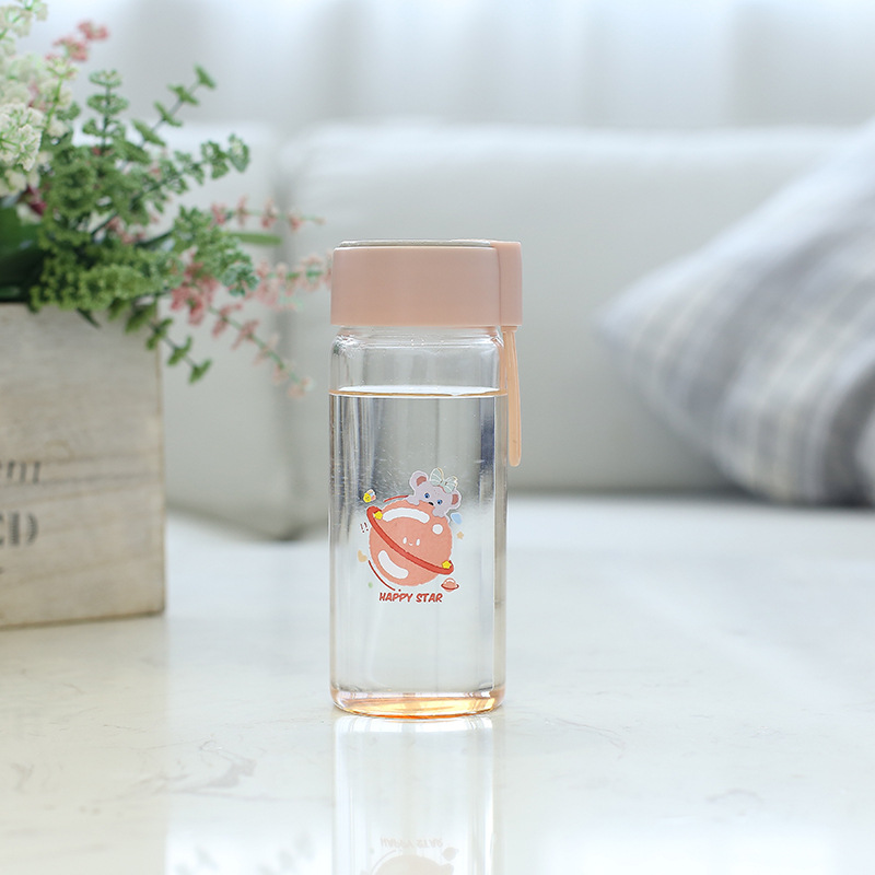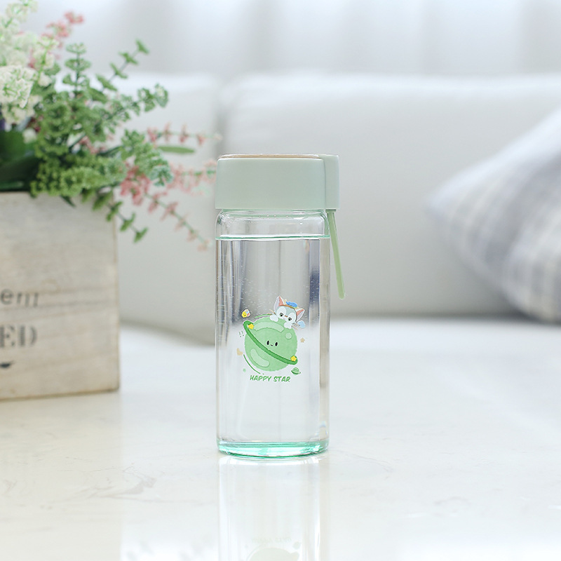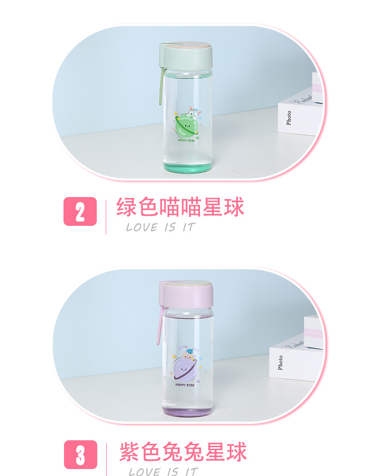 可爱迷你便携儿童玻璃吸管杯男女学生早餐牛奶茶杯大肚礼品杯印字