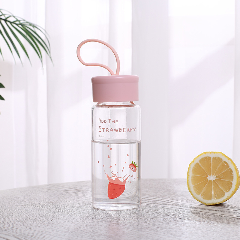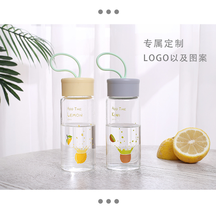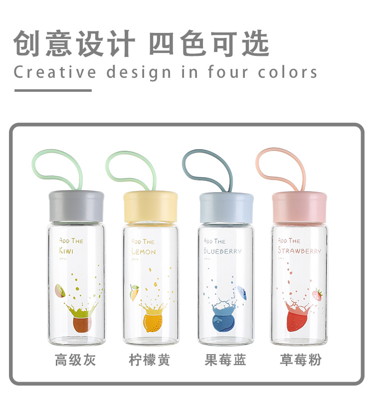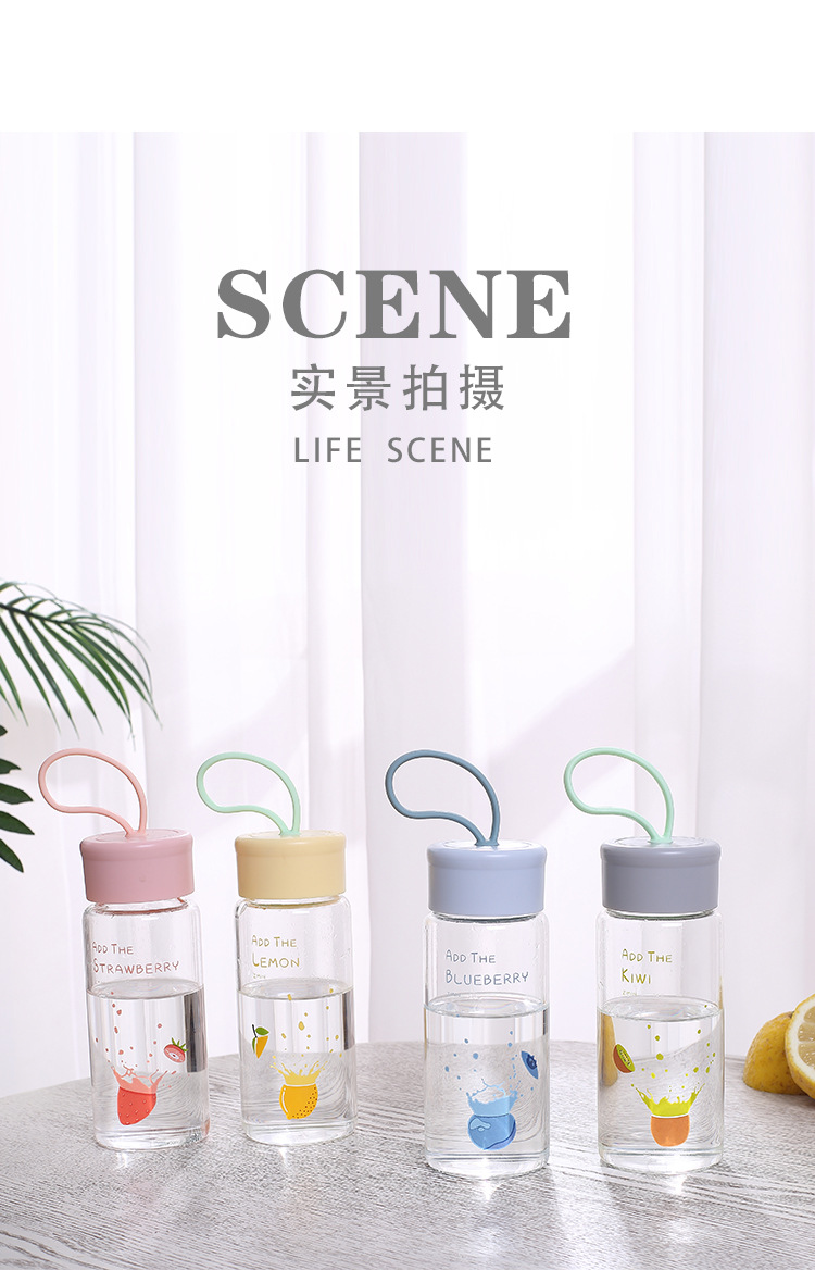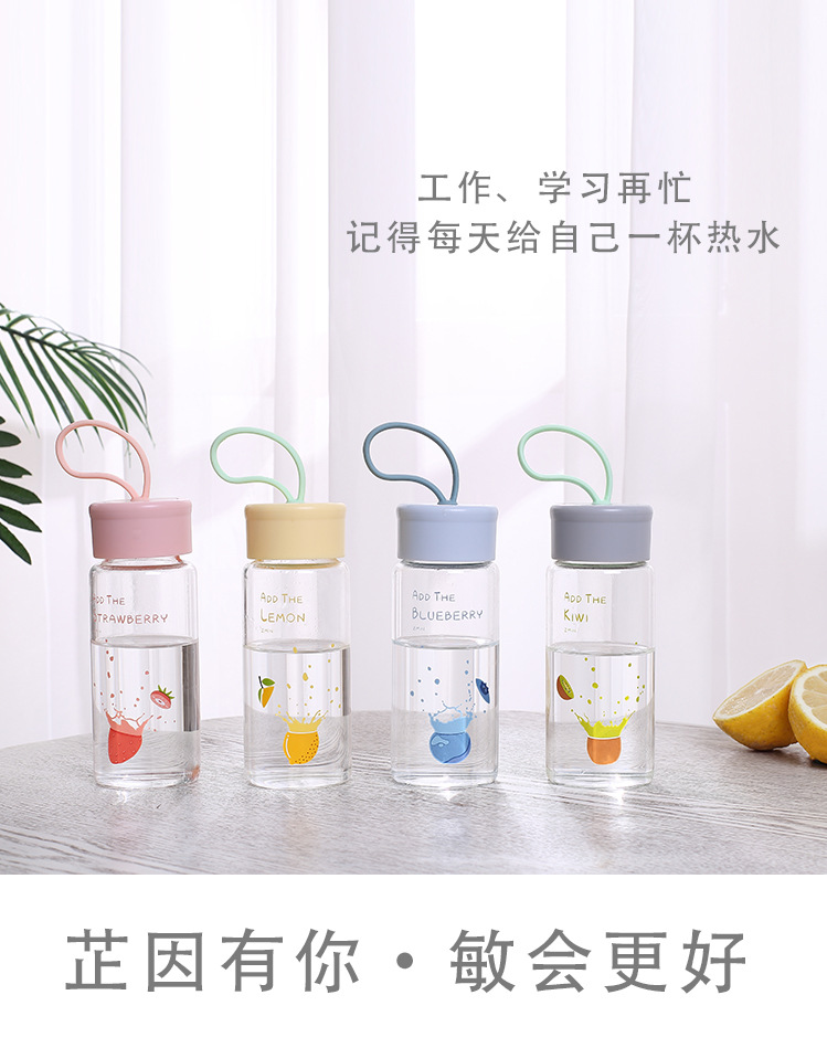 280ML欧彩水果双层玻璃杯学生韩版小清新防烫随手杯