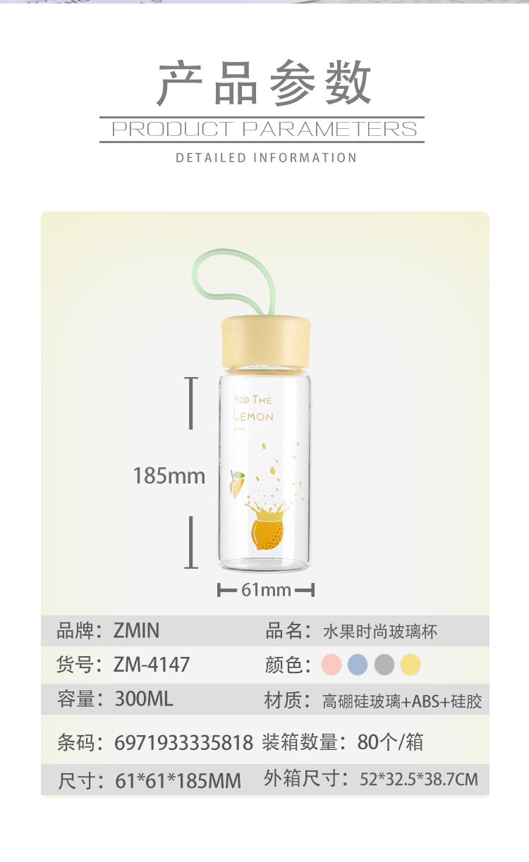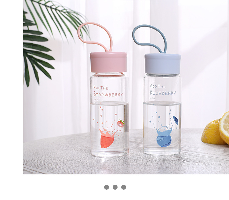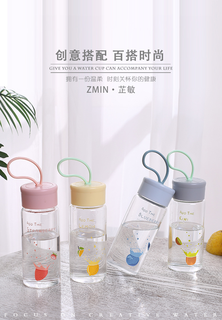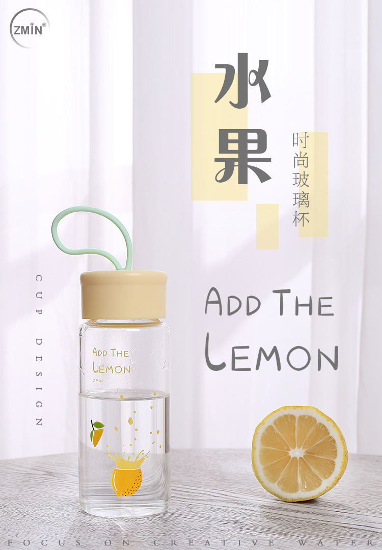 280ML欧彩水果双层玻璃杯学生韩版小清新防烫随手杯