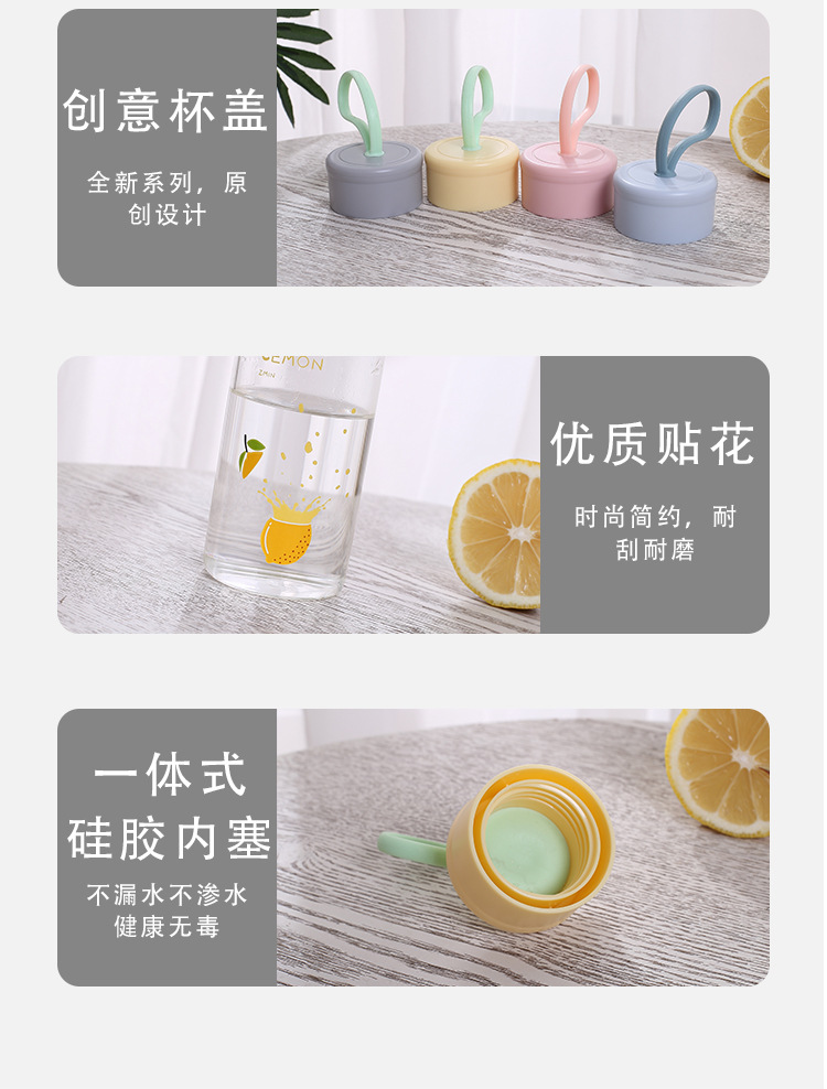 时尚创意木纹盖高硼硅玻璃杯简约男女办公室水杯户外礼品杯可批发