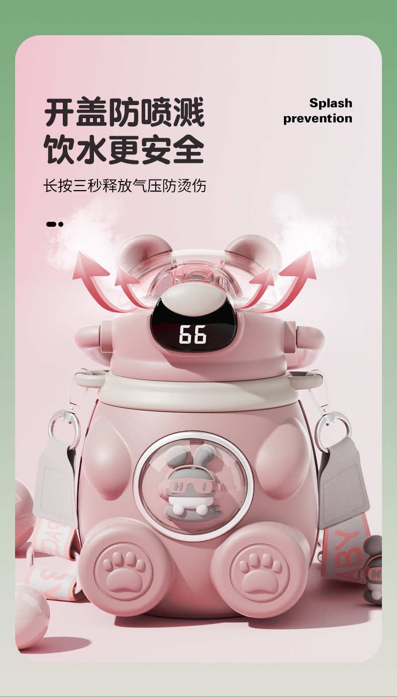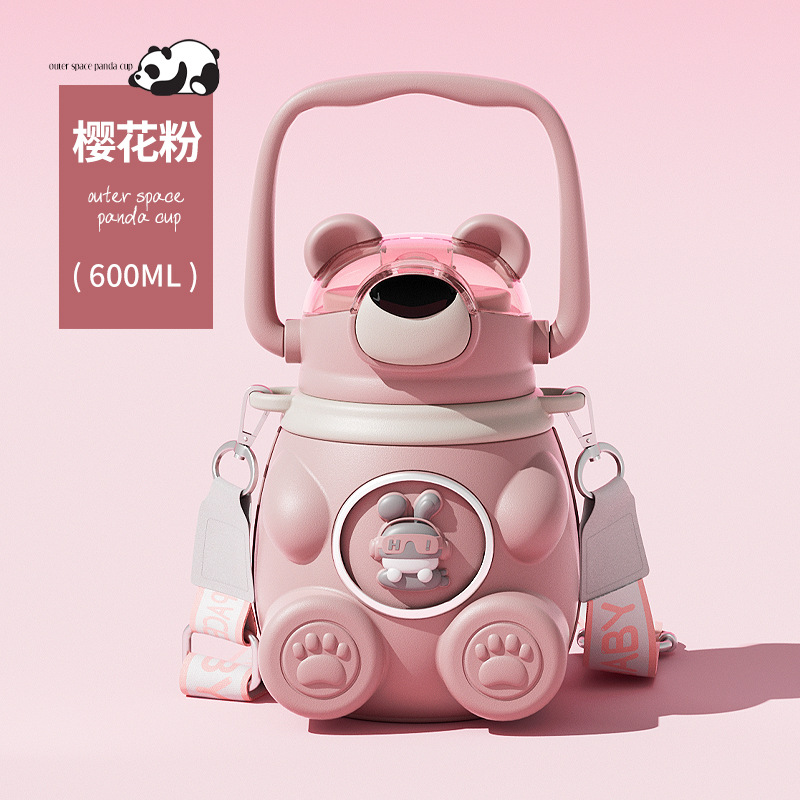 样品星兔创意卡通水杯儿童弹跳吸管杯可爱运动户外背带学生塑料杯