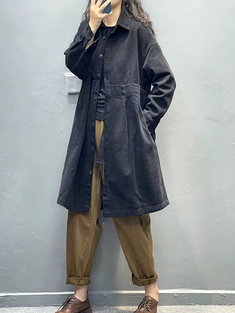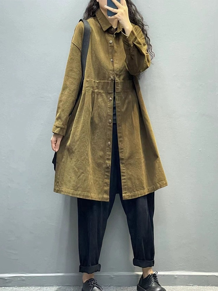 2023秋新款苎麻半身裙女文艺纯色休闲松紧腰复古宽松百搭半裙女